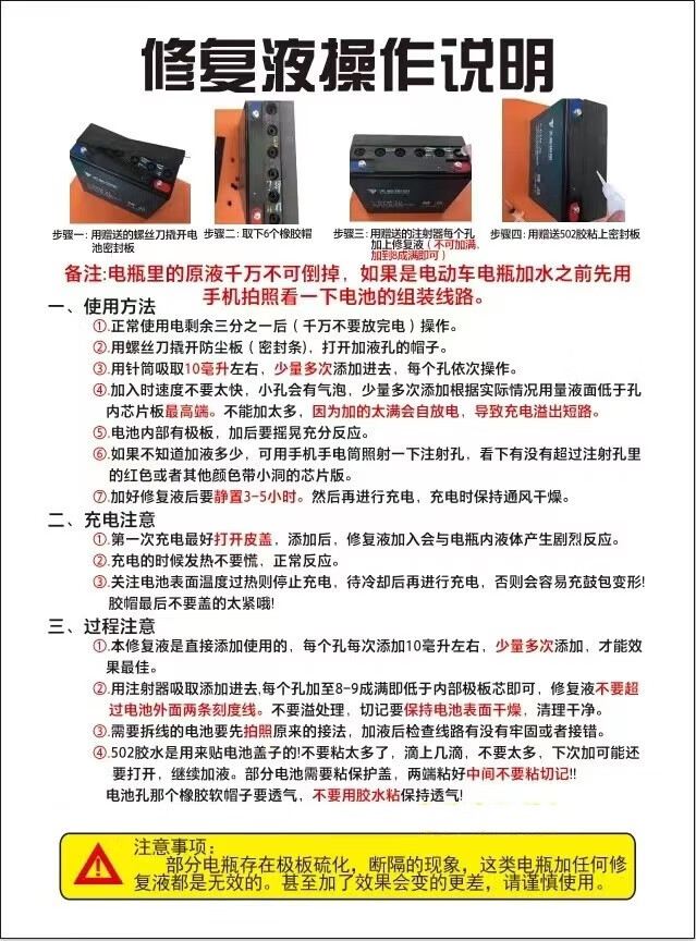 Electric vehicle battery repair solution electrolyte original replenishing solution Tianneng Chaowei universal battery concentrate Dailong 1500ml 1 pot + tools