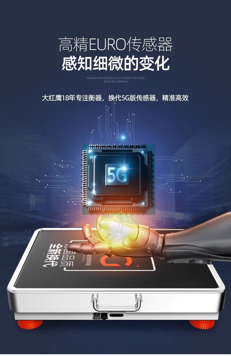 Dahongying Wireless Separate Electronic Scale Commercial 300kg 600 Large Accurate Weighing Scale Electronic Weighing Platform Scale Floor 600kg Accurate 0.01 Black Letter All Steel Extra Large Countertop