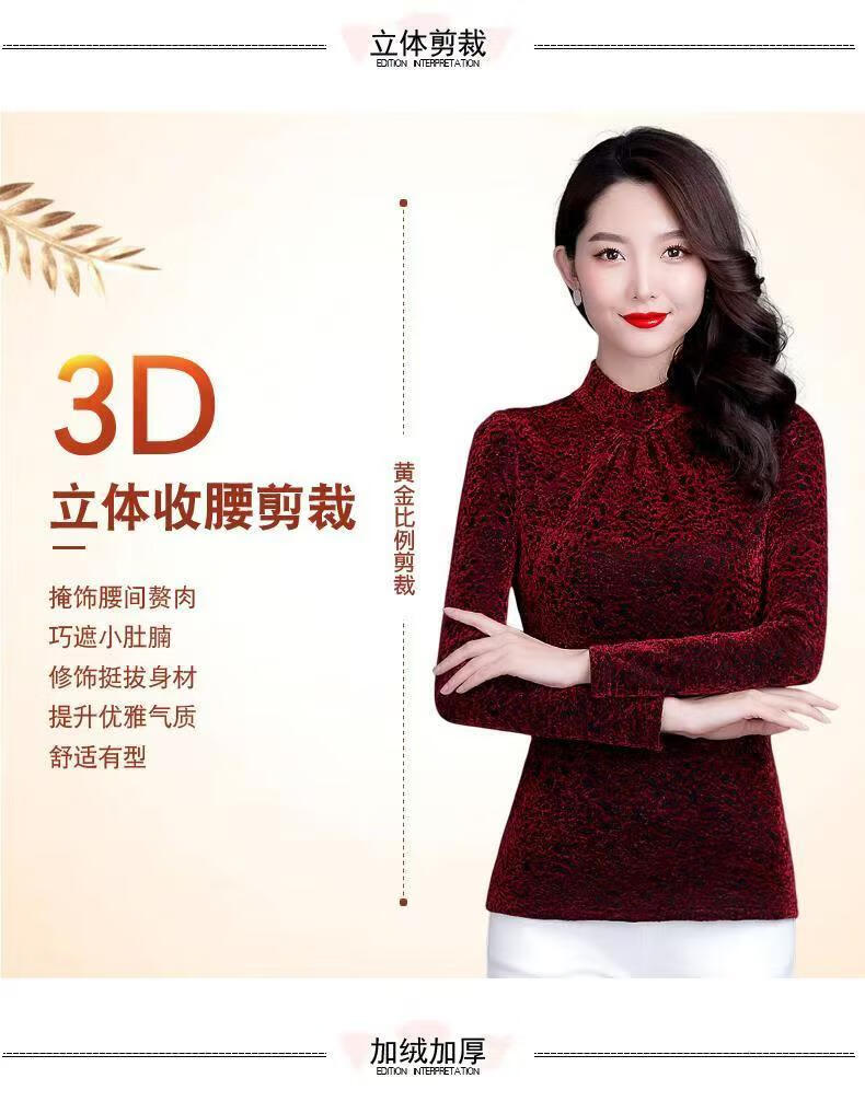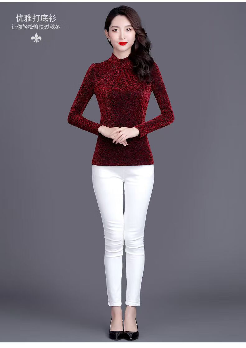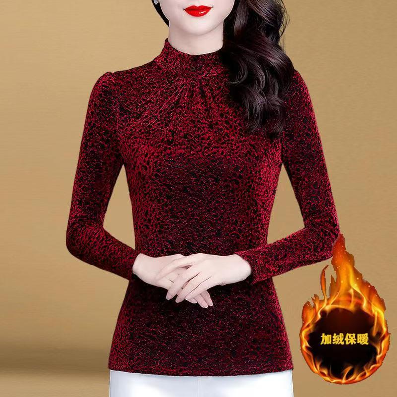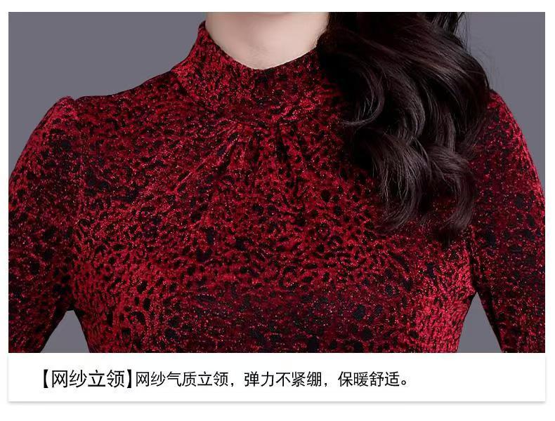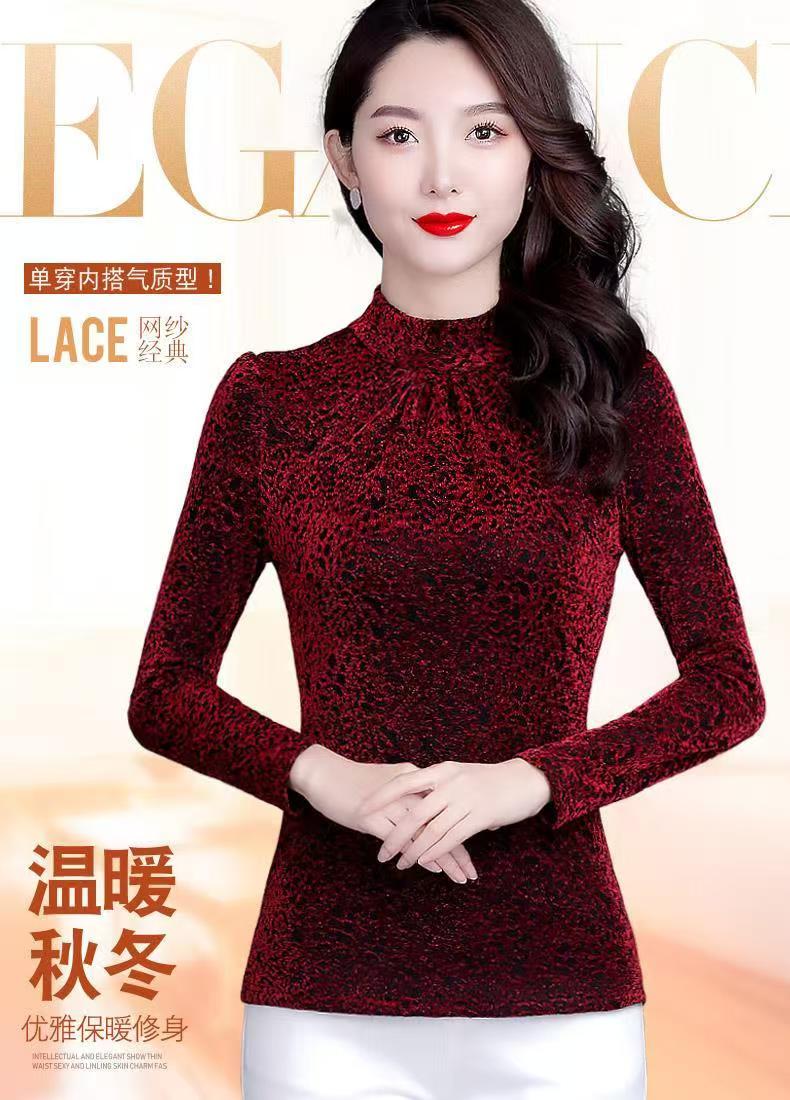 Orchid Mesh Bottoming Shirt Women's 2025 Autumn and Winter New Style Slim Fit Plus Velvet Thickened Warm Inner Top Small Shirt Red Regular XL