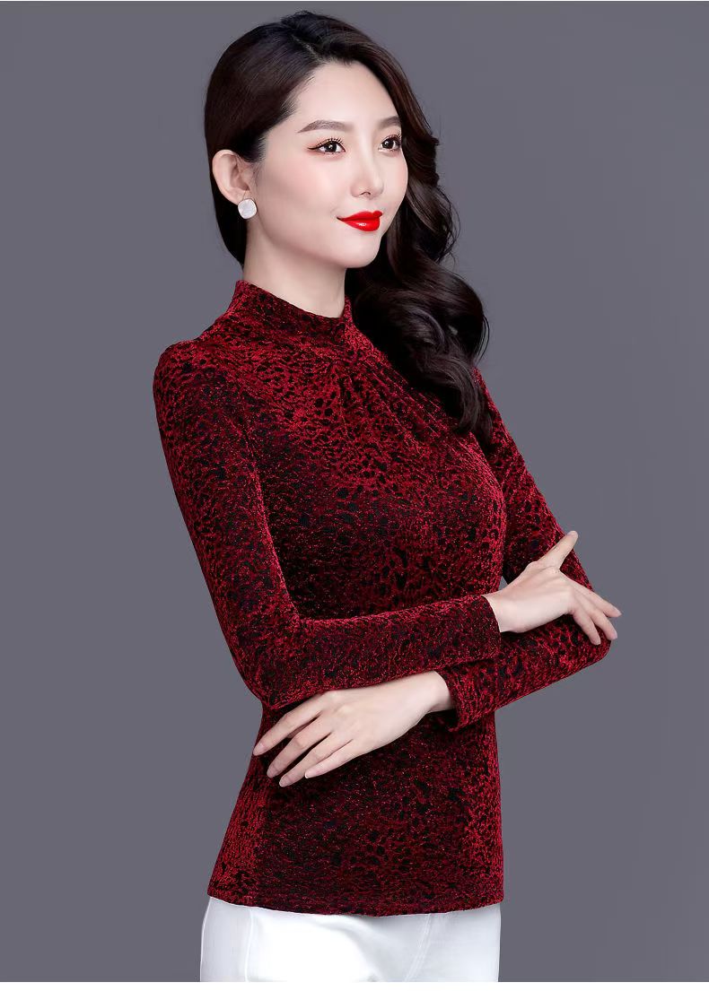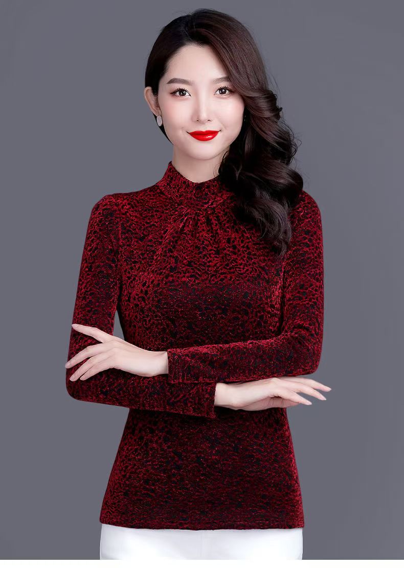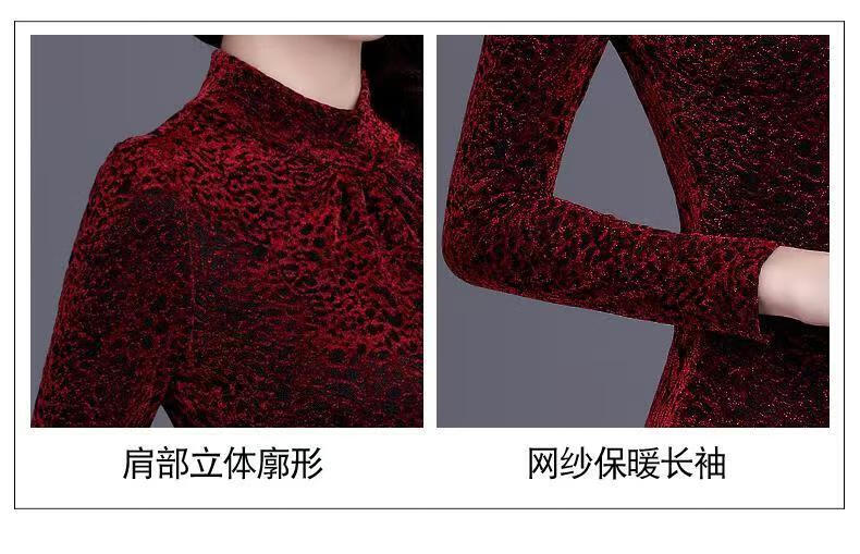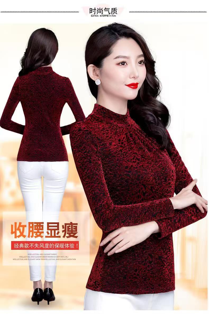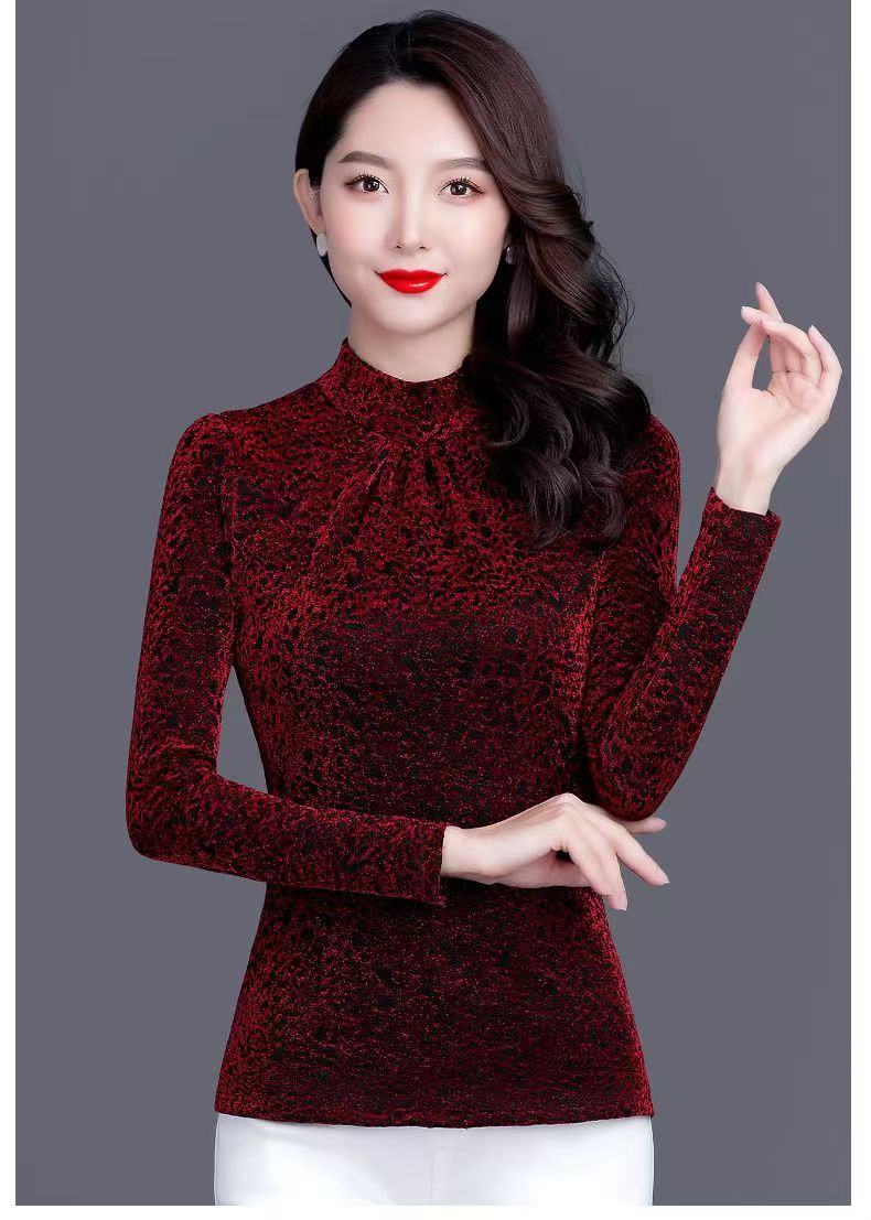 Orchid Mesh Bottoming Shirt Women's 2025 Autumn and Winter New Style Slim Fit Plus Velvet Thickened Warm Inner Top Small Shirt Red Regular XL