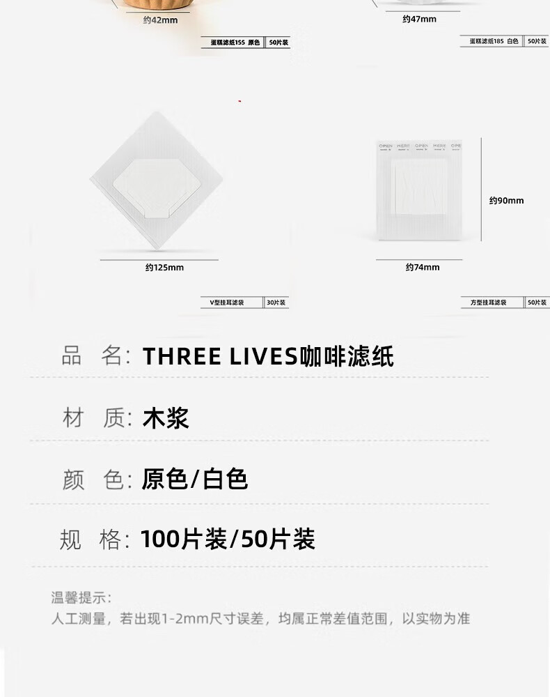 THREE LIVES Italian coffee extraction filter paper white powder bowl filter paper secondary water separation filter paper 51, 53, 58mm round 51mm white (gift box) 100 sheets