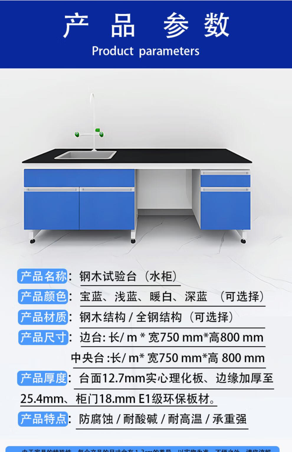 Steel and wood experimental bench, laboratory workbench, all-steel central table, chemical experiment table, laboratory operation table, test bench, 1 meter, steel and wood wall cabinet, in stock