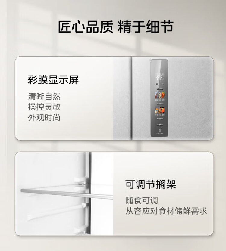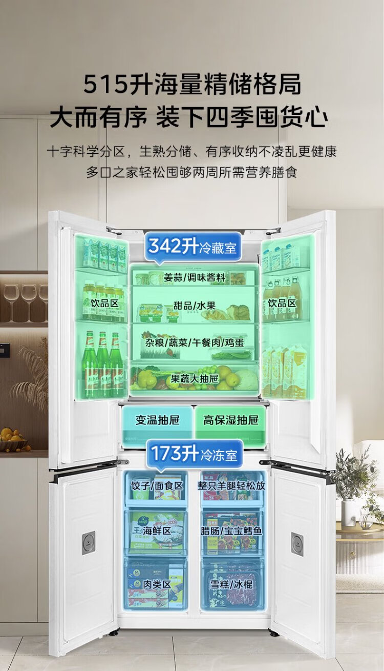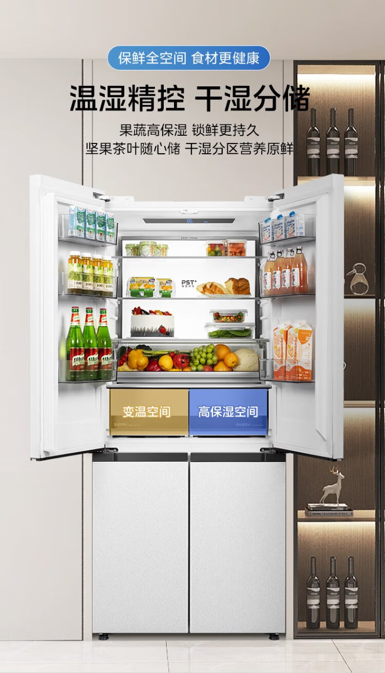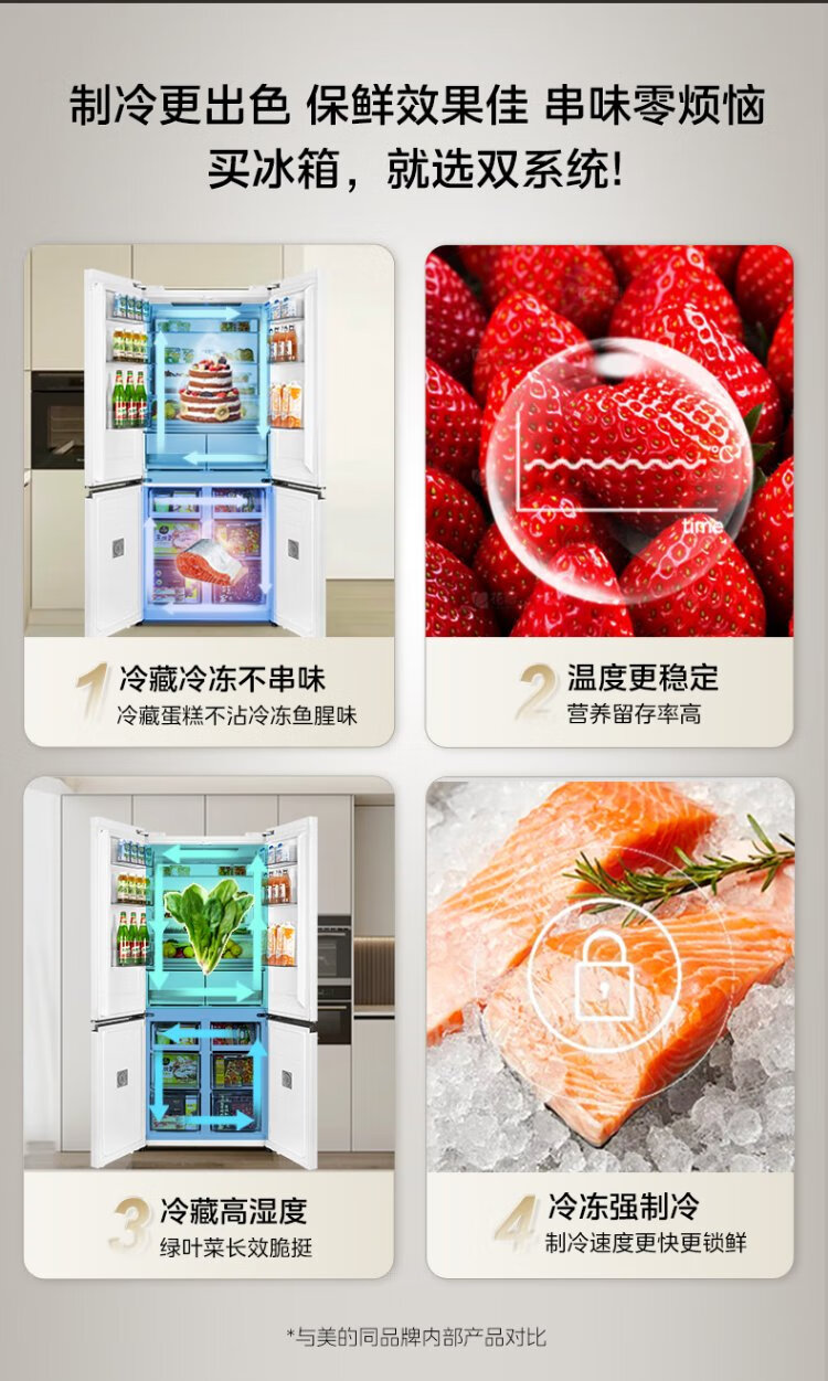 Midea M60 series 541 zero-embedded cross-door refrigerator dual-system dual-cycle bottom cooling, deodorizing, sterilizing, air-cooled, frost-free household refrigerator, national subsidy 15% MR-541WUSPZE Yunduo White