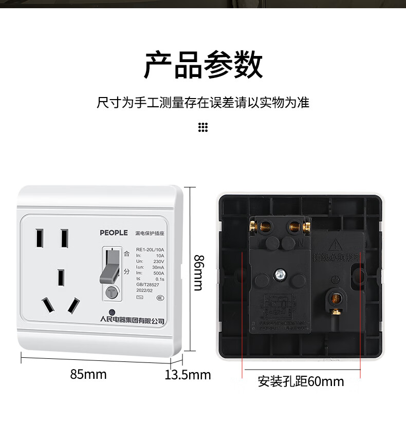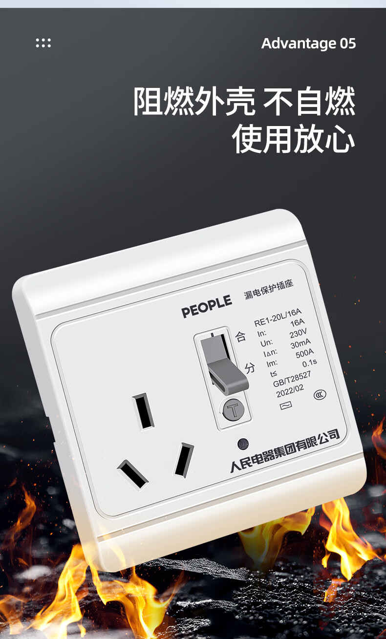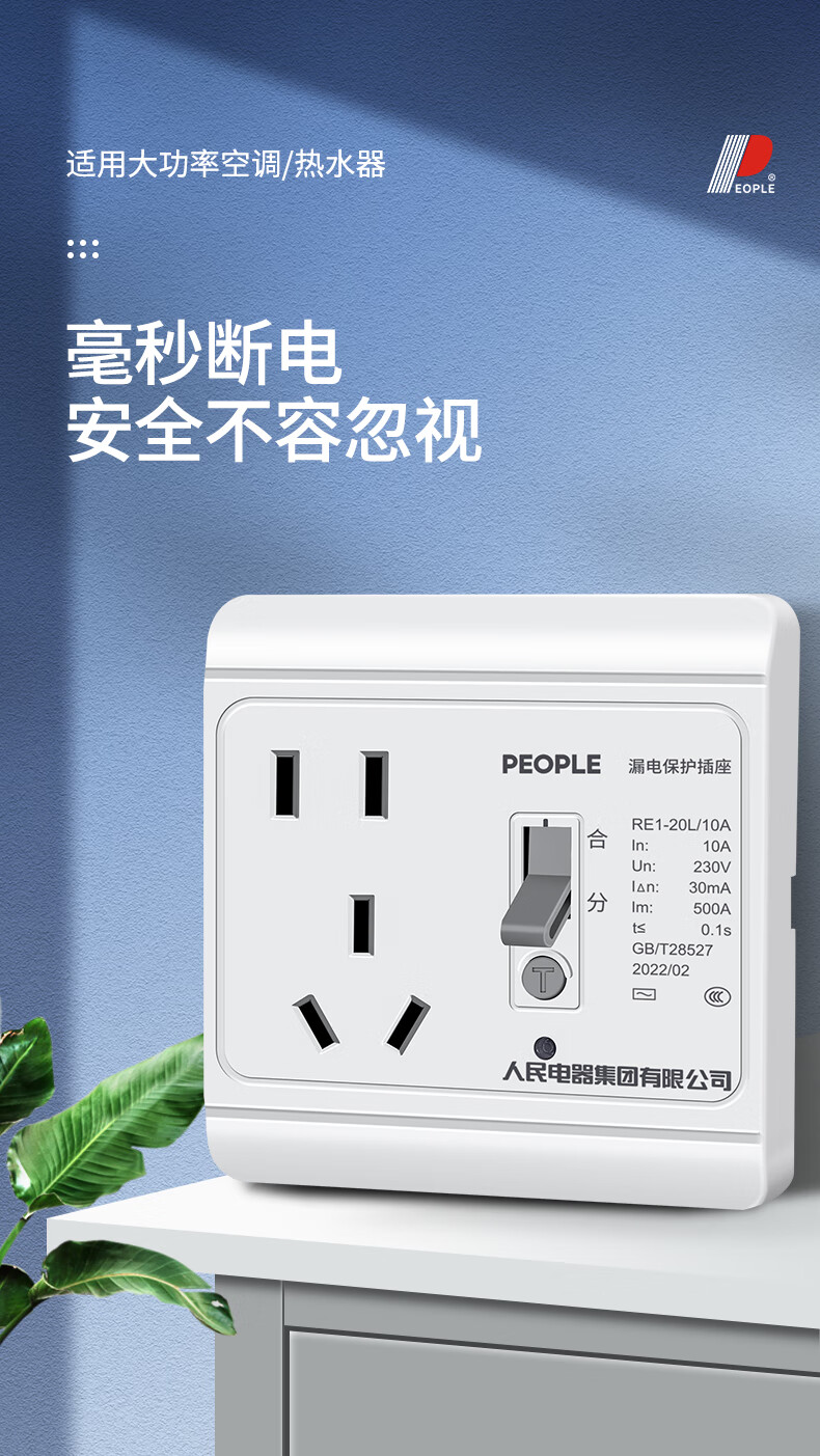 People's Electric Water Heater Socket Air Conditioner with Leakage Protector Type 86 10a16a Leakage Protection Switch 10A Five-hole White