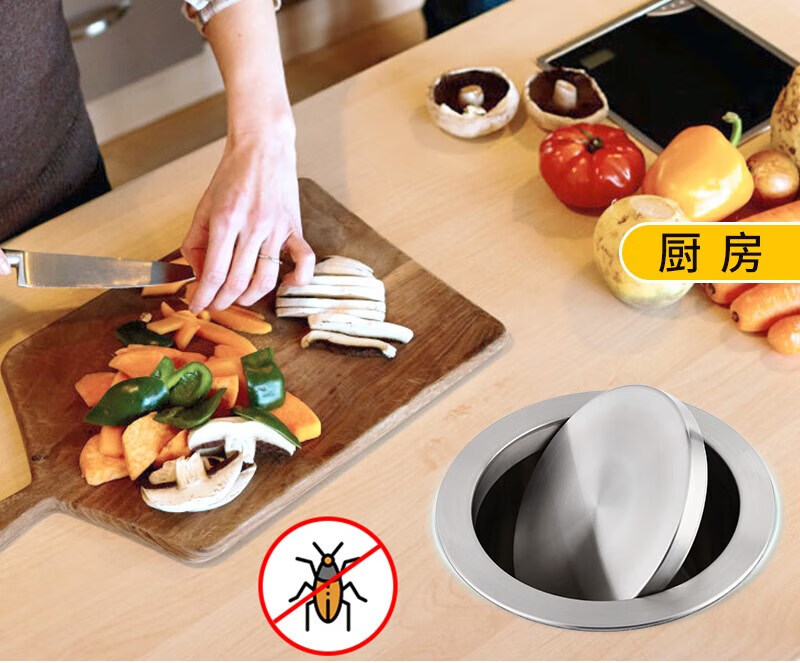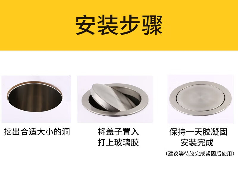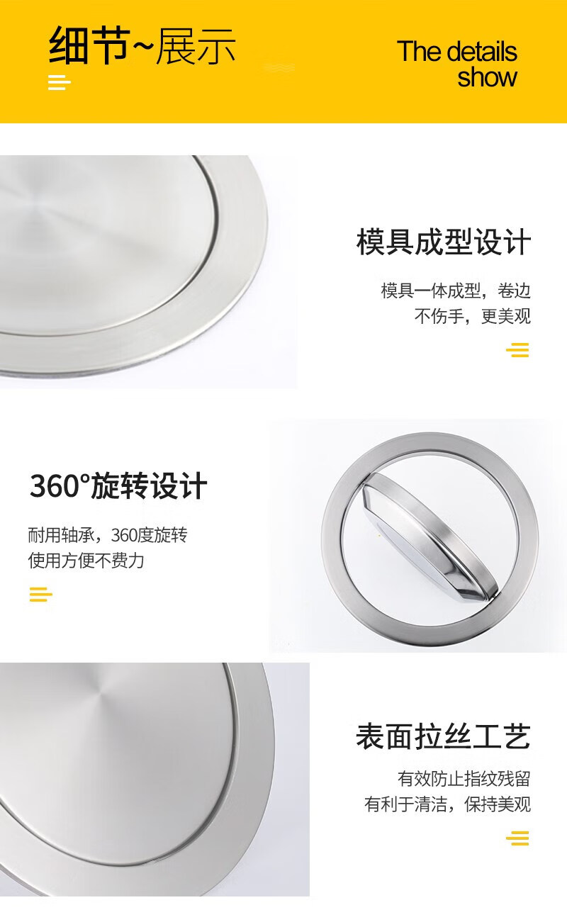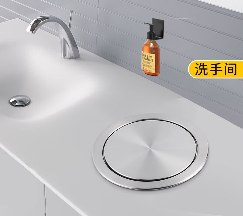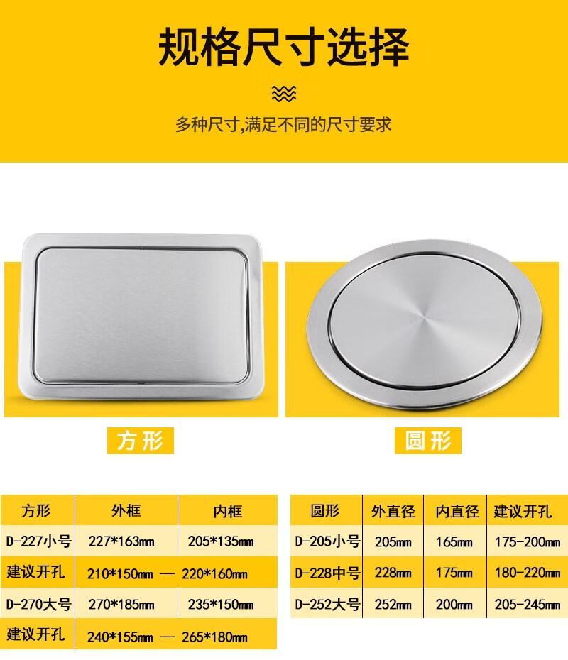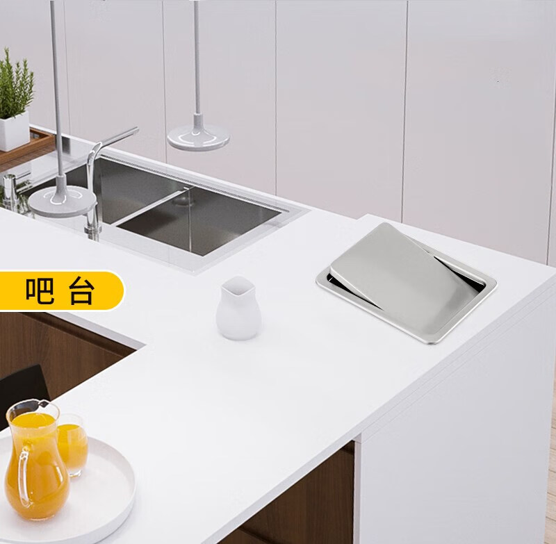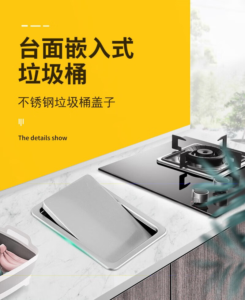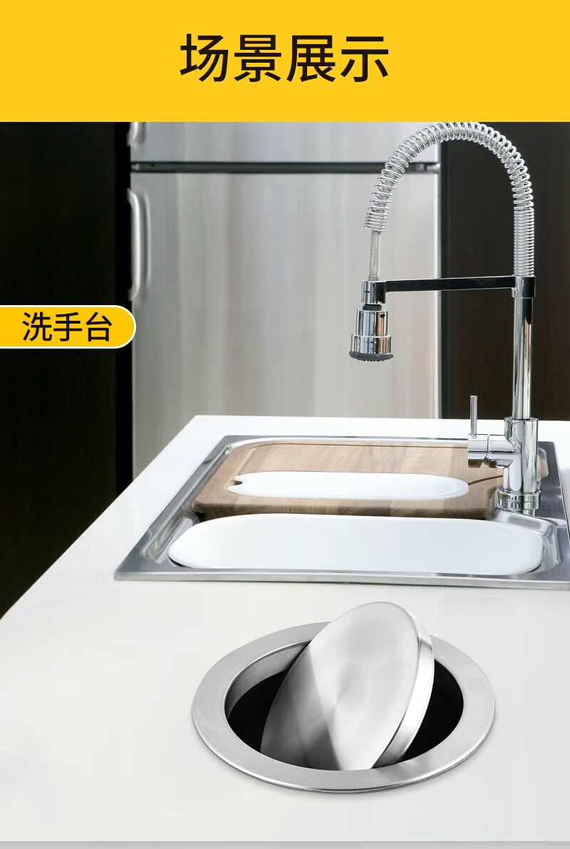Stainless steel embedded countertop cover, square black swing cover, hidden trash can decorative cover under the sink, round part customized D270G430 two-piece set