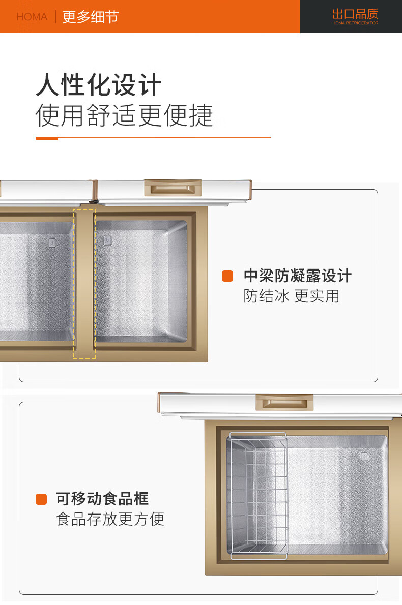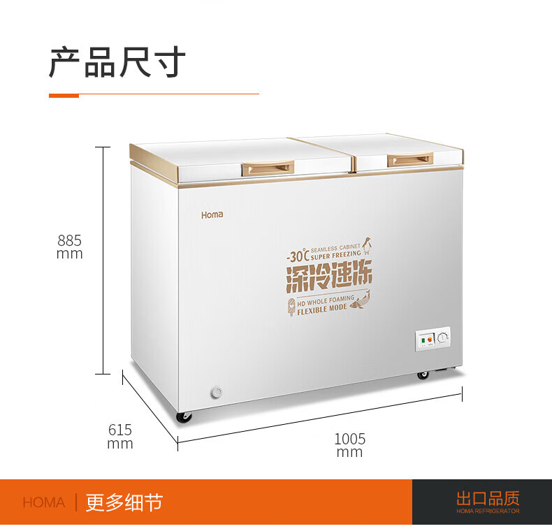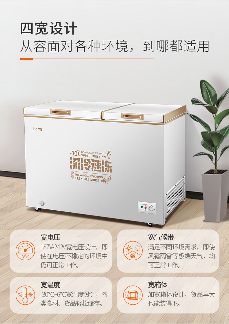 Homa Commercial Refrigerator Household Freezer First-Class Energy Efficiency Refrigerated Freezer Dual Temperature Horizontal Freezer BCD-218MF Deep Cold Brown Standard 218L BCD-218MF Deep Cold Brown