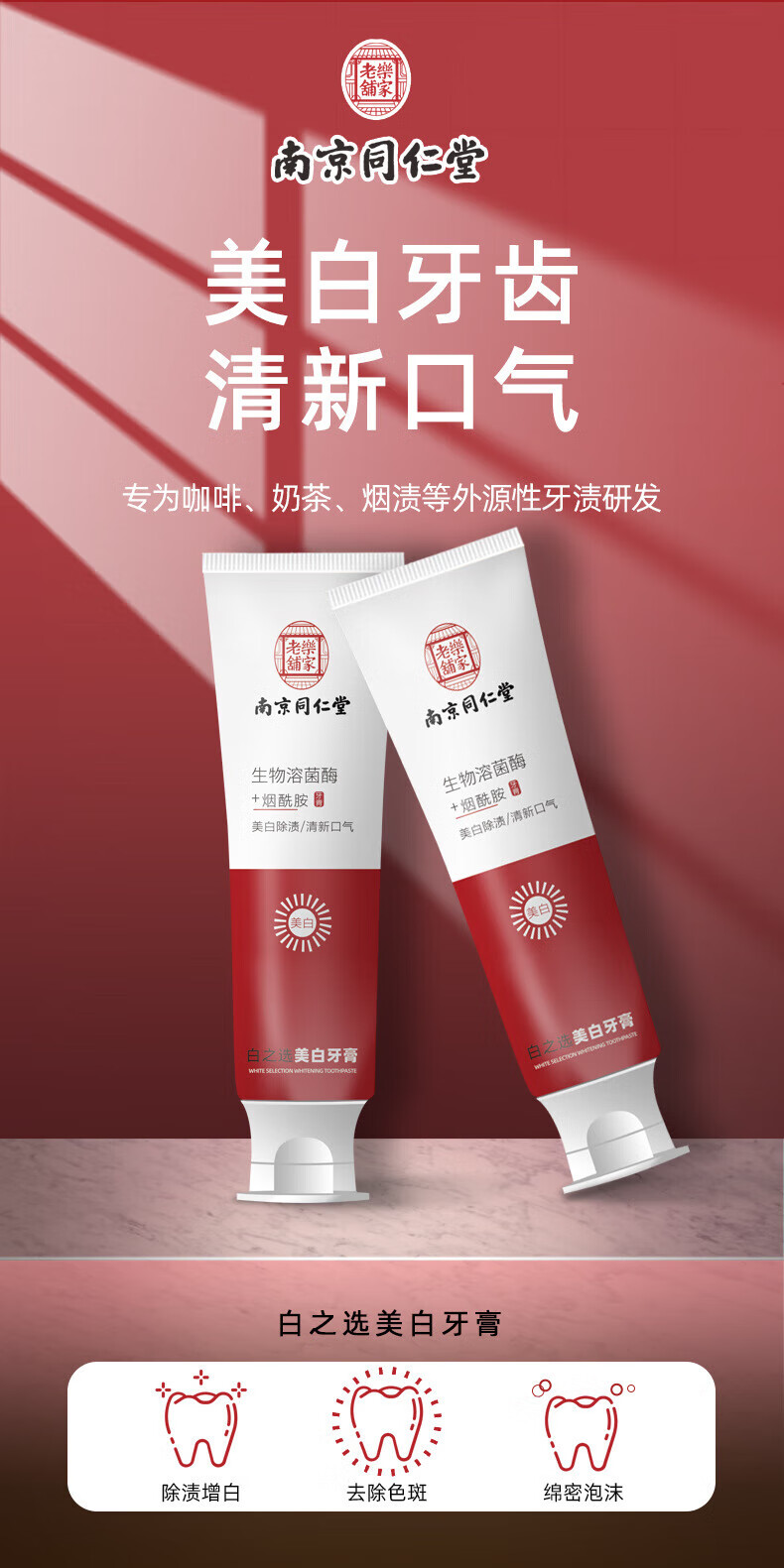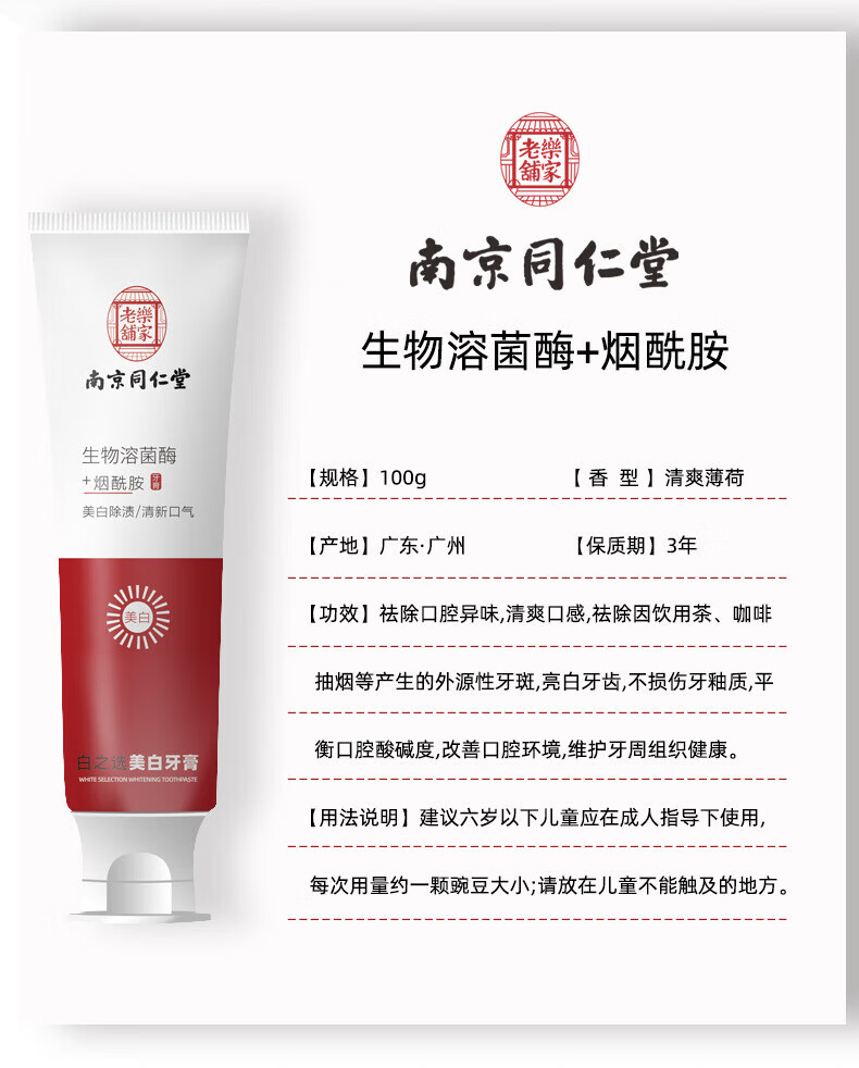 Nanjing Tongrentang Niacinamide Whitening Toothpaste Removes Bad Breath, Removes Yellow Tooth Stains, Removes Smoke Stains, Tartar and Tartar, Whitens and Removes Stains, Freshens Breath. 1 Niacinamide Whitening Toothpaste. Buy more, get more