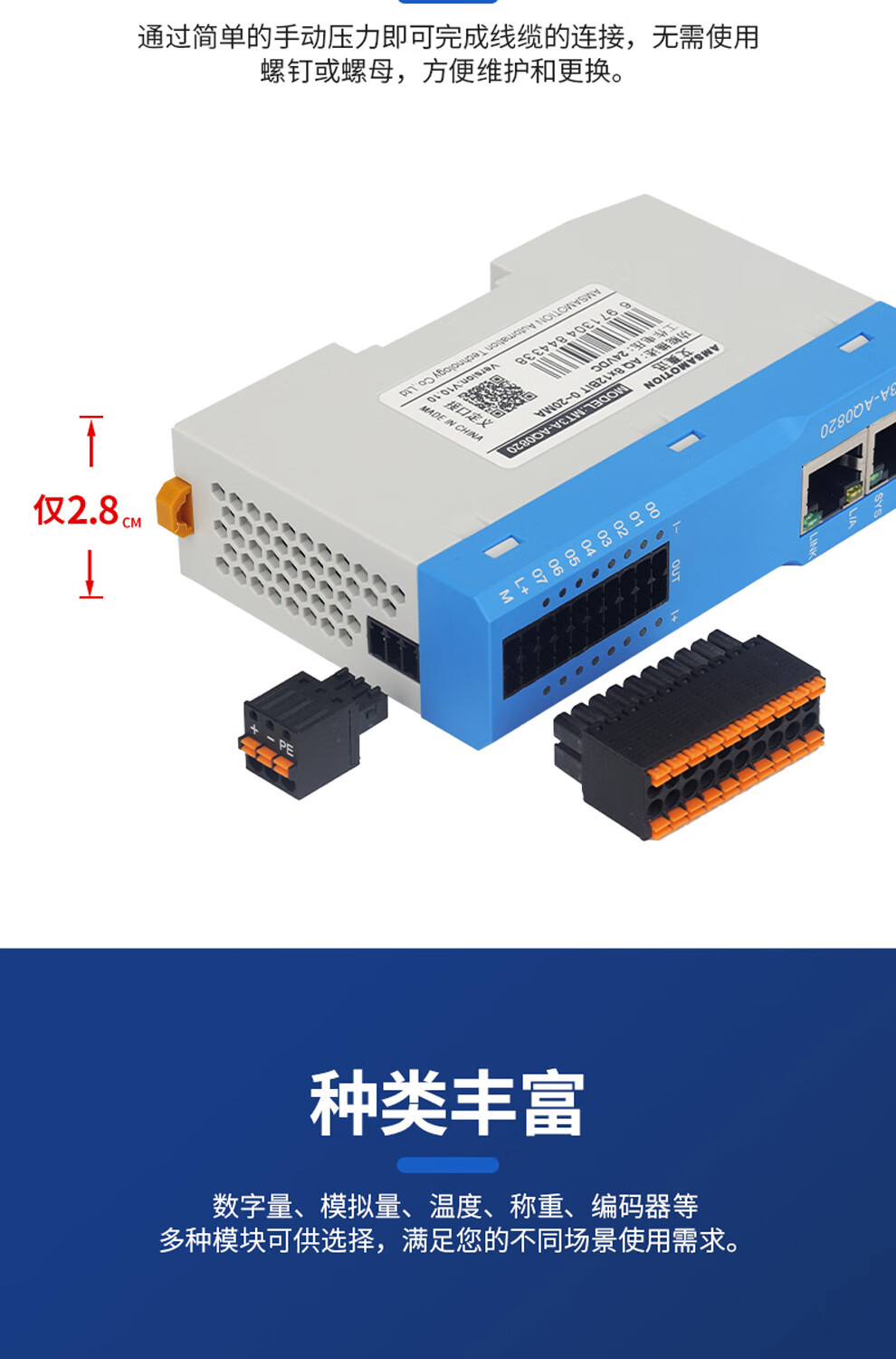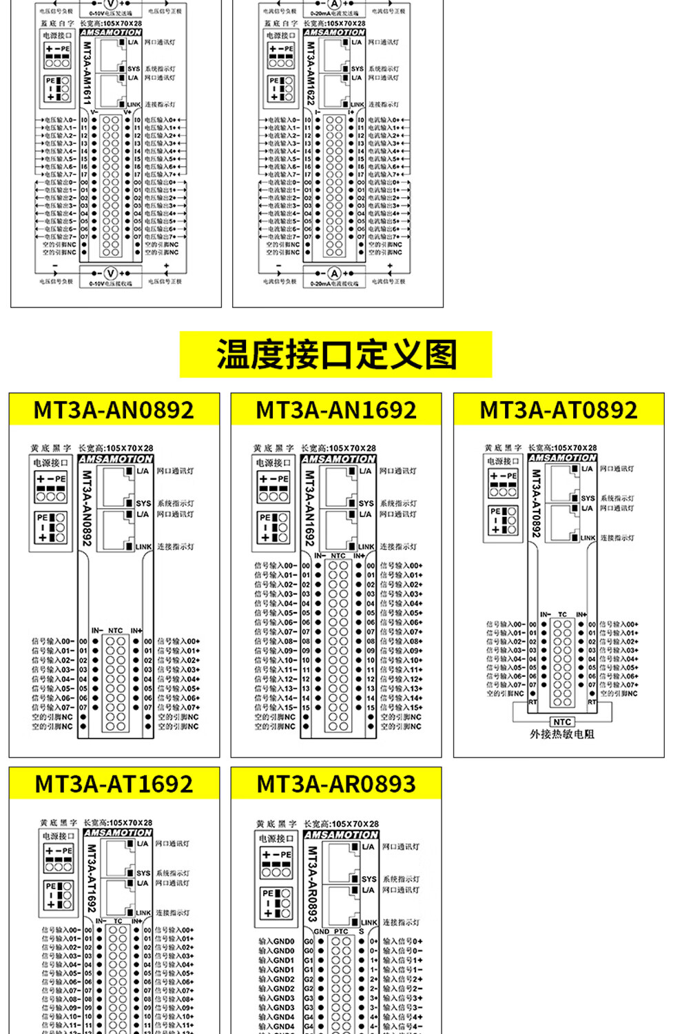 Aimoxun Modbus tcp distributed remote io analog switch 485 Ethernet temperature thermal resistance book-type acquisition module dual network port switch function expansion MT3A MT3A-AE0830 analog 8-input compatible voltage/current