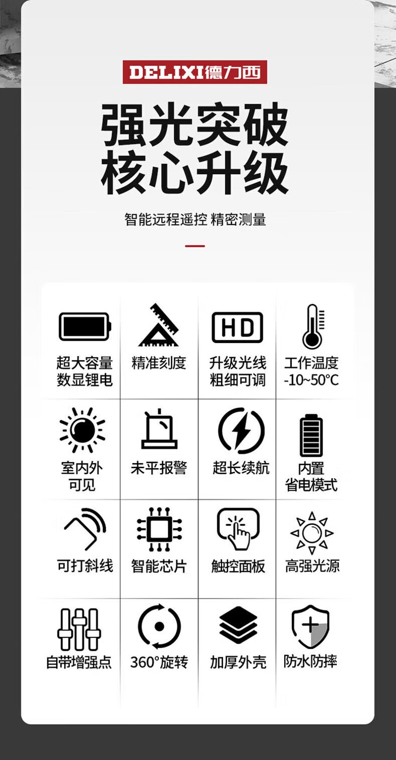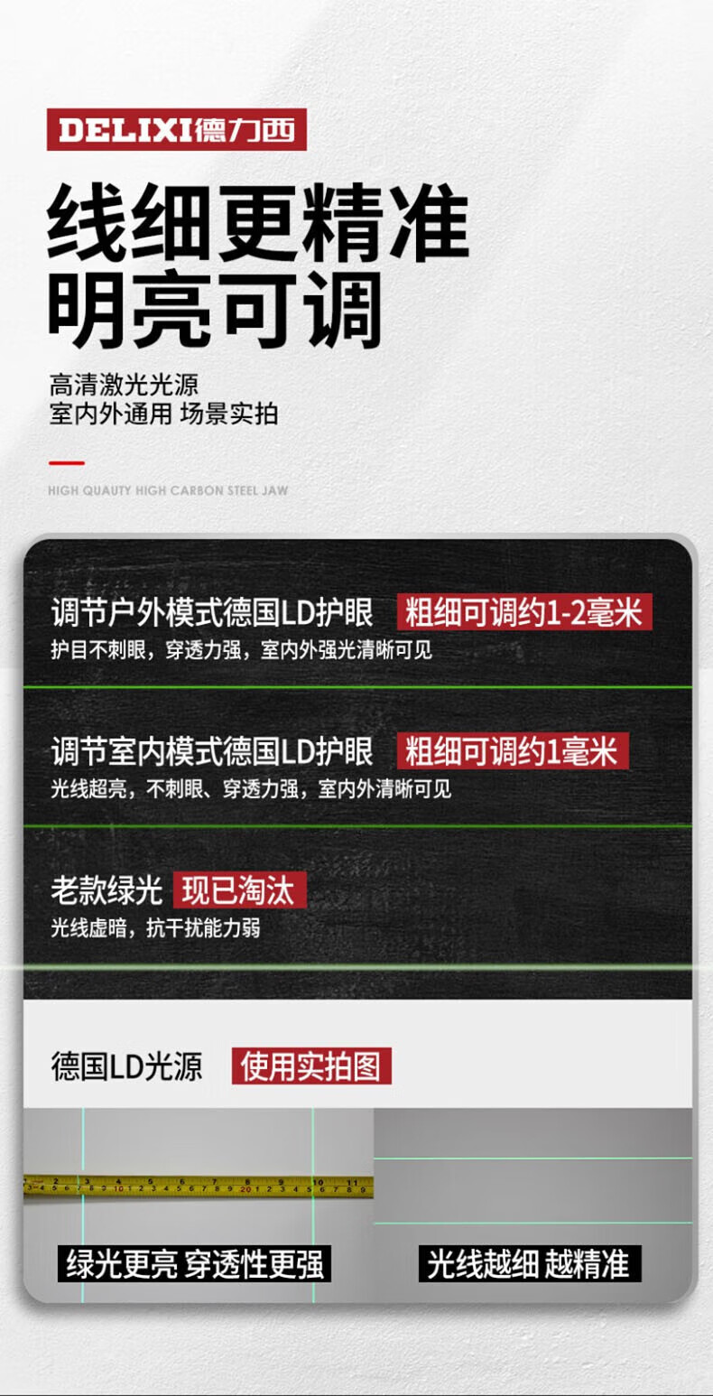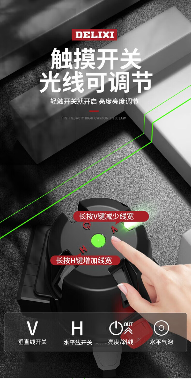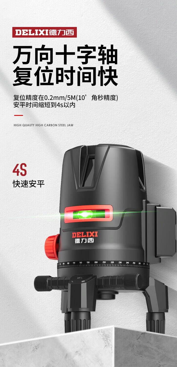 Delixi Delixi DELIXI level green light 2-line LD high-precision strong light thin line outdoor visible horizontal ruler line wall-mounted level universal battery *1