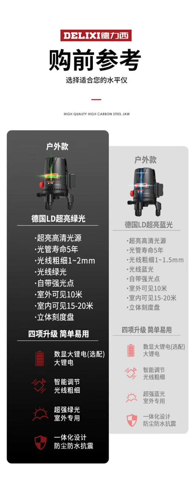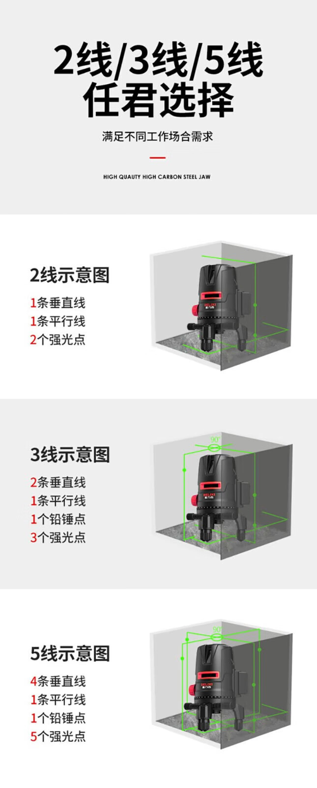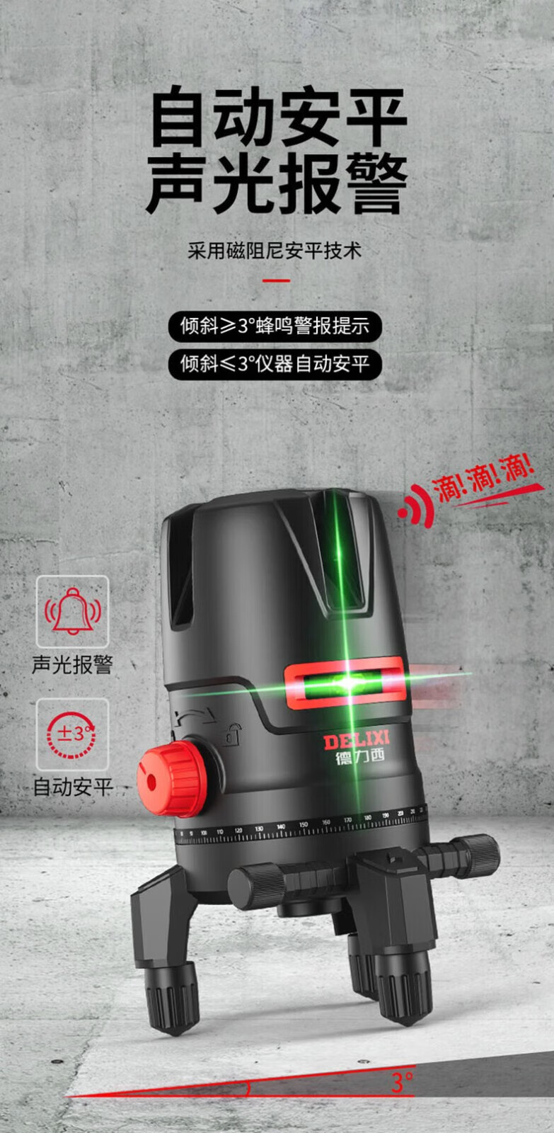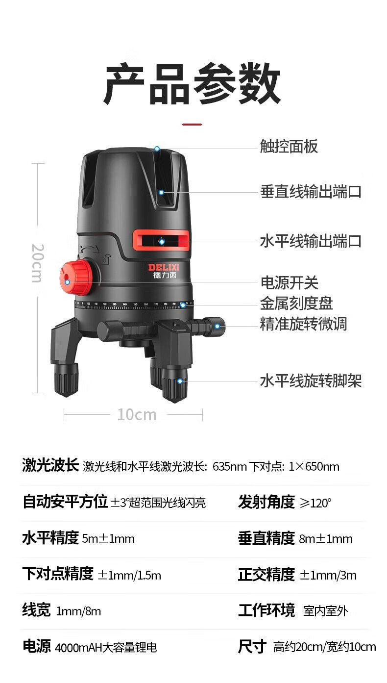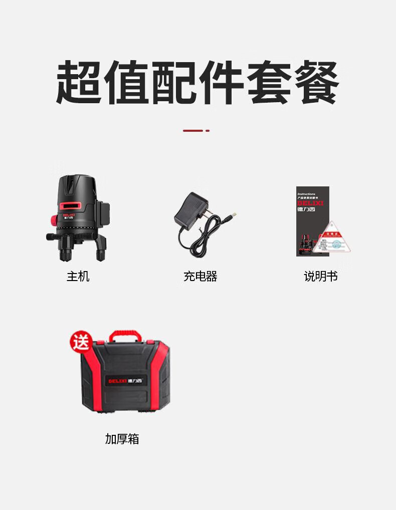 Delixi Delixi DELIXI level green light 2-line LD high-precision strong light thin line outdoor visible horizontal ruler line wall-mounted level universal battery *1