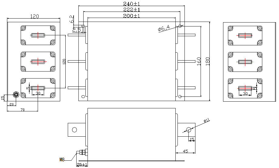 KEILS power filter three-phase 380V anti-interference 60A150A120A100A terminal block 200A high current CW7N-50A-R (three-phase three-wire) input type