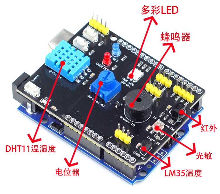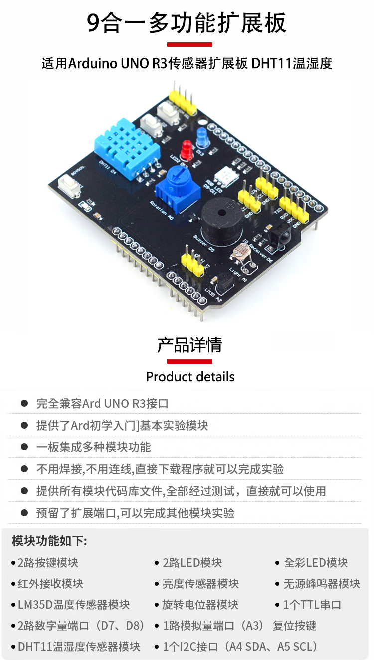 Suitable for Arduino UNO R3 microcontroller development board nine-in-one expansion board programming learning motherboard