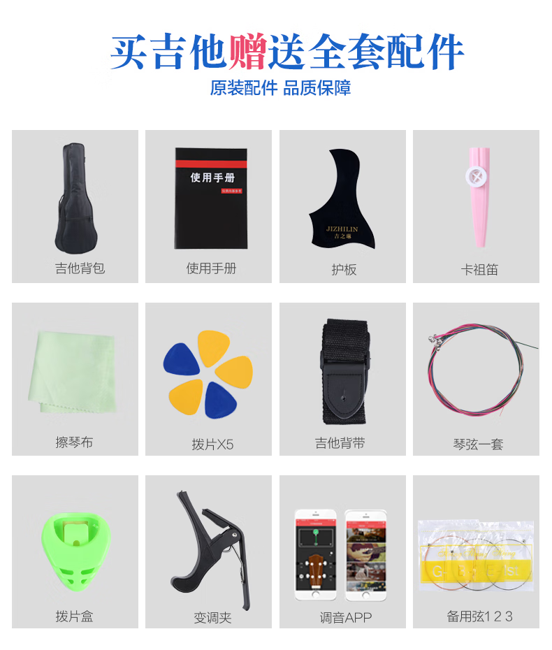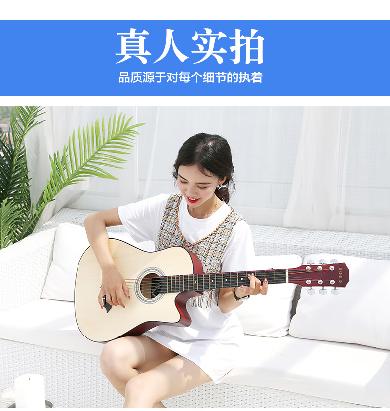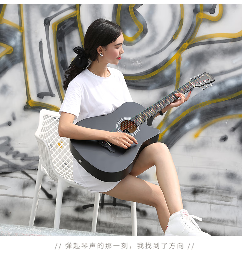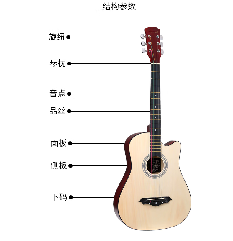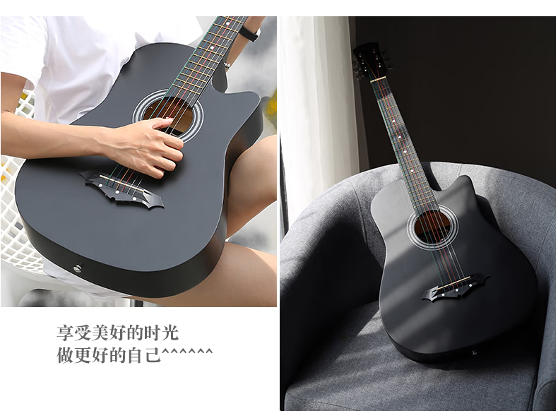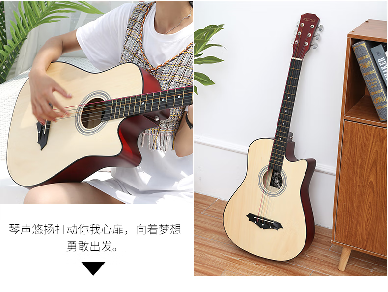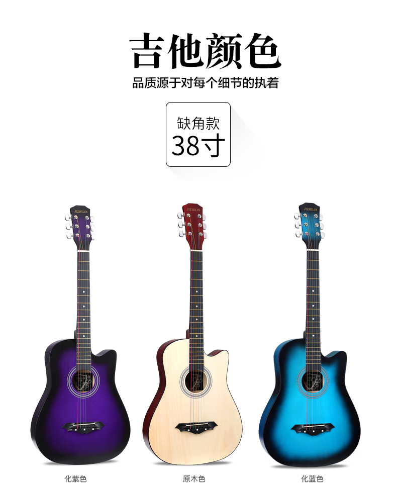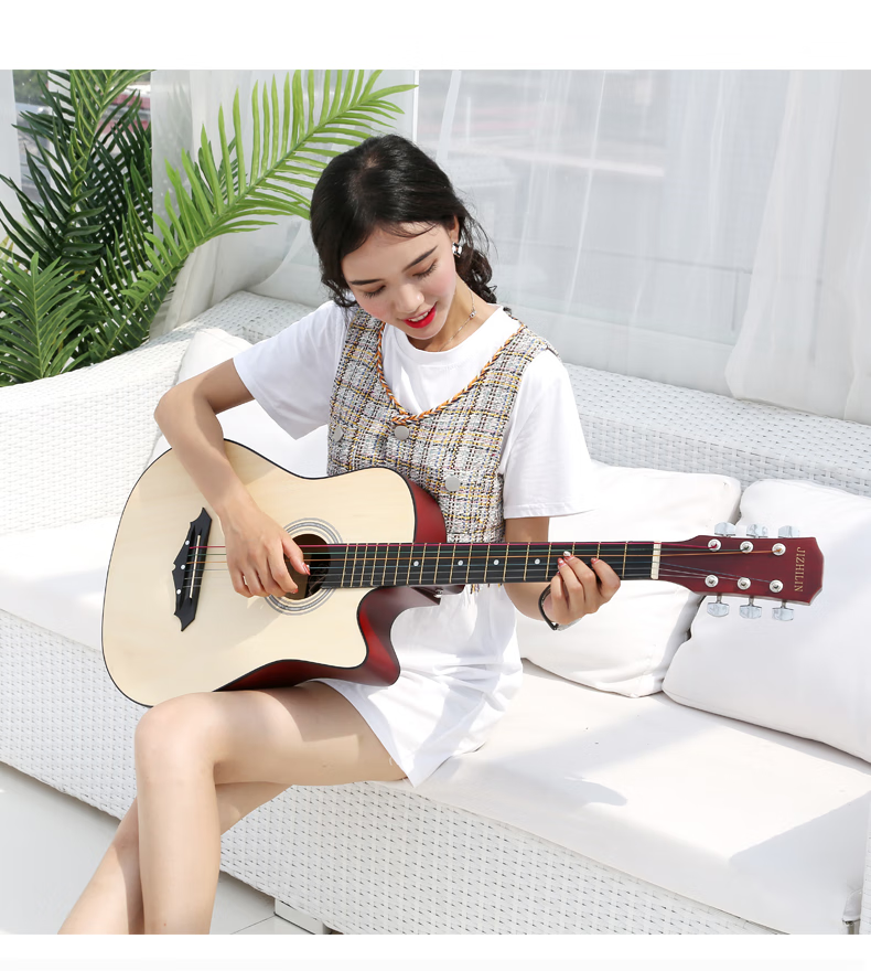 Ji Zhilin single board 41-inch beginner guitar student 38-inch novice practice boys and girls entry-level piano folk acoustic guitar instrument 38-inch carbon peach wood color includes church + get a full set of accessories when you buy it