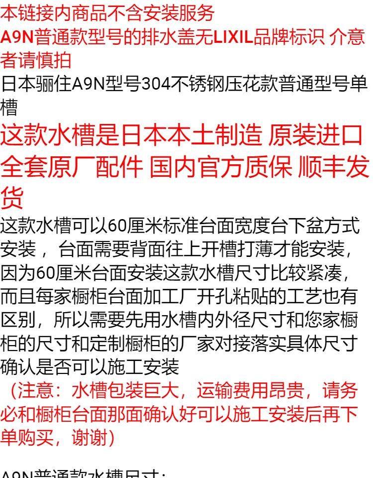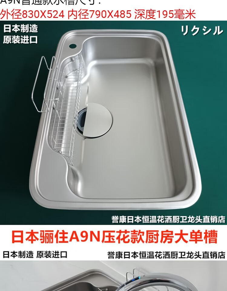 Lixil spot Japanese Lixil A9N stainless steel embossed kitchen sink original imported kitchen basin Lixil A9N sink + KVK5021 faucet combination