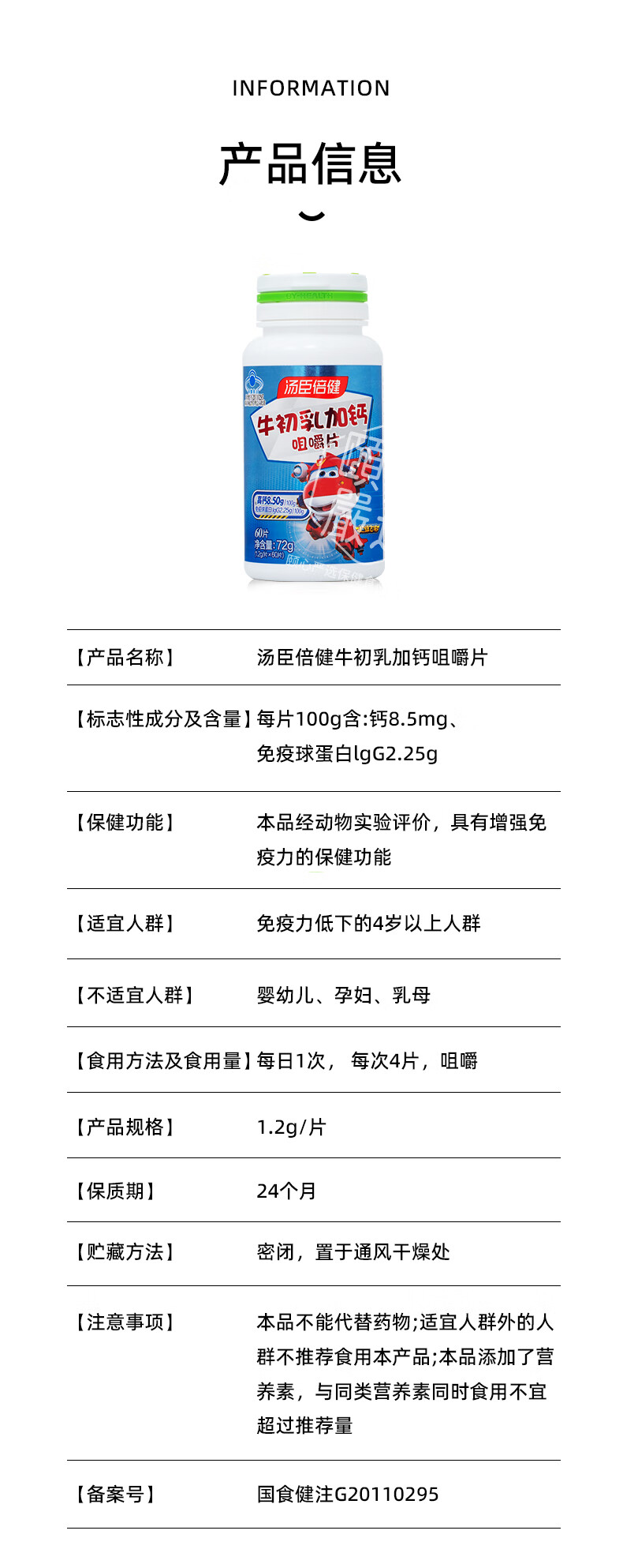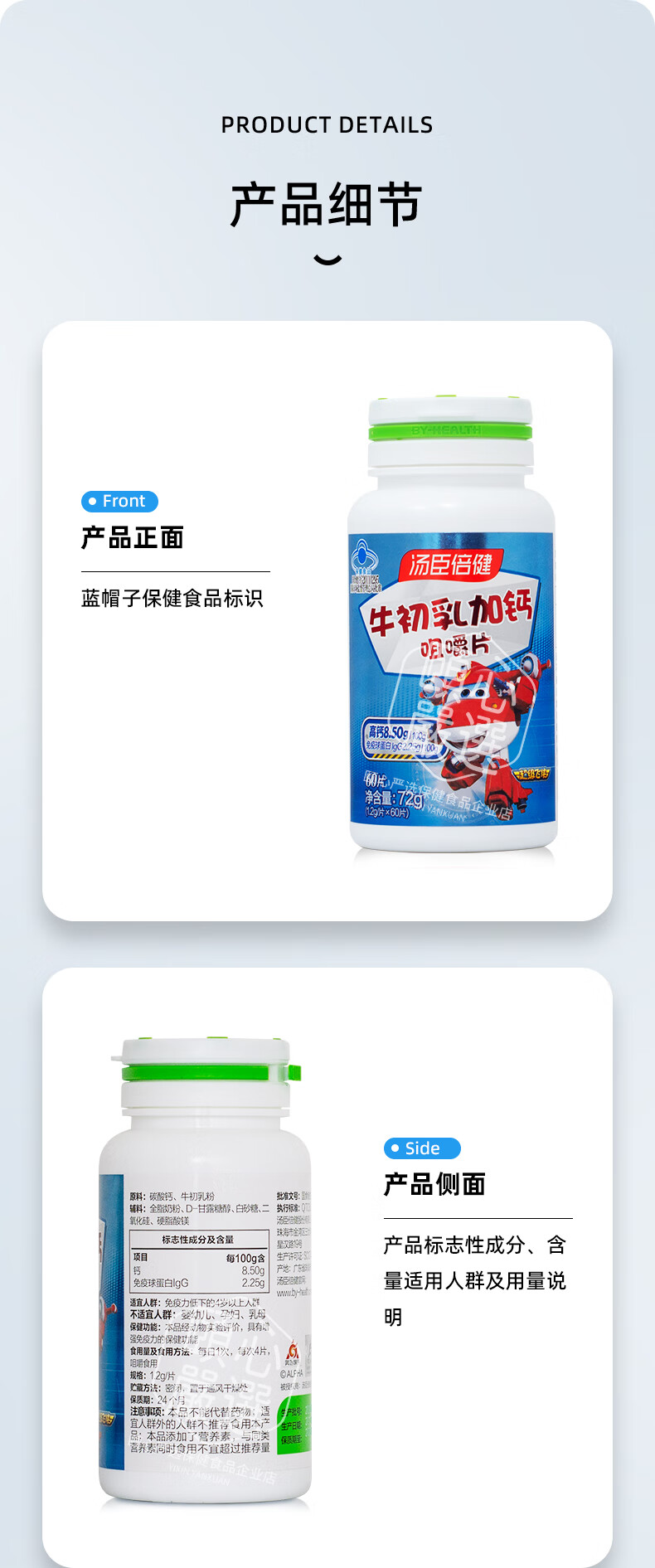 Tomson By-Health Colostrum Plus Calcium Chewable Tablets Children and Teenagers Calcium Supplement Tablets to Enhance Immunity 60 Tablets*1 Bottle (Expires in November 26) Promotional Pack