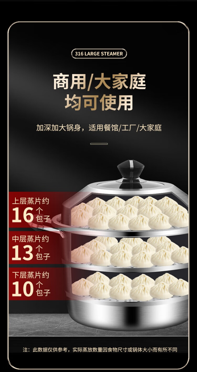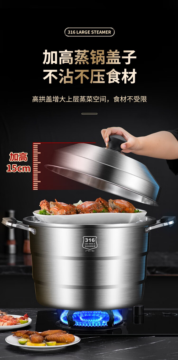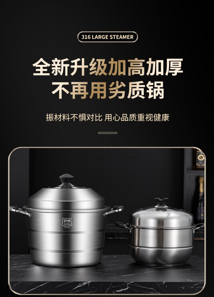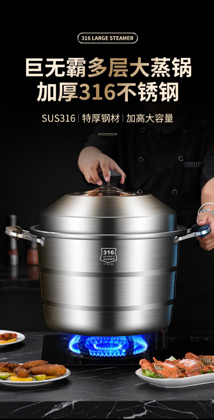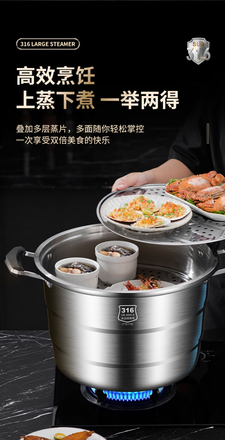 WCZ German 316 stainless steel large steamer food grade thickened steamer large capacity steaming stew pot double three-layer home 316 level 35 cm anti-scalding 35cm