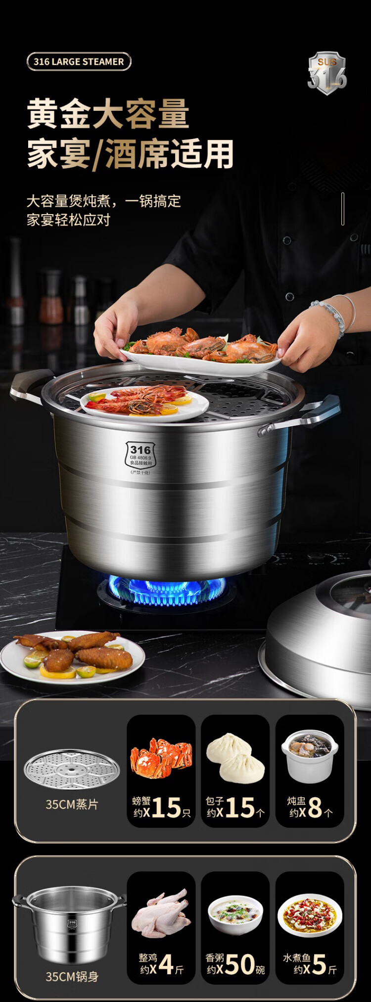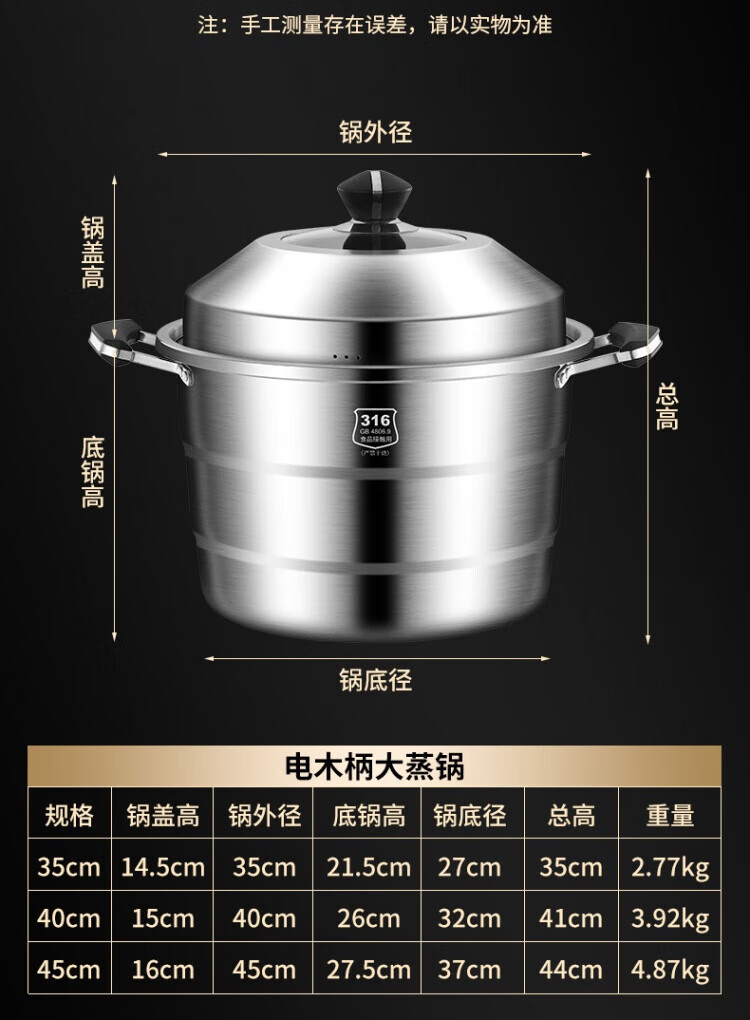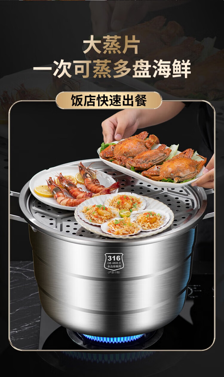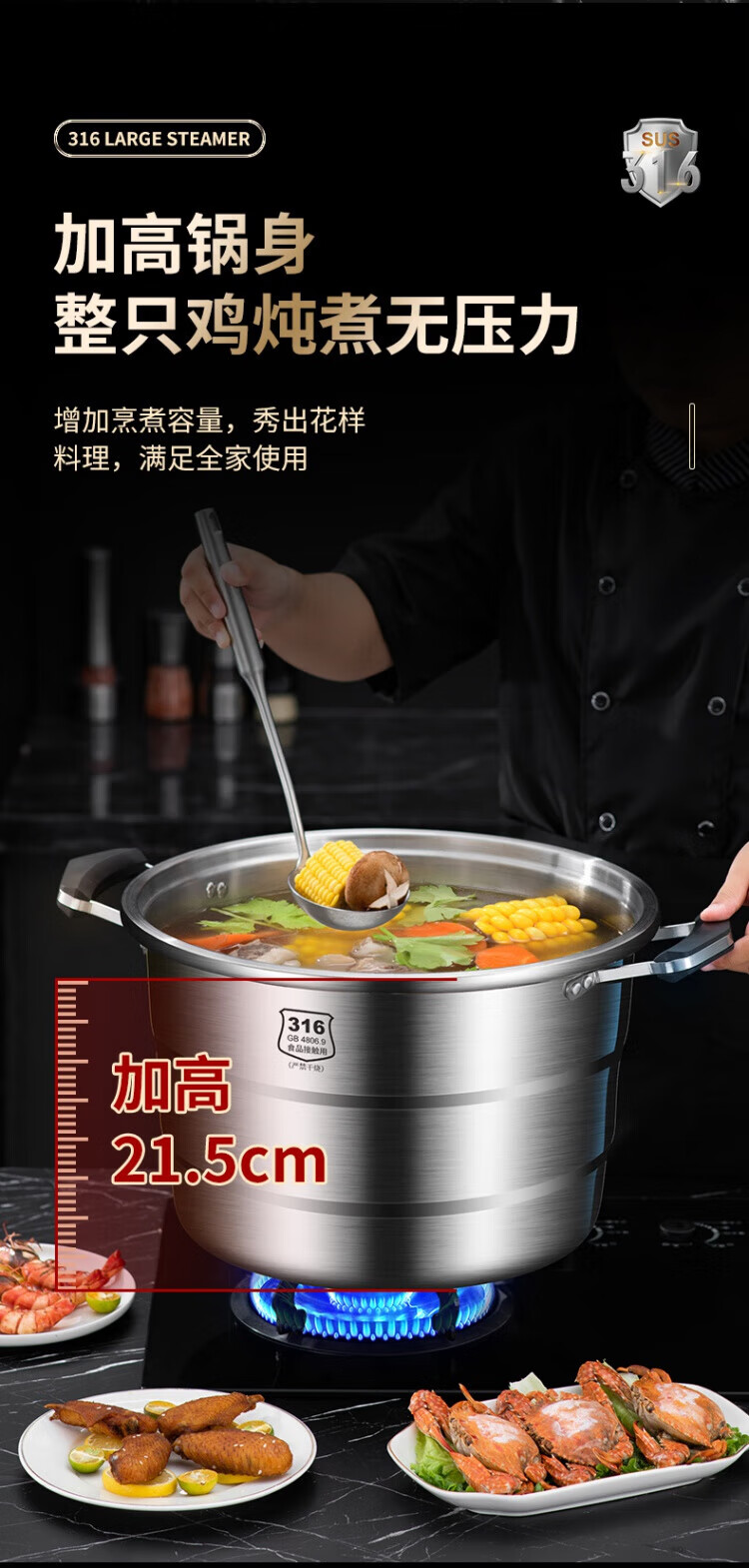 WCZ German 316 stainless steel large steamer food grade thickened steamer large capacity steaming stew pot double three-layer home 316 level 35 cm anti-scalding 35cm