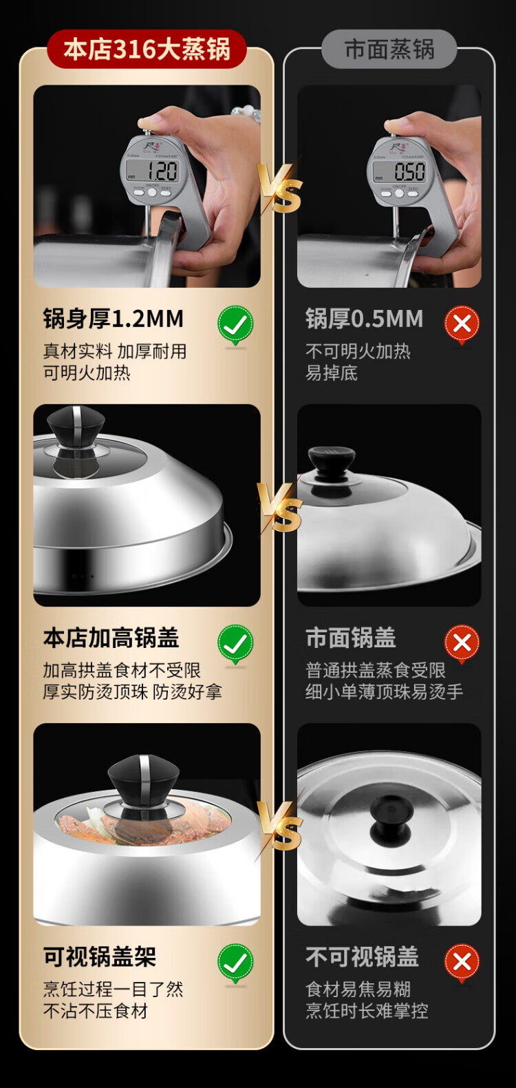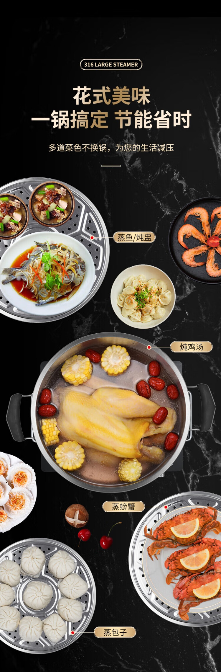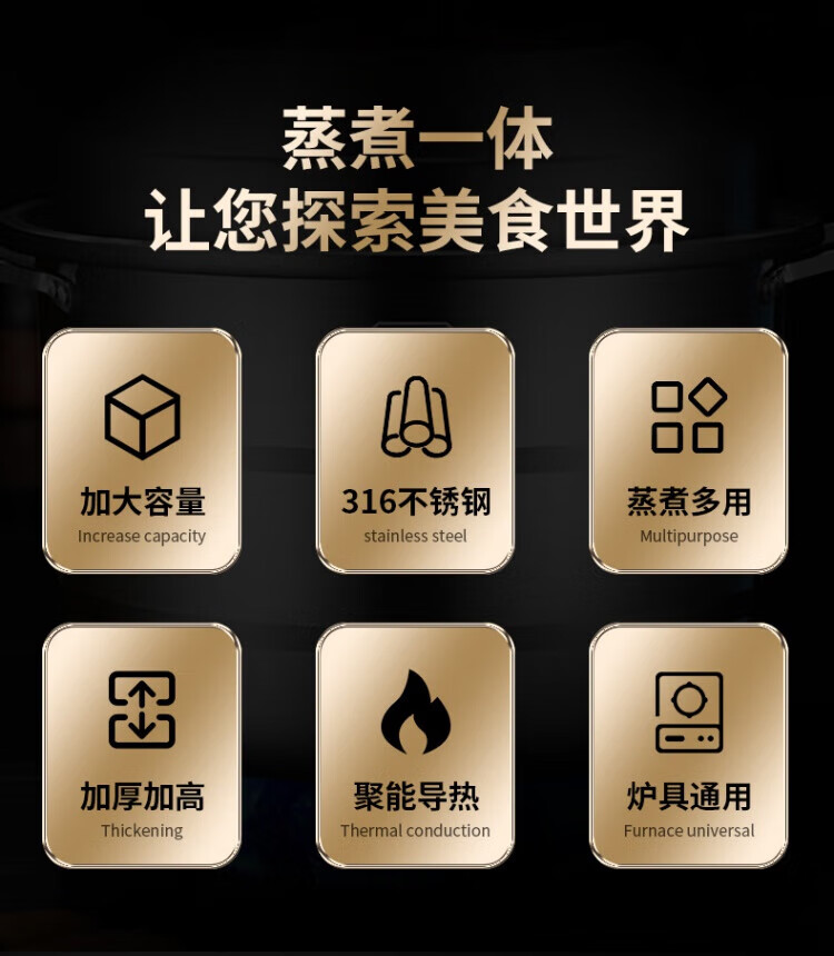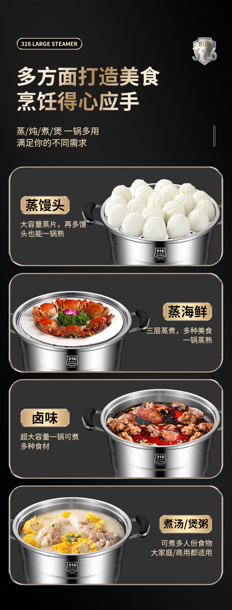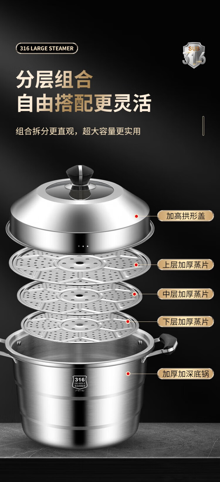WCZ German 316 stainless steel large steamer food grade thickened steamer large capacity steaming stew pot double three-layer home 316 level 35 cm anti-scalding 35cm