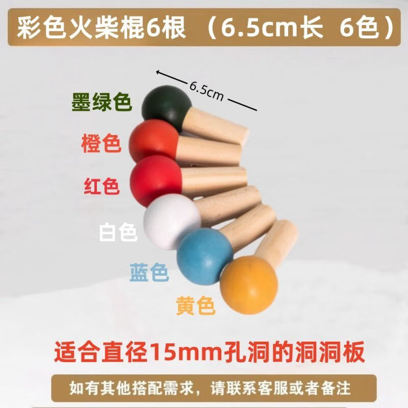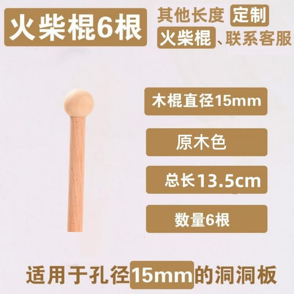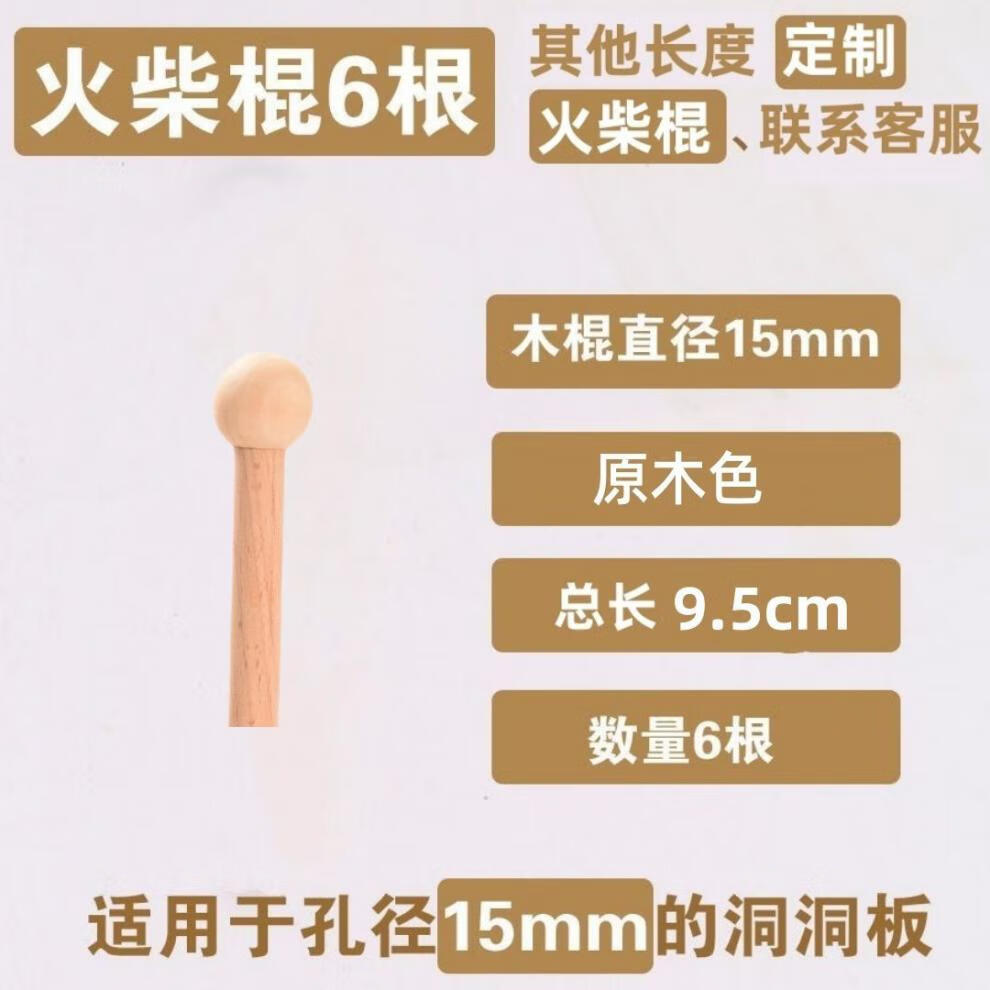Hole board accessories storage hole board wood hook round head matchstick stick bracket solid wood laminate wooden pendant 6 colored matchsticks medium suitable for 15mm hole diameter hole board