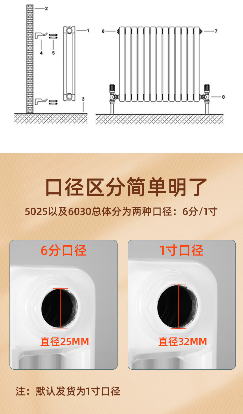 Miaopule, exclusive to the northern region, factory direct sales, customized old-fashioned cast iron radiator, household wall-mounted radiator, thickened 6030 square round head, full height, 10 columns, 180mm