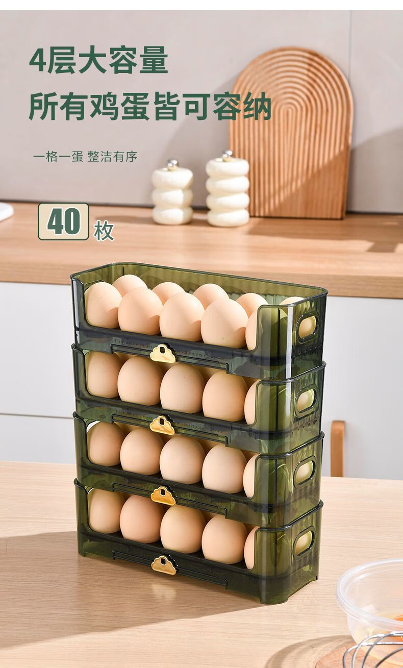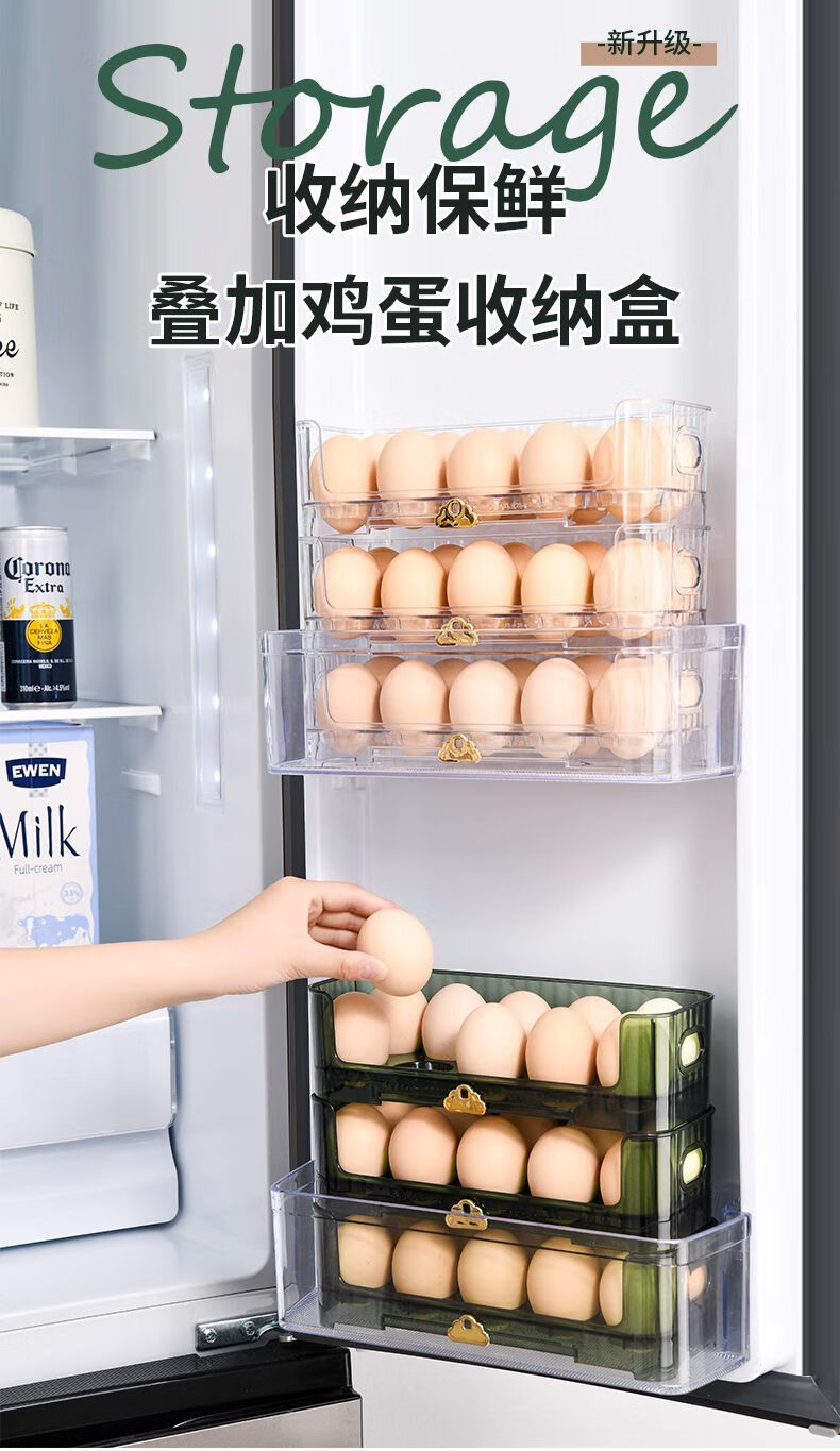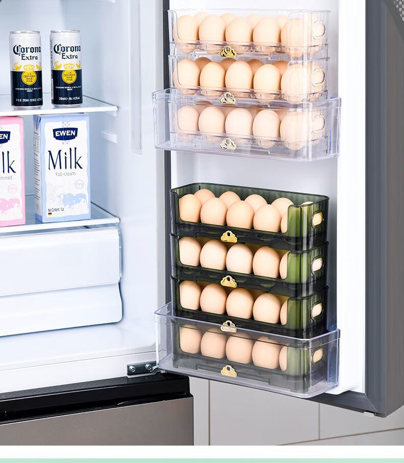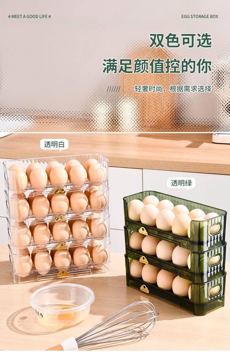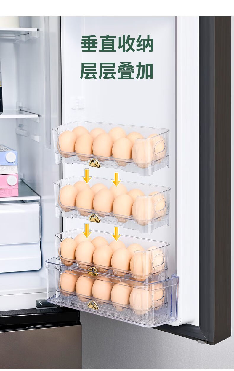 Quhe Internet celebrity egg box home kitchen refrigerator door storage artifact multi-layer stackable egg storage rack storage box transparent solid color four packs upgrade can be stacked and can hold 40 chickens