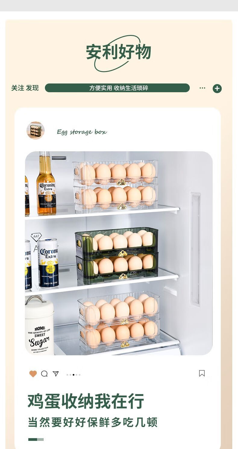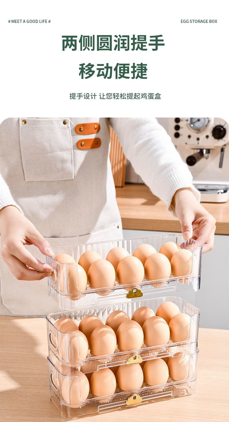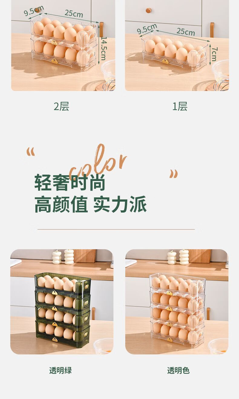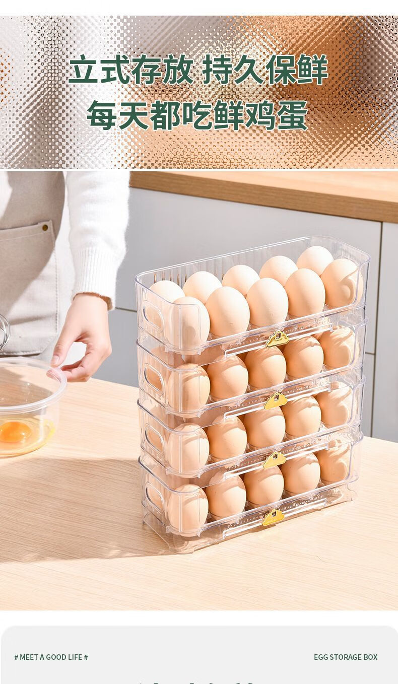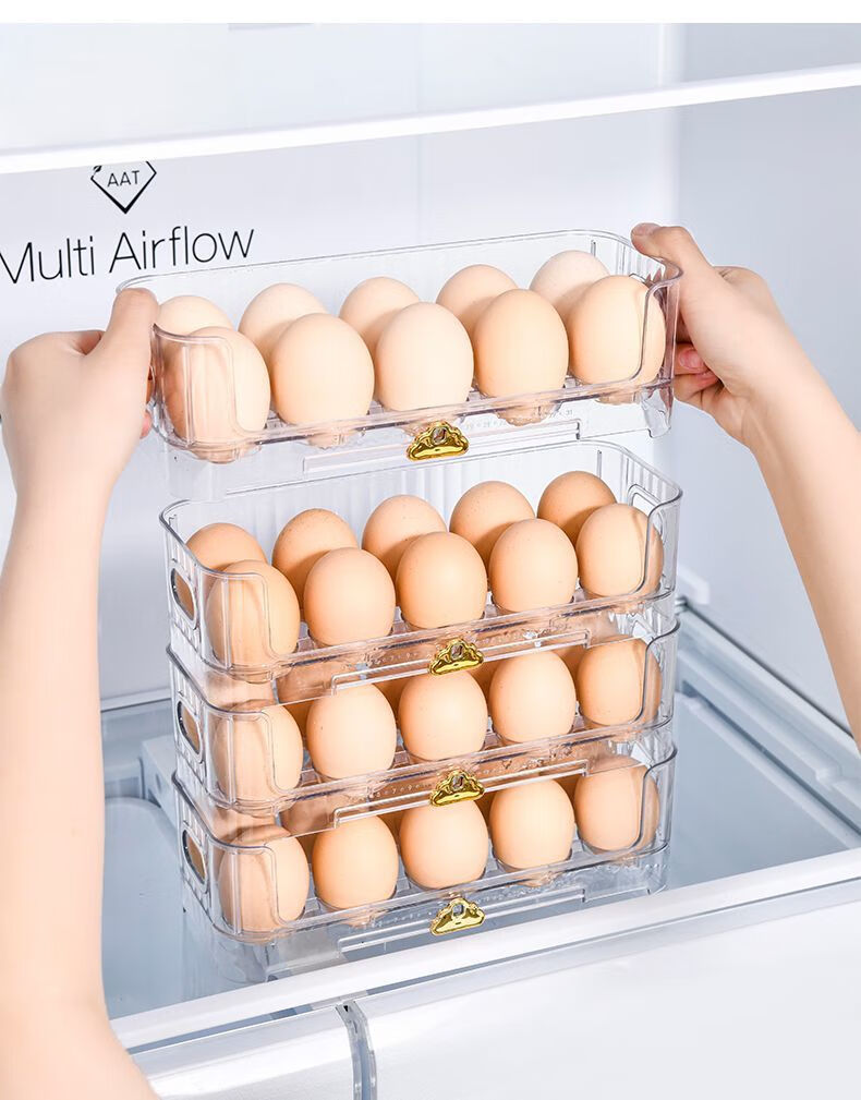 Quhe Internet celebrity egg box home kitchen refrigerator door storage artifact multi-layer stackable egg storage rack storage box transparent solid color four packs upgrade can be stacked and can hold 40 chickens