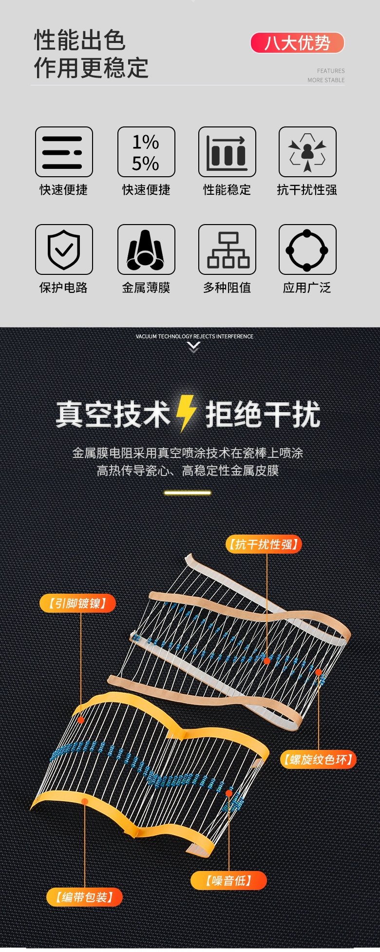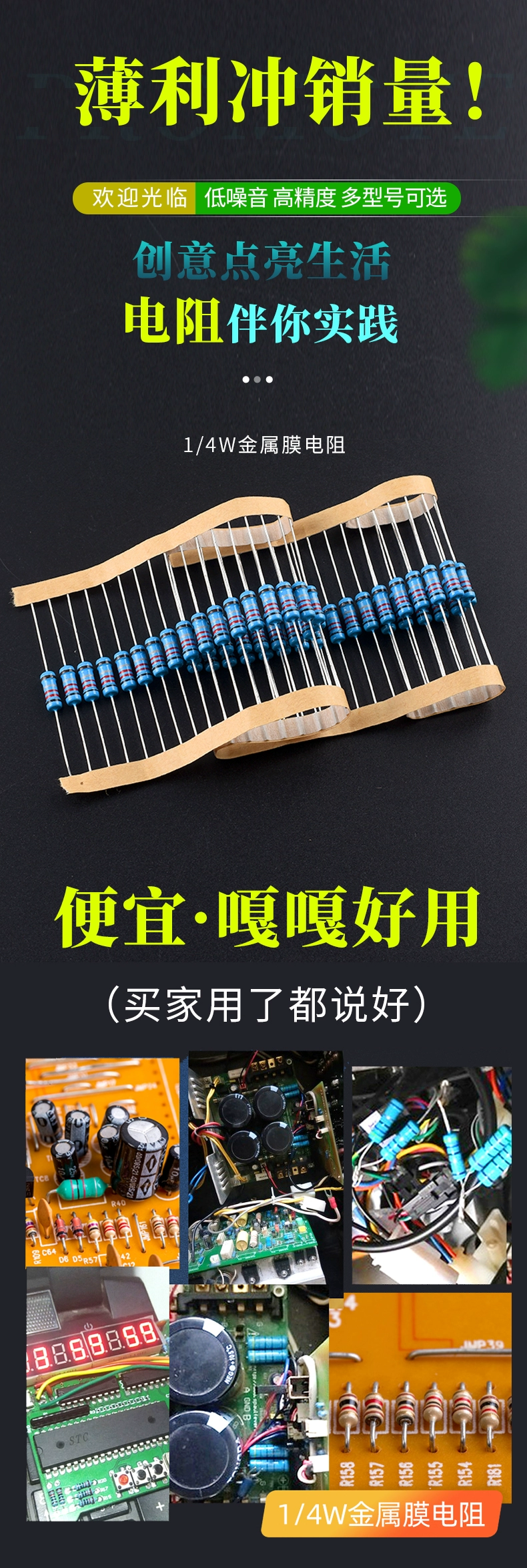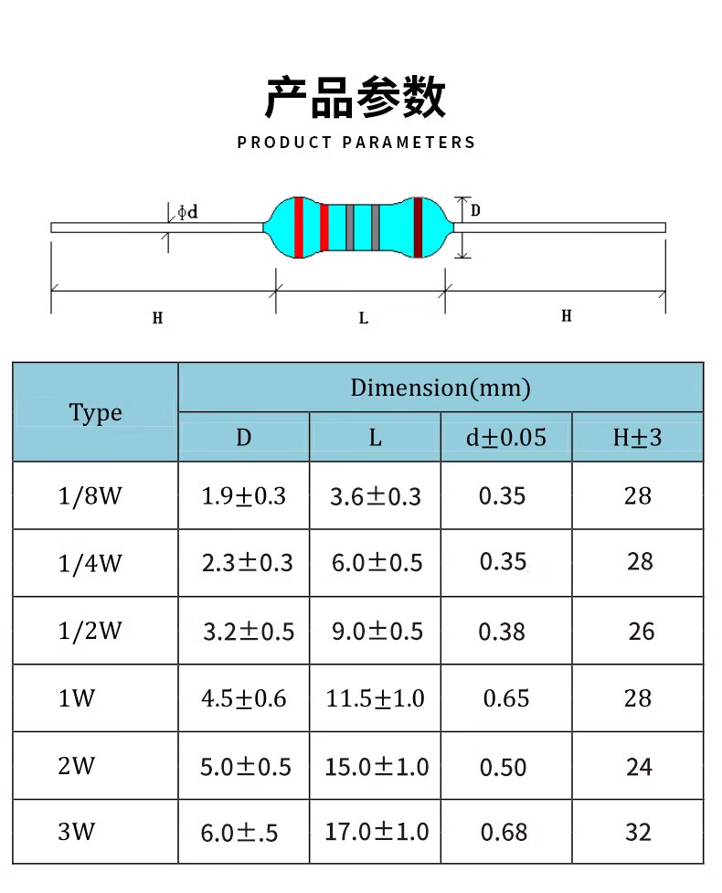 2W metal film resistor element 1% color ring 22 ohm 1K 10K 4.7K100K200K 1M2 ohm 120 ohm 390 ohm 2W (20 pieces)