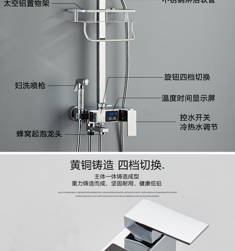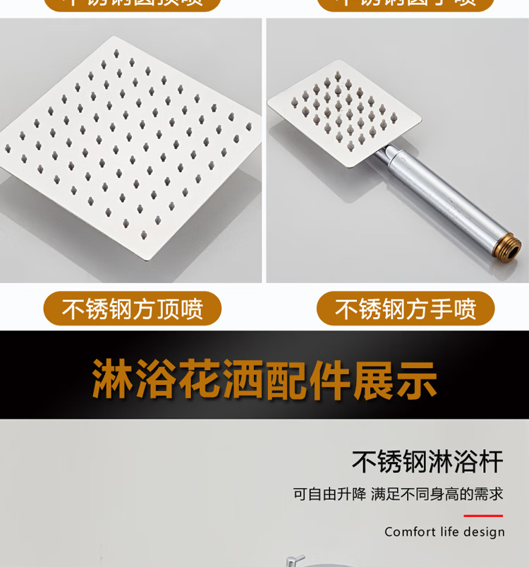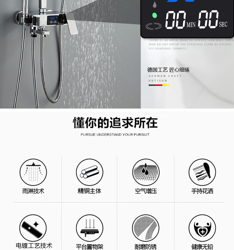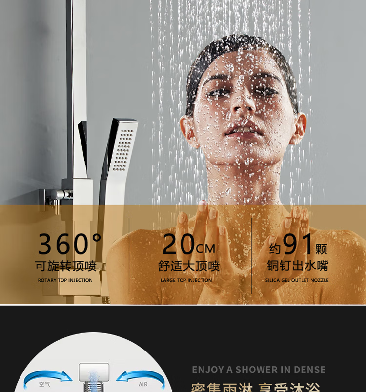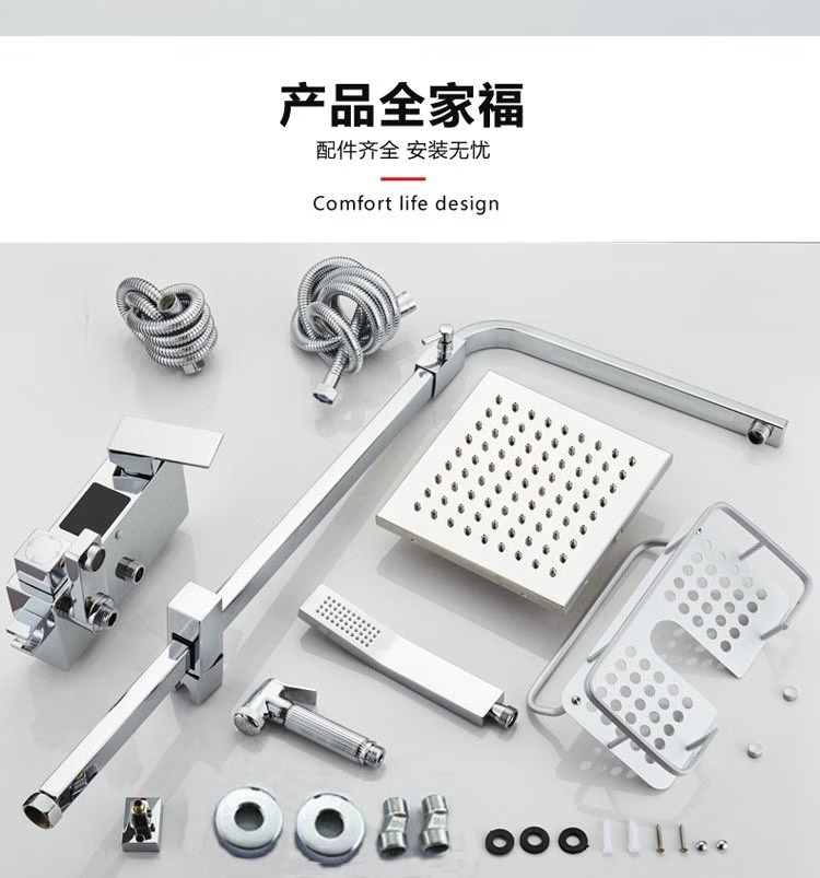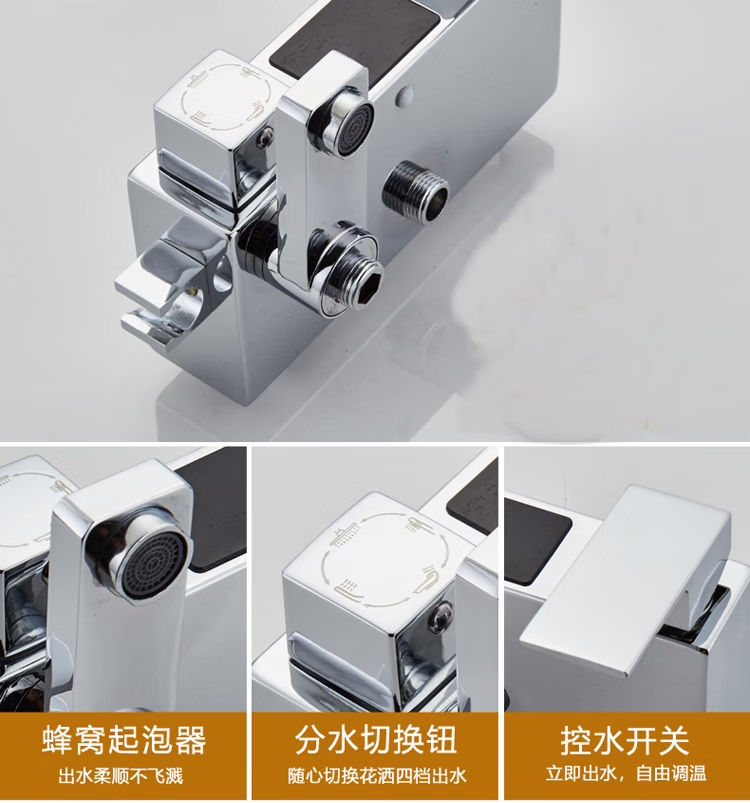 Komaki Premium MU Shower Set Home Constant Temperature Full Copper Bathroom Bathroom Rain Shower Bath Faucet Booster Nozzle M4 Constant Temperature Display Four-stop Square Tube + Thickened Copper Nails
