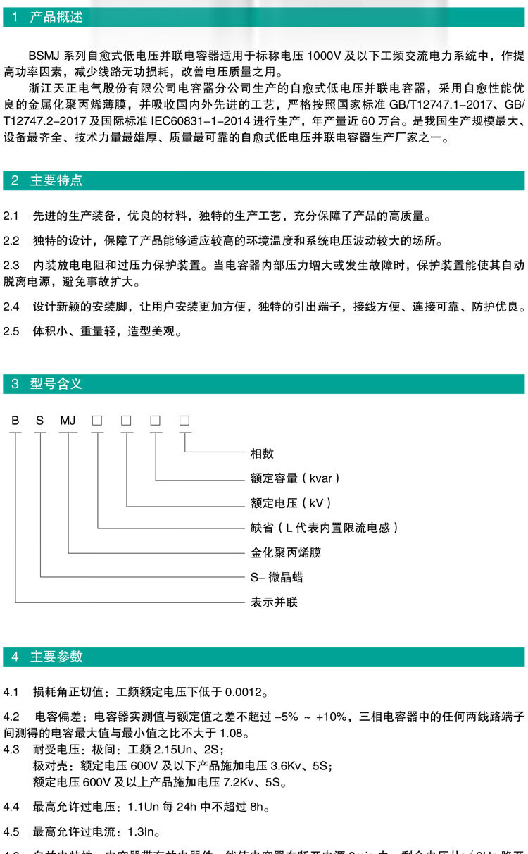 Tianzheng Electric Capacitor Parallel Capacitor BSMJ Series ASMJ0.45-30-3