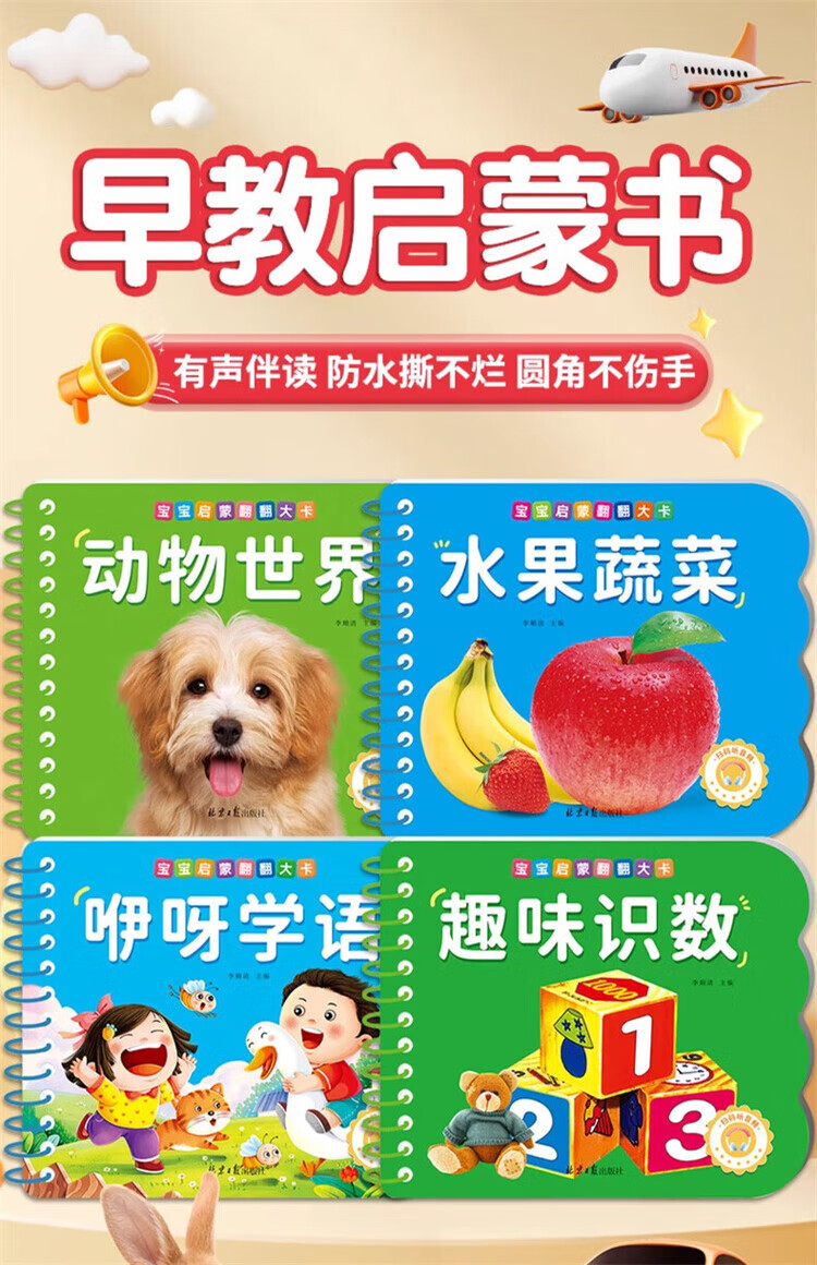 Can't be torn but can be chewed. Infant enlightenment cognitive early education book. Baby picture book for 0-1-2-3 years old. Baby book for one-and-a-half-two-year-old educational toy. Large card animal recognition book. Color fun. Number recognition. babbling for 6 months and above. Complete set of 8 volumes. Enlightenment cognitive 4 volumes + 4 volumes before bedtime.