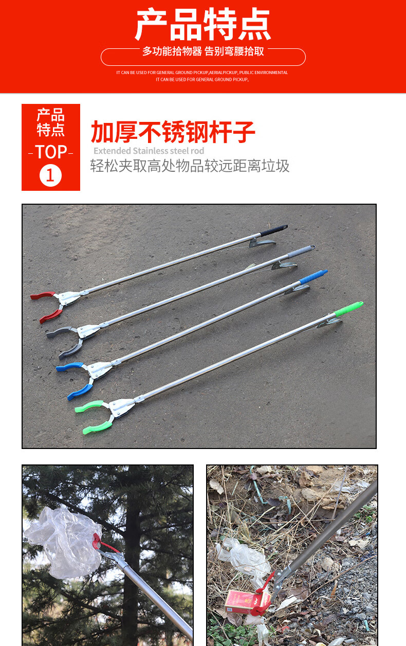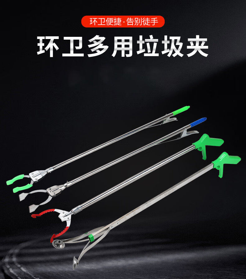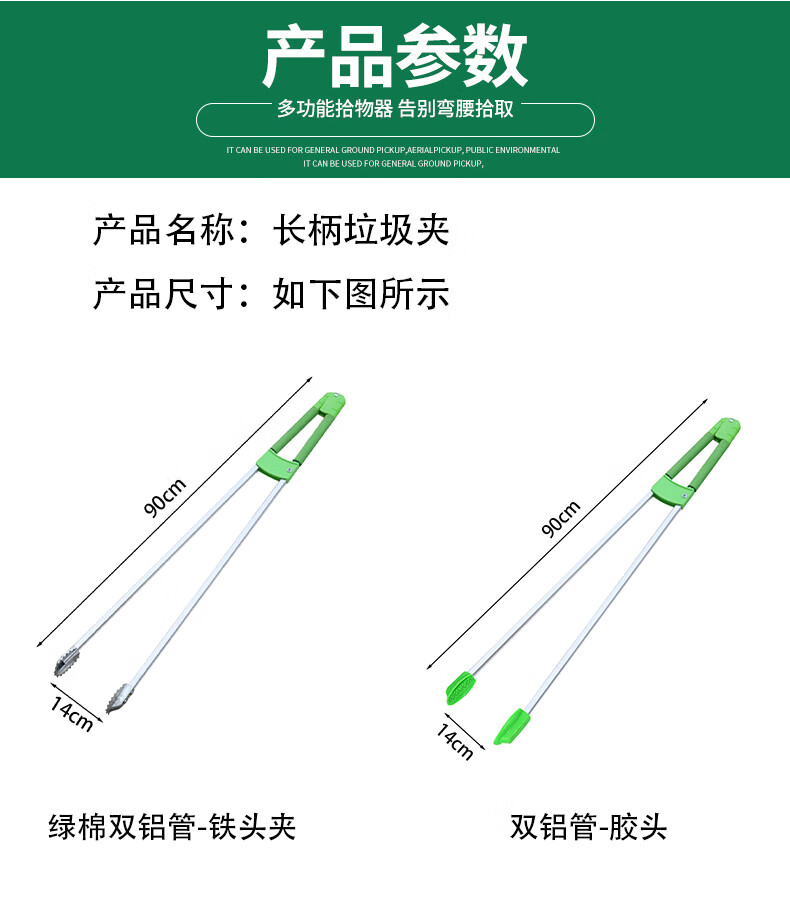 Mrs. Zhuang sanitation long-handled garbage clip picker garbage pliers double aluminum tube-glue head-garbage clip