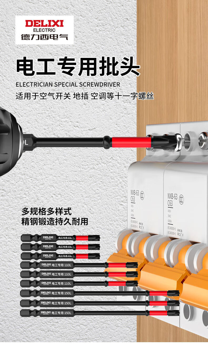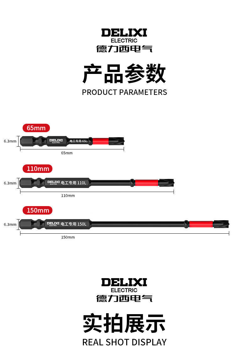 Delixi Electric electrician's special eleven-digit bit socket air switch strong magnetic anti-slip hand electric drill tool extension 65+110+150mm standing 3-piece set
