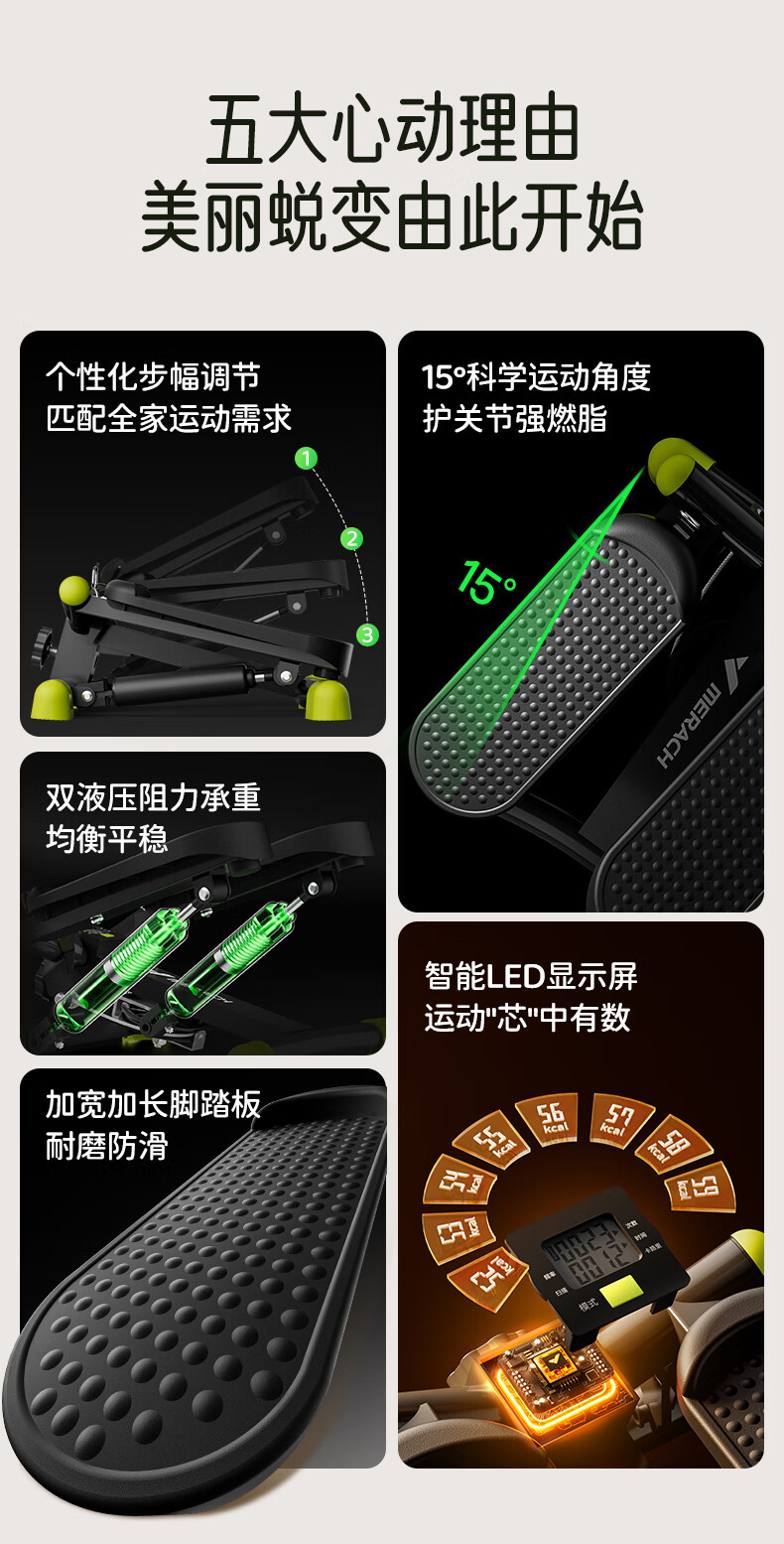 Merrick stepper home fitness in-situ pedal machine silent small sports fitness equipment A adjustable resistance model newly upgraded color-shock-absorbing and quiet