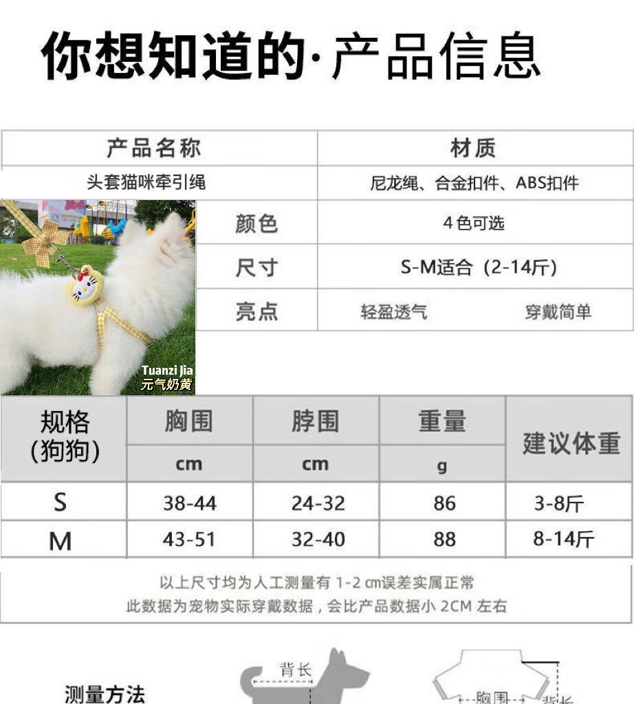 OIMG puppy leash dog walking leash puppy Teddy Bichon Pomeranian anti-breakaway dog leash dog leash cute when going out KT doll Taotaoyao powder 99.99% comfort S size 2-7 pounds