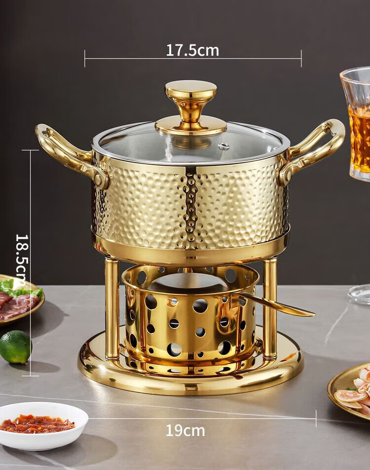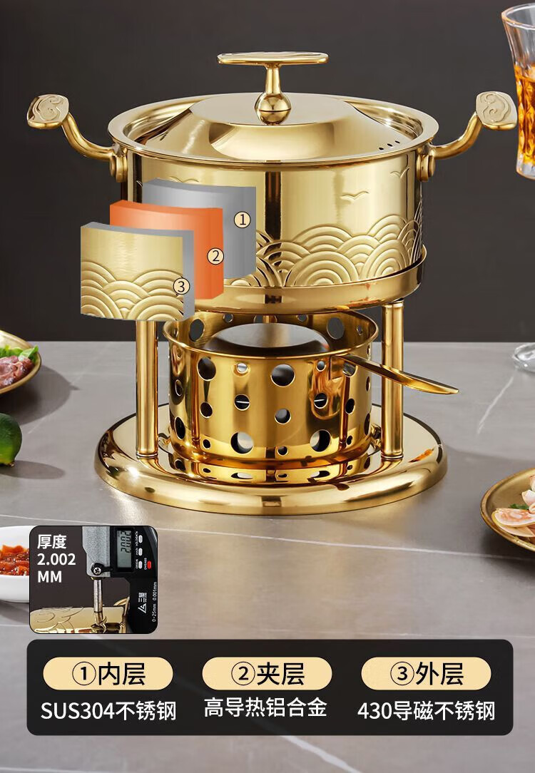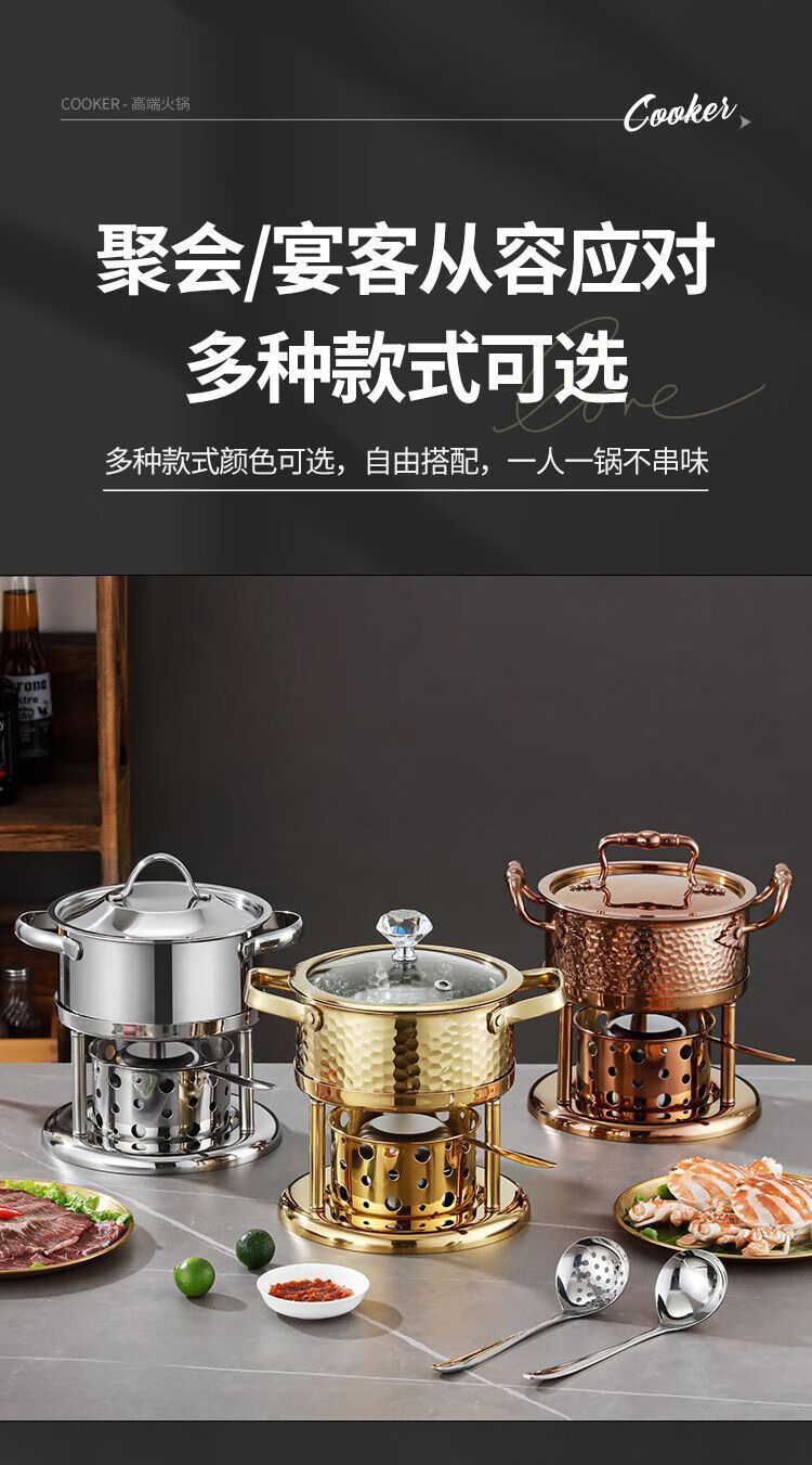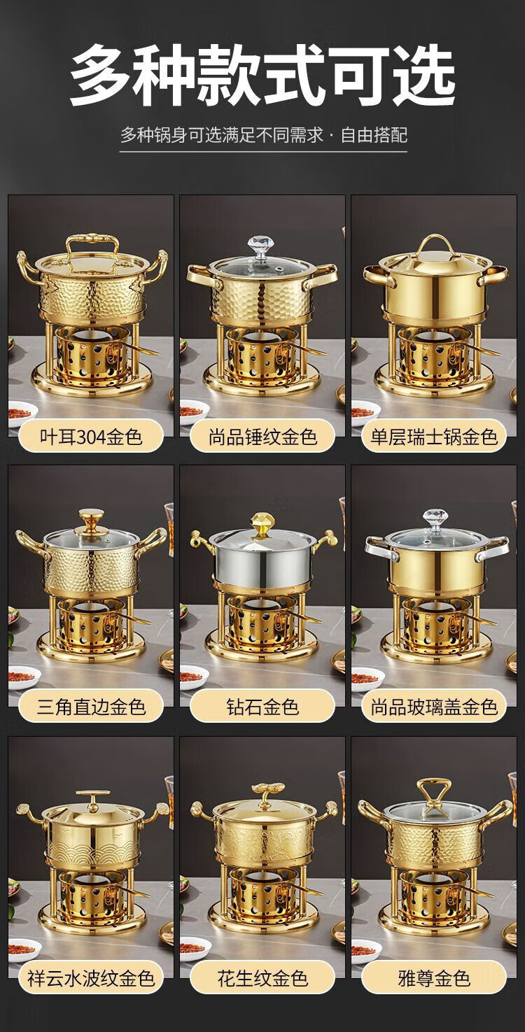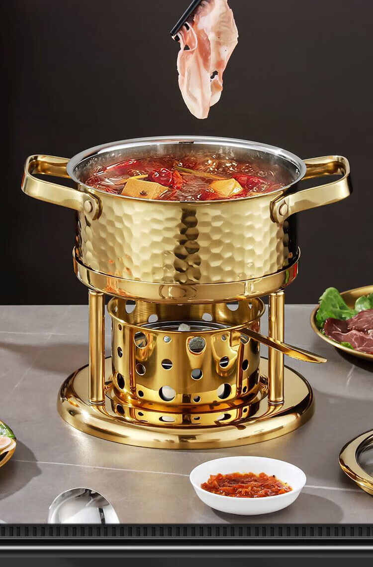 Guo Xiake single-person small hot pot 304 stainless steel alcohol stove hot pot, one person, one pot, commercial pot self-service hot pot, portable, silver Swiss pot steel lid - equipped with 4 environmentally friendly oil tanks 16cm