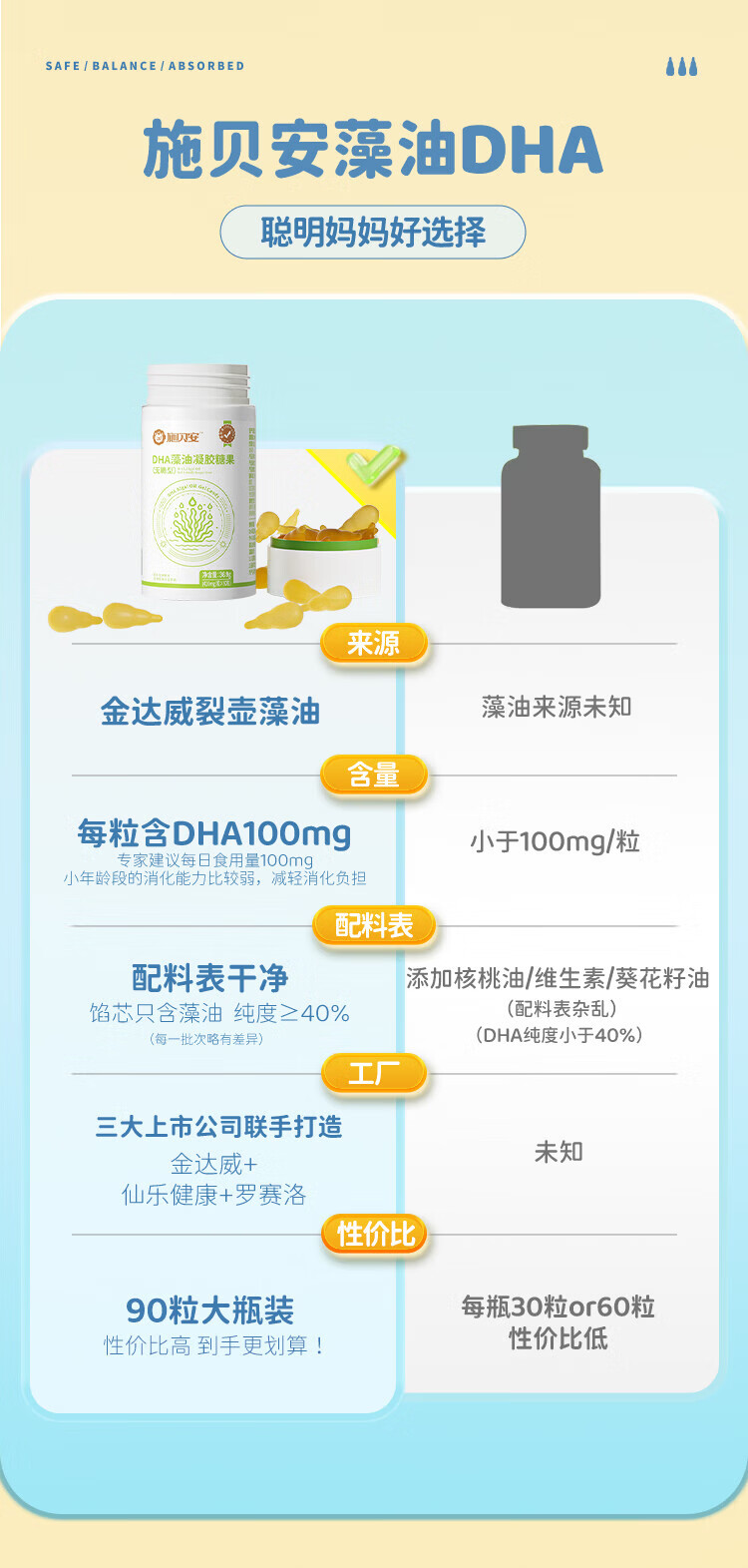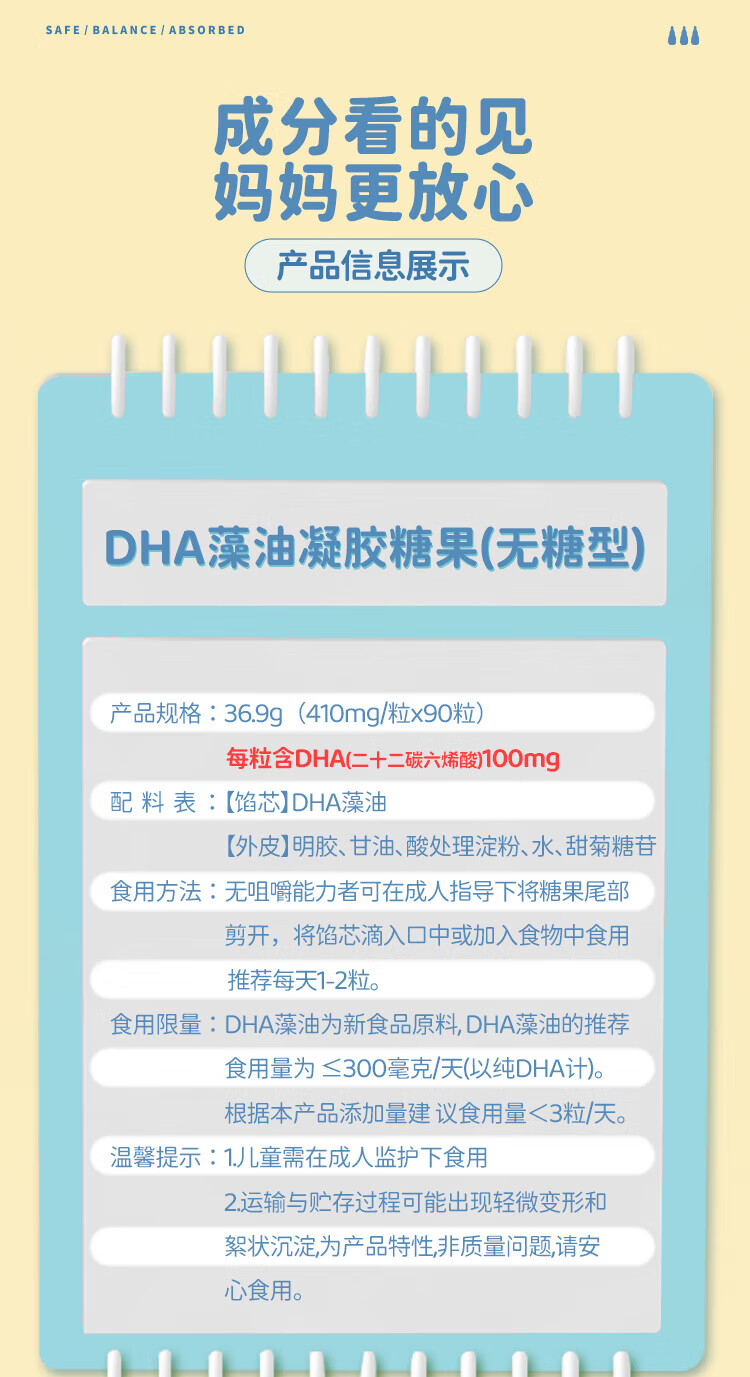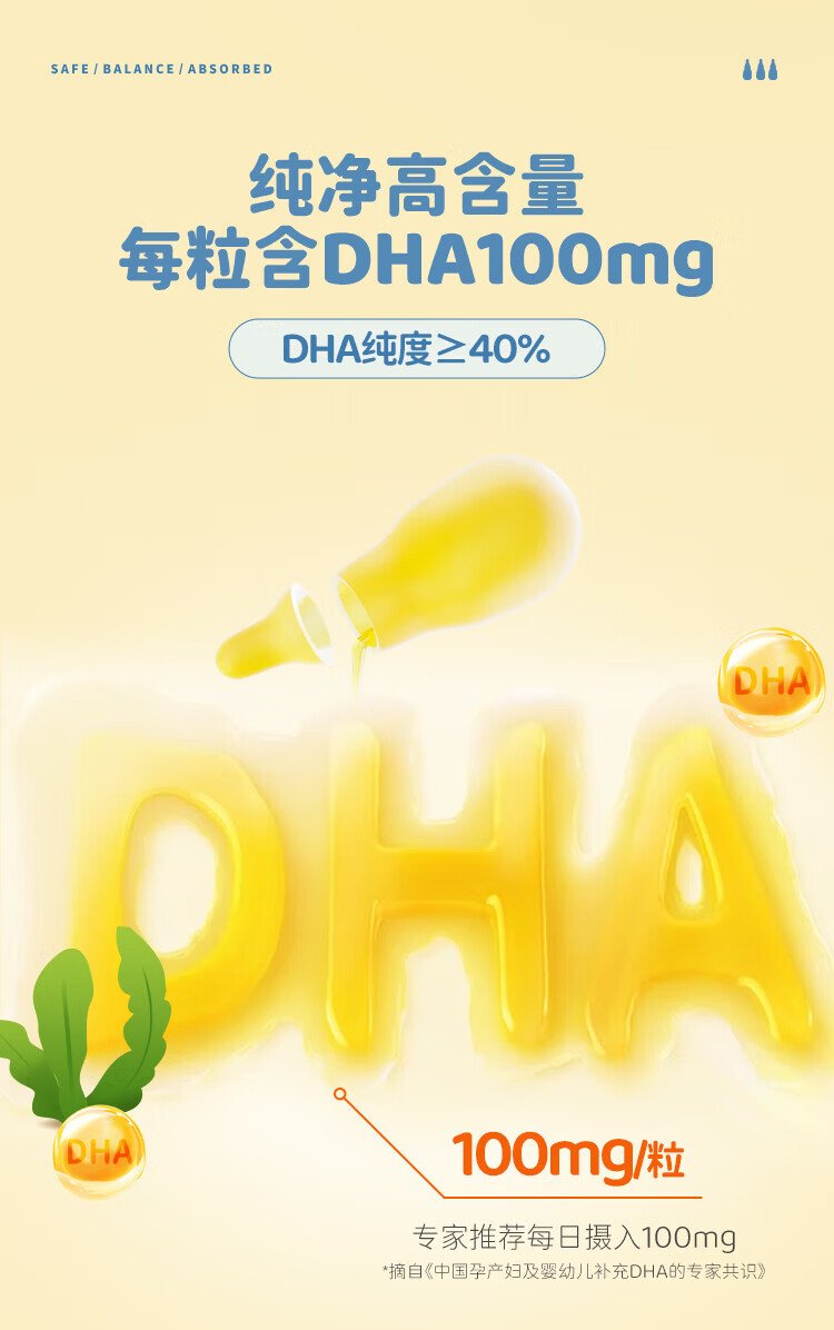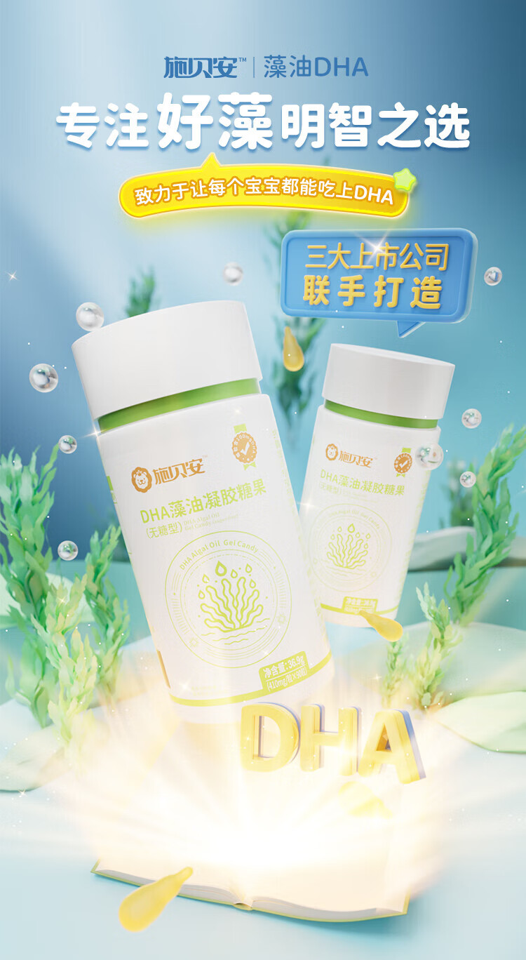 Shibei'an domestic DHA seaweed plant Schizochytrium algae oil, pregnant women can eat DHA 100mg 90 capsules/bottle 90 capsules * 2 bottles (pure algae oil, less fishy smell)