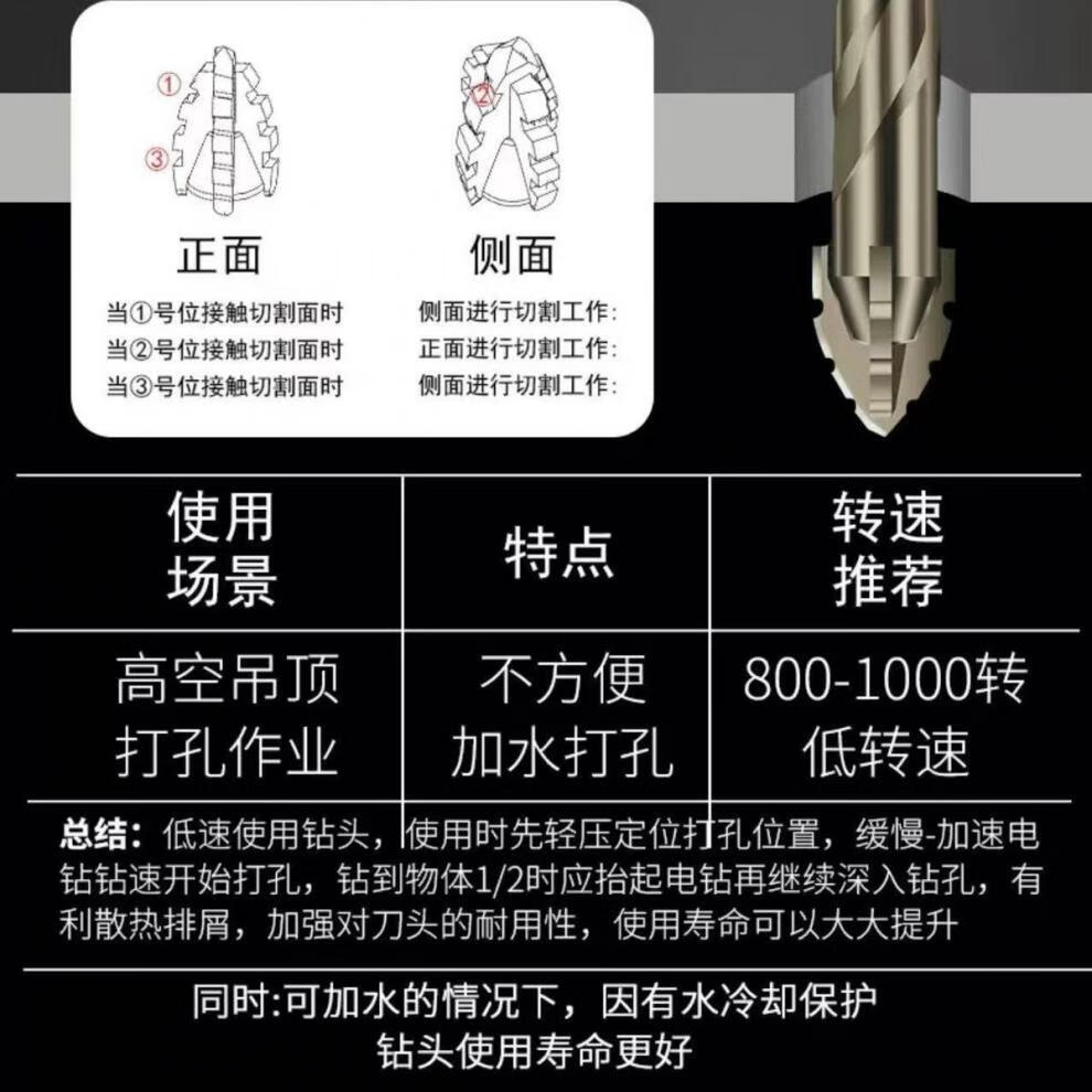 Runhuanian full-tile four-edged sharp tooth drill dry drilling full-tile concrete, gold, stone, glass and other drilling tools New product - four-edged - sharp tooth spiral design - four-edged super hard 6mm 2 pieces