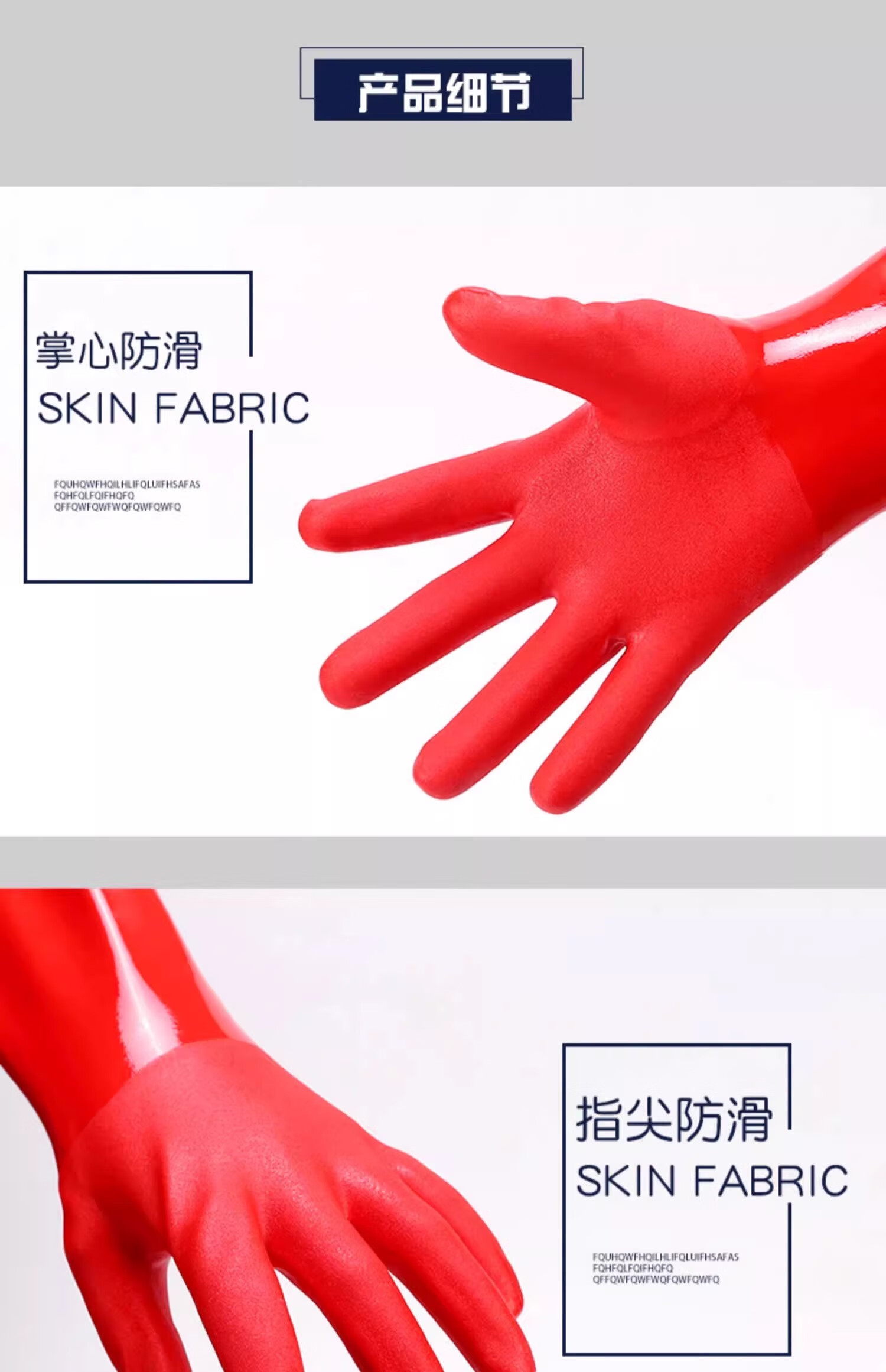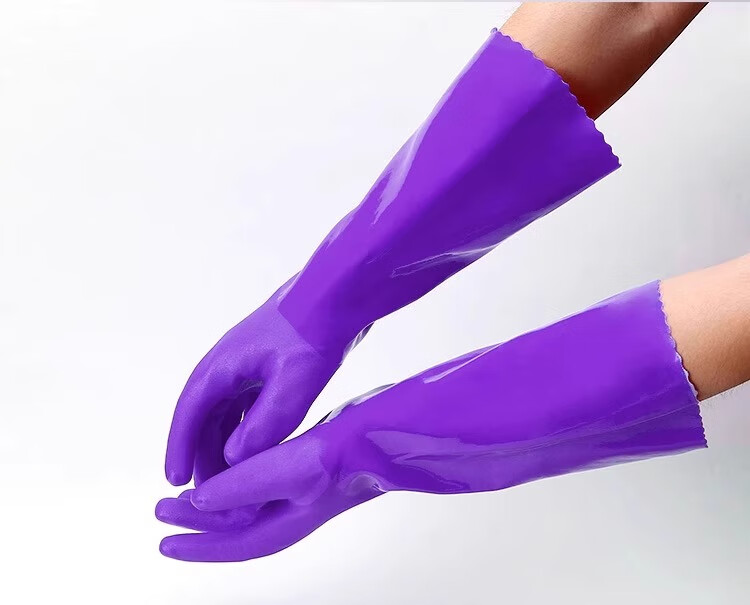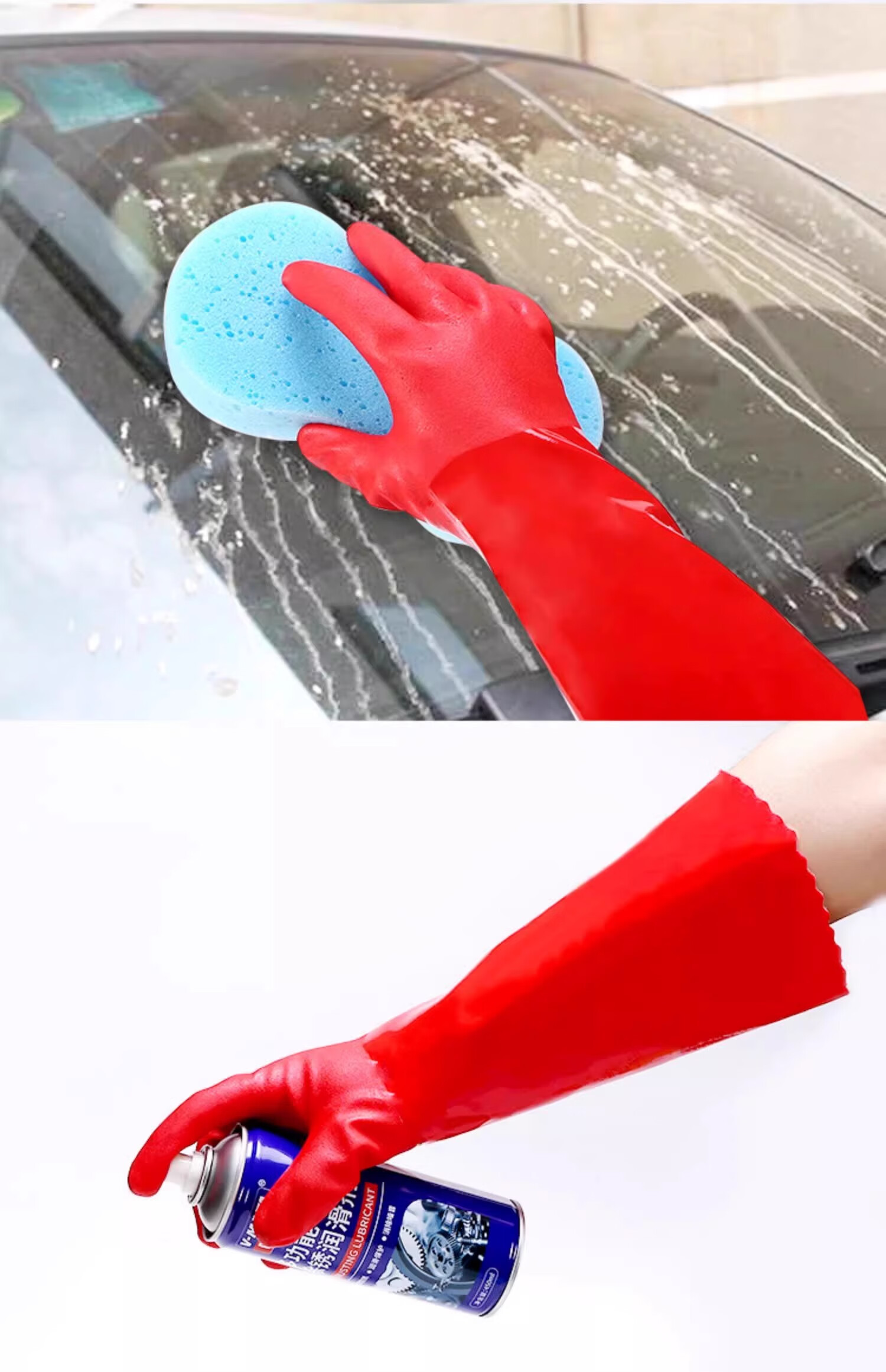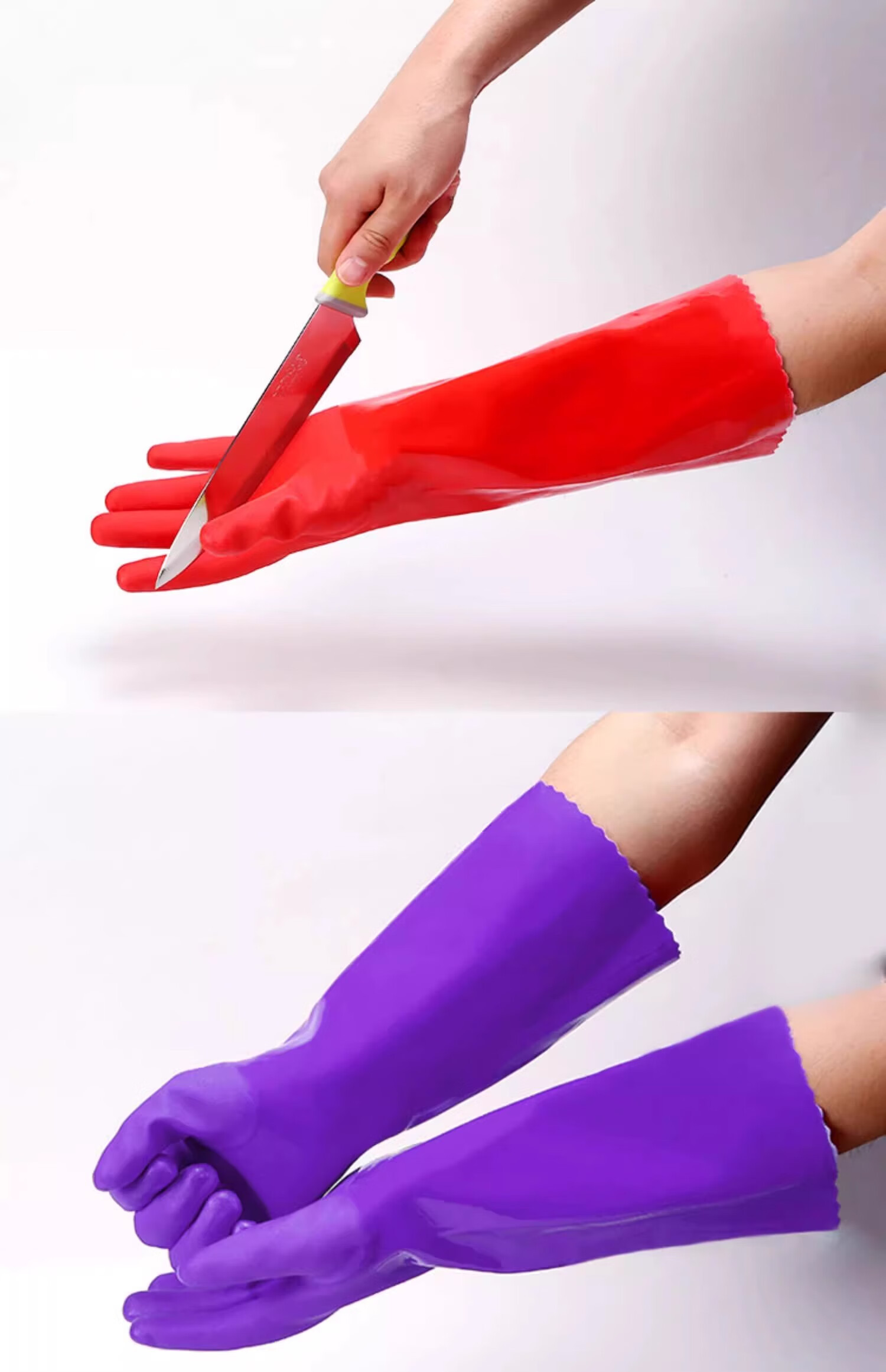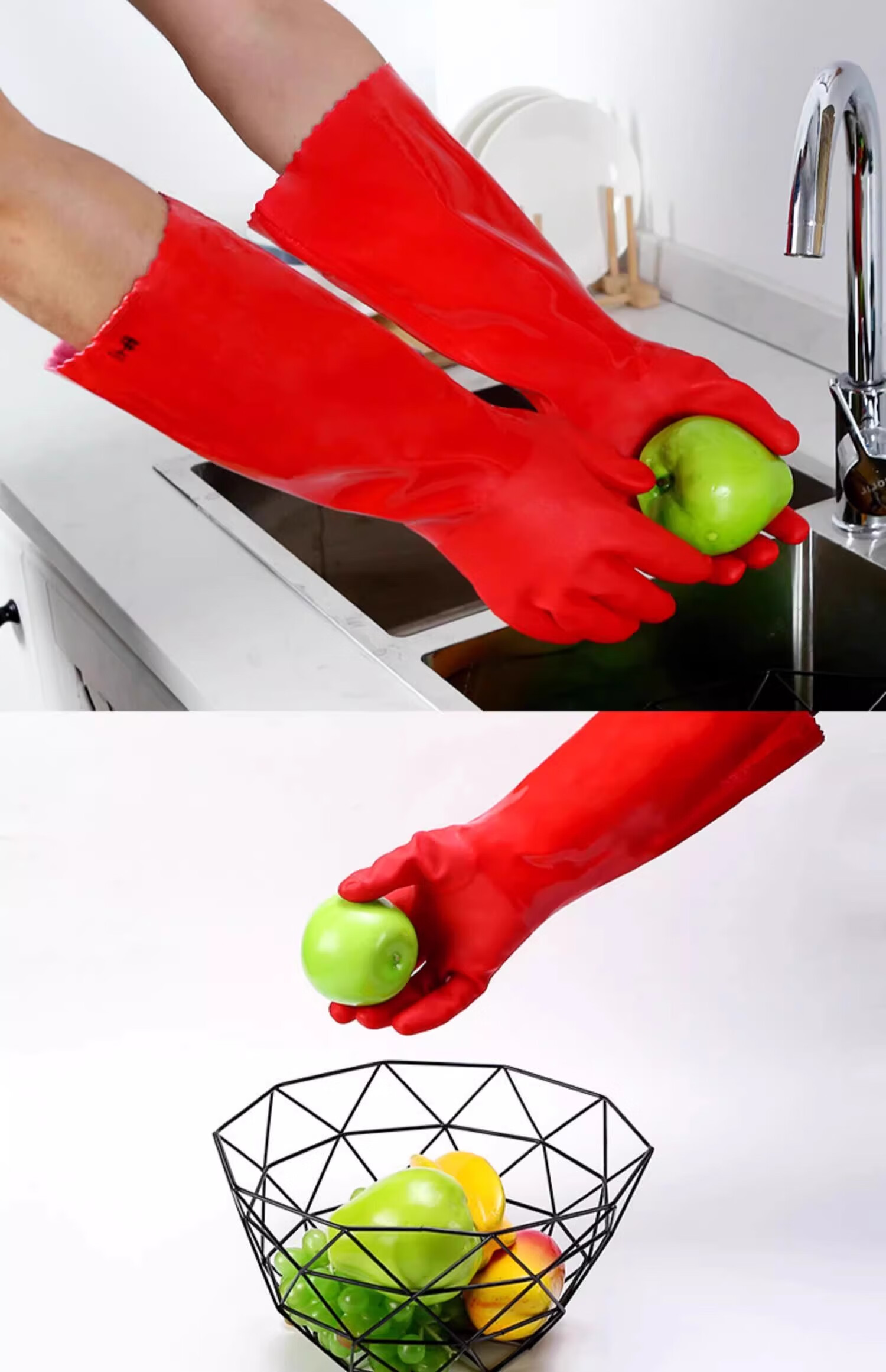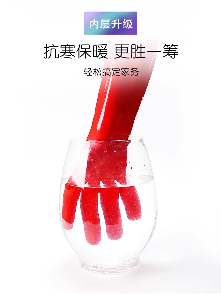 Dishwashing gloves, housework, kitchen, durable, velvet, thickened rubber, women's rubber, waterproof, extended rubber, washing clothes and washing dishes, red one-piece velvet (40cm), 1 pair, one size fits all