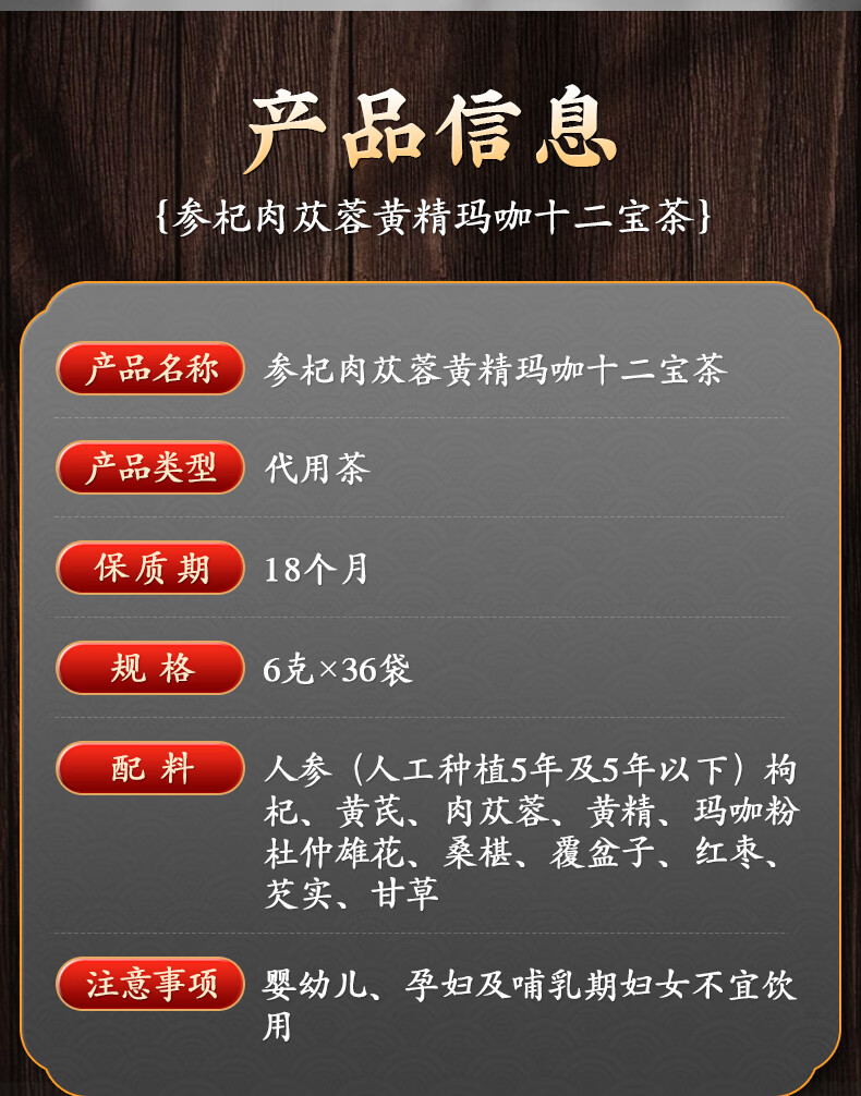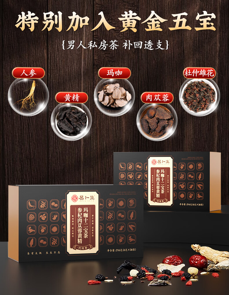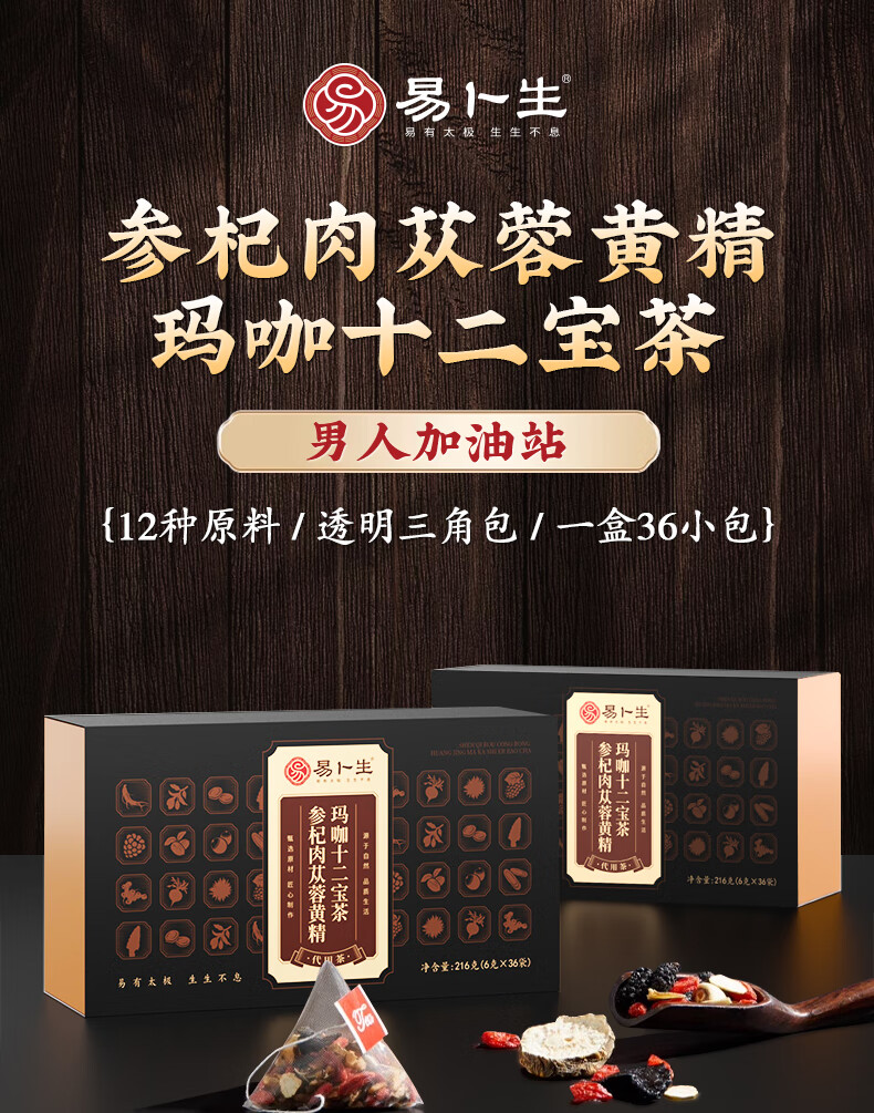 Ibsen Wolfberry Replenishing Kidney Health Tea Men's Ginseng Maca Huangjing Babao Tea Jiuyang Hard Strength Tea Stay Up Late Soaking Tea Bag Nine Flavors Men's Tea One Bag 180g/36 Small Bags