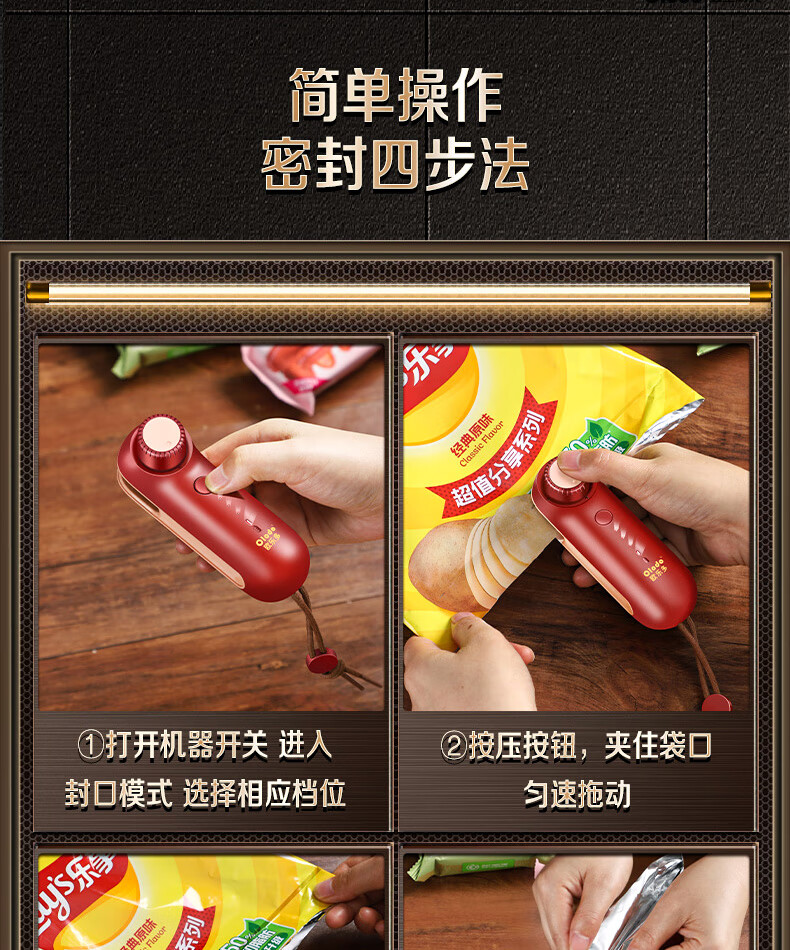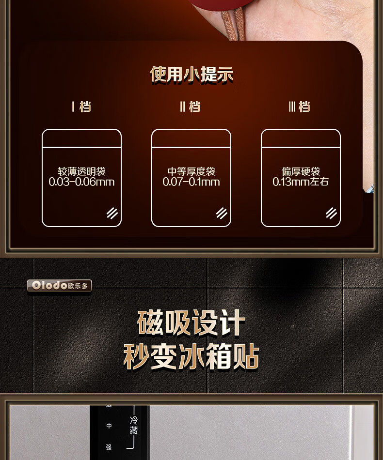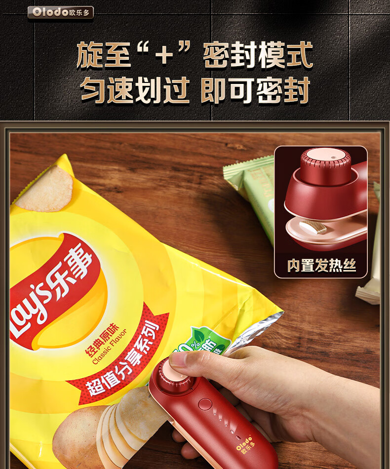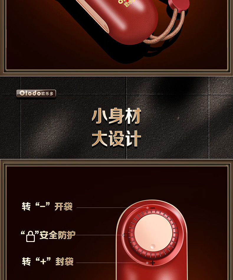 Olodo German mini sealing machine household portable sealer snack bag sealing clip hand pressure sealer rechargeable sealing artifact heat sealing machine bag sealing machine magnetic rechargeable sealing dual-purpose three-speed adjustment