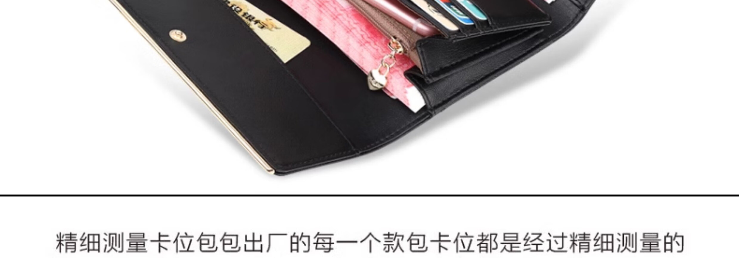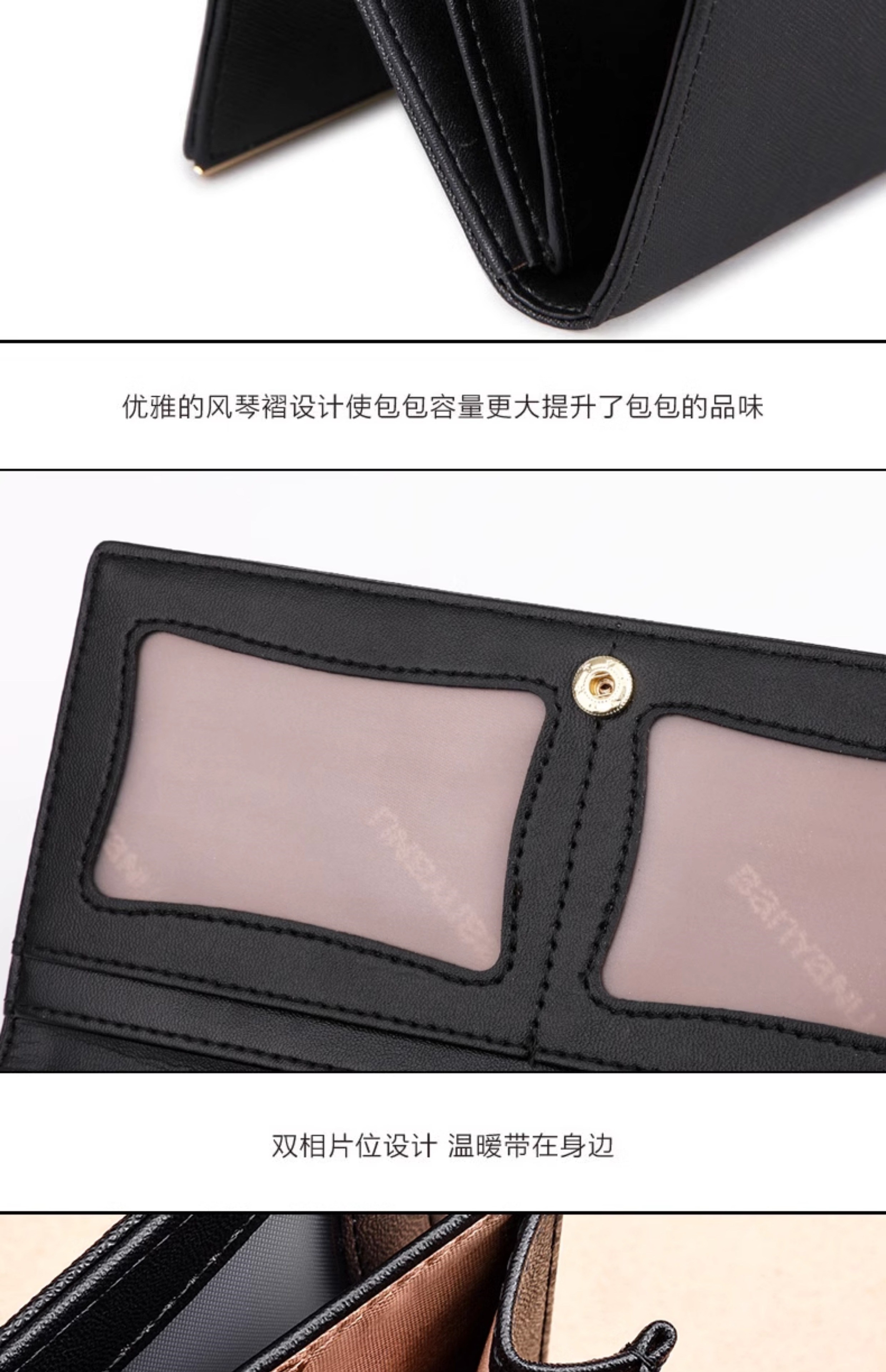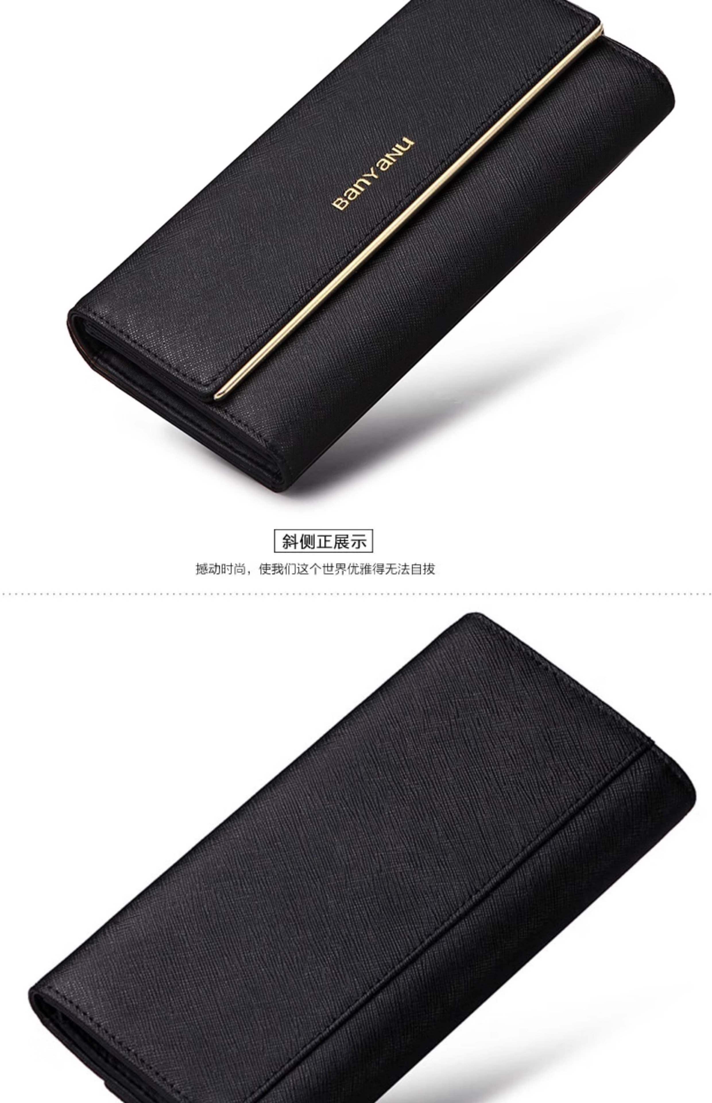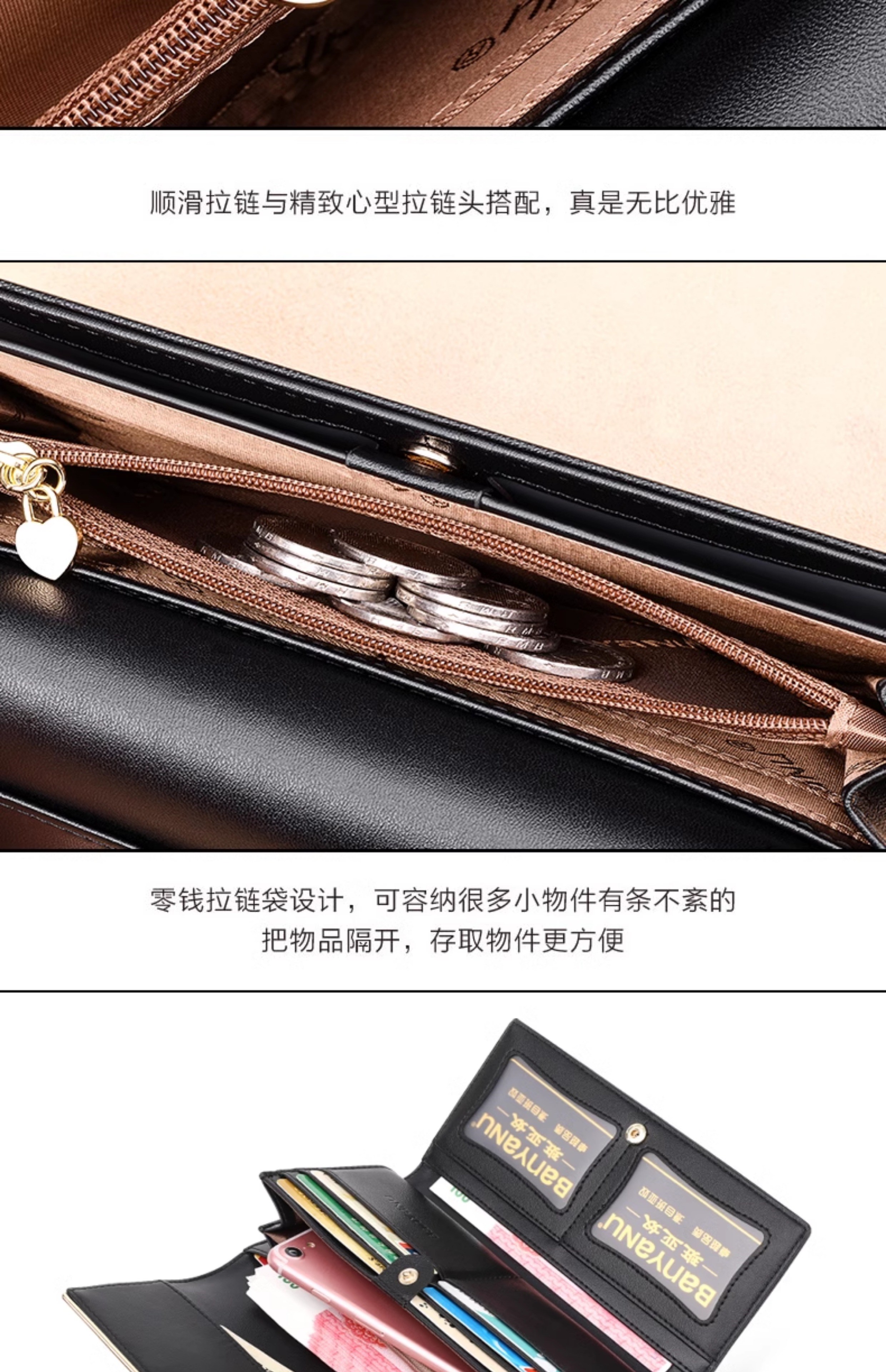 Scarecrow (MEXICAN) 2024 New Fashion Wallet Women's Long Three-fold Large Capacity Genuine Leather Wallet Women's Wallet Thin Black Store Manager Anti-Theft Brush