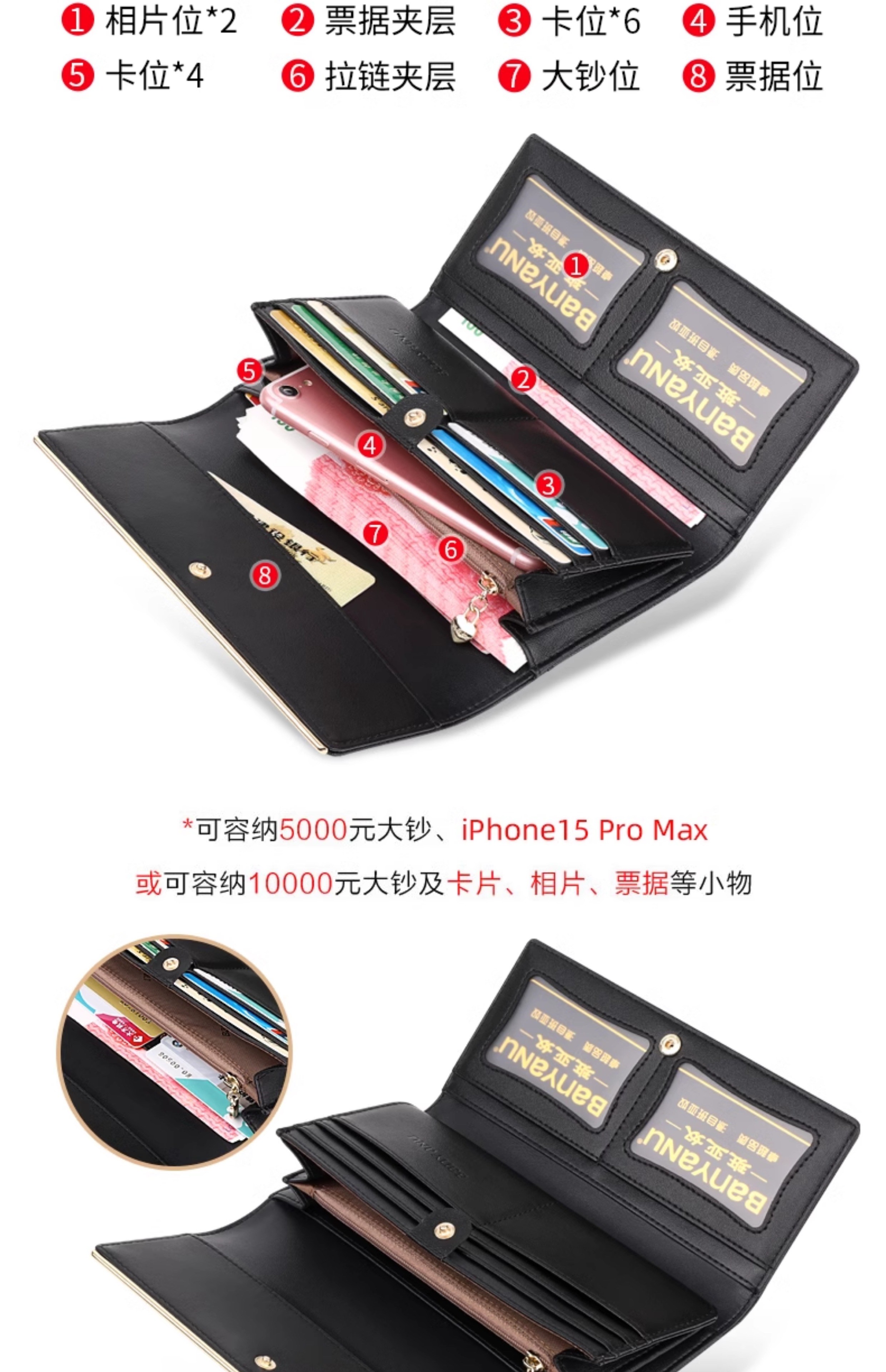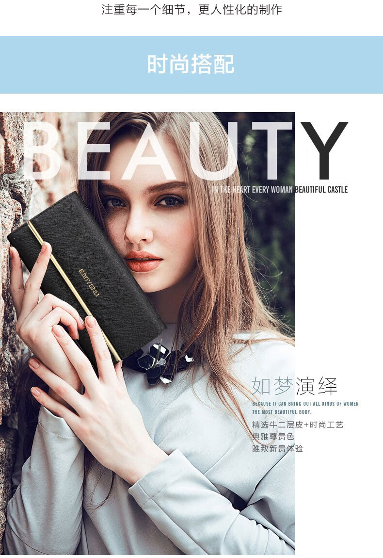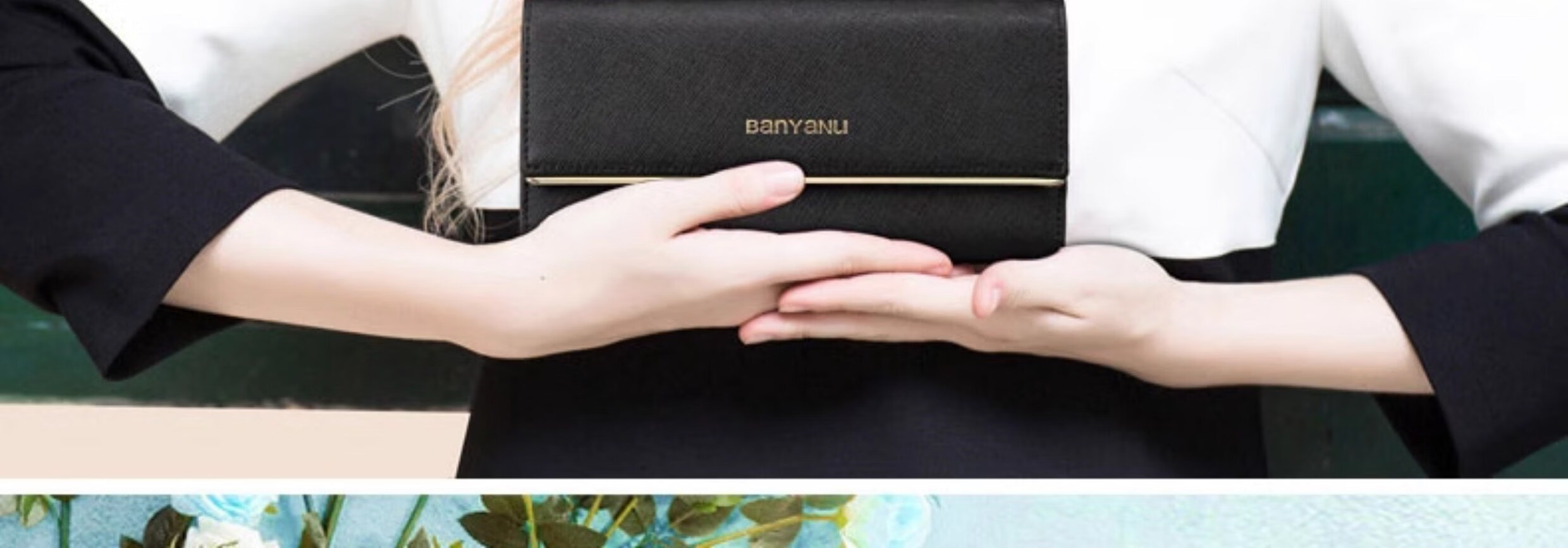 Scarecrow (MEXICAN) 2024 New Fashion Wallet Women's Long Three-fold Large Capacity Genuine Leather Wallet Women's Wallet Thin Black Store Manager Anti-Theft Brush