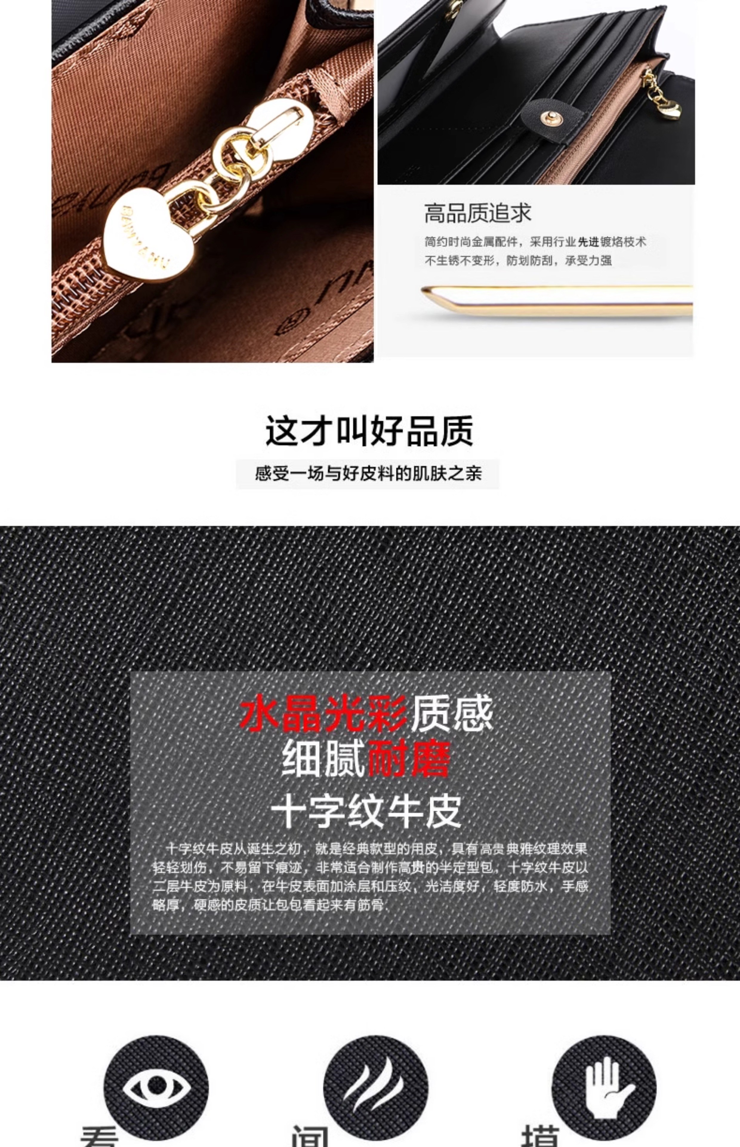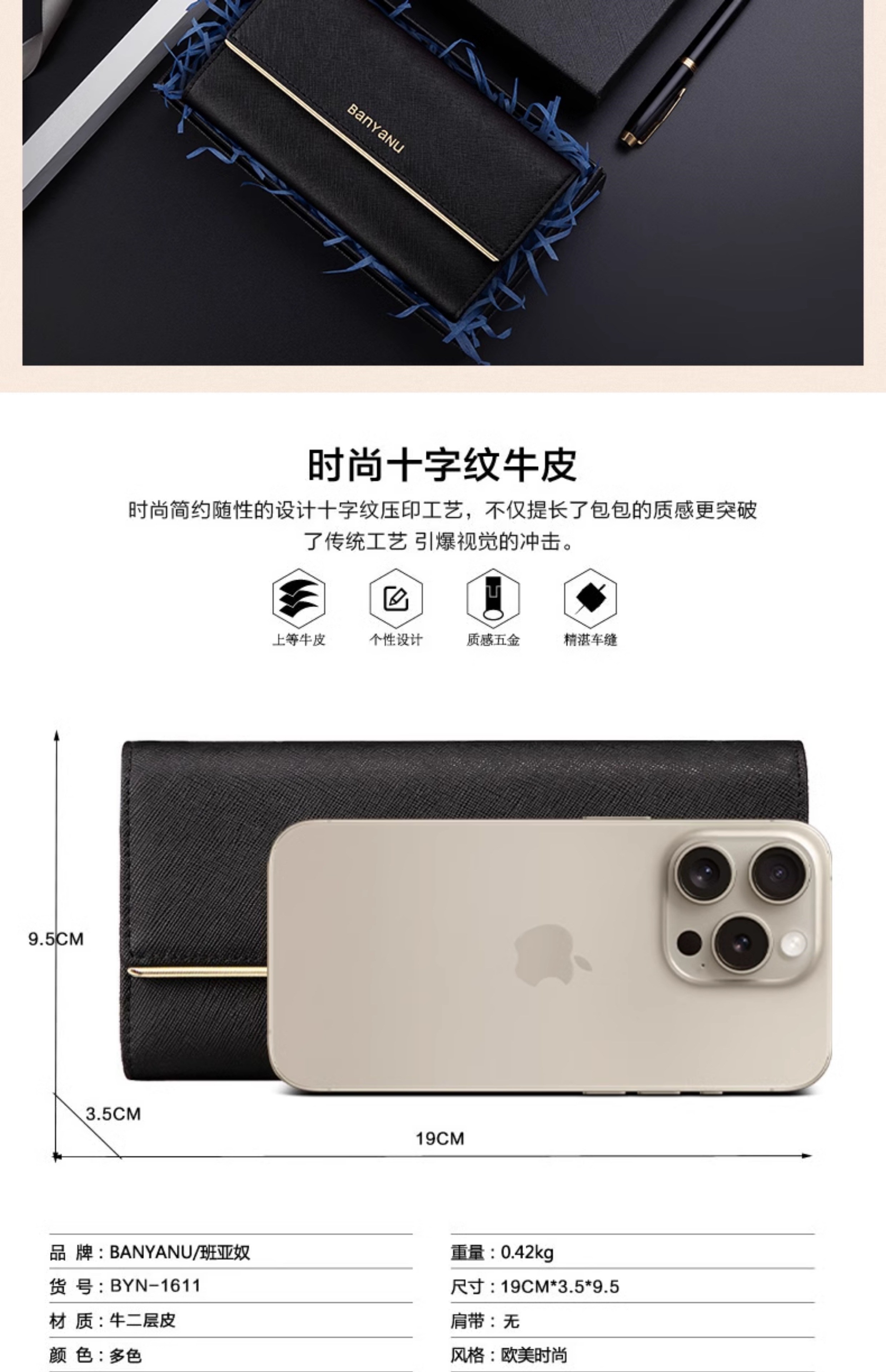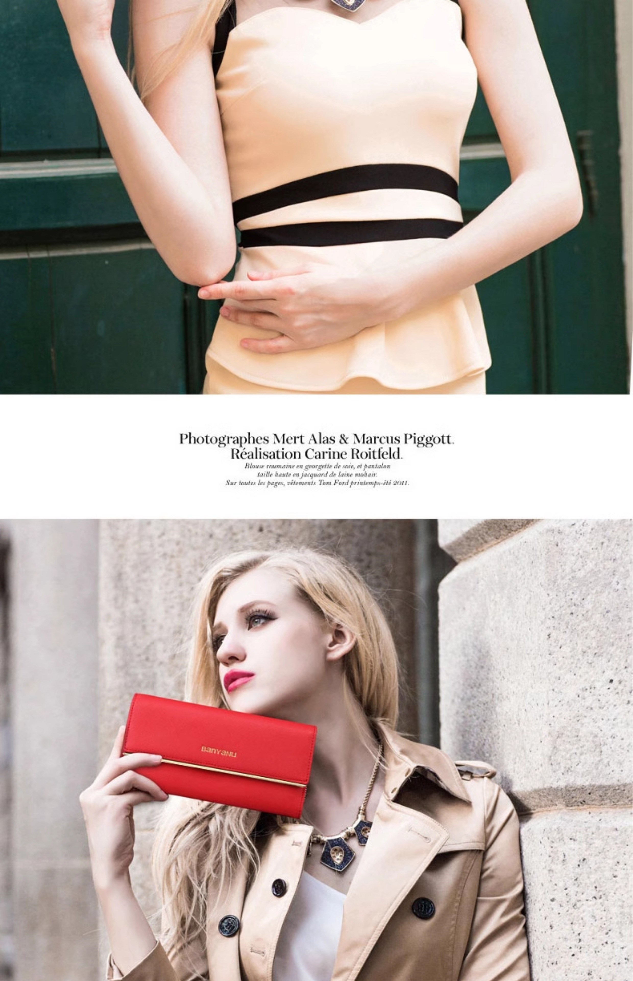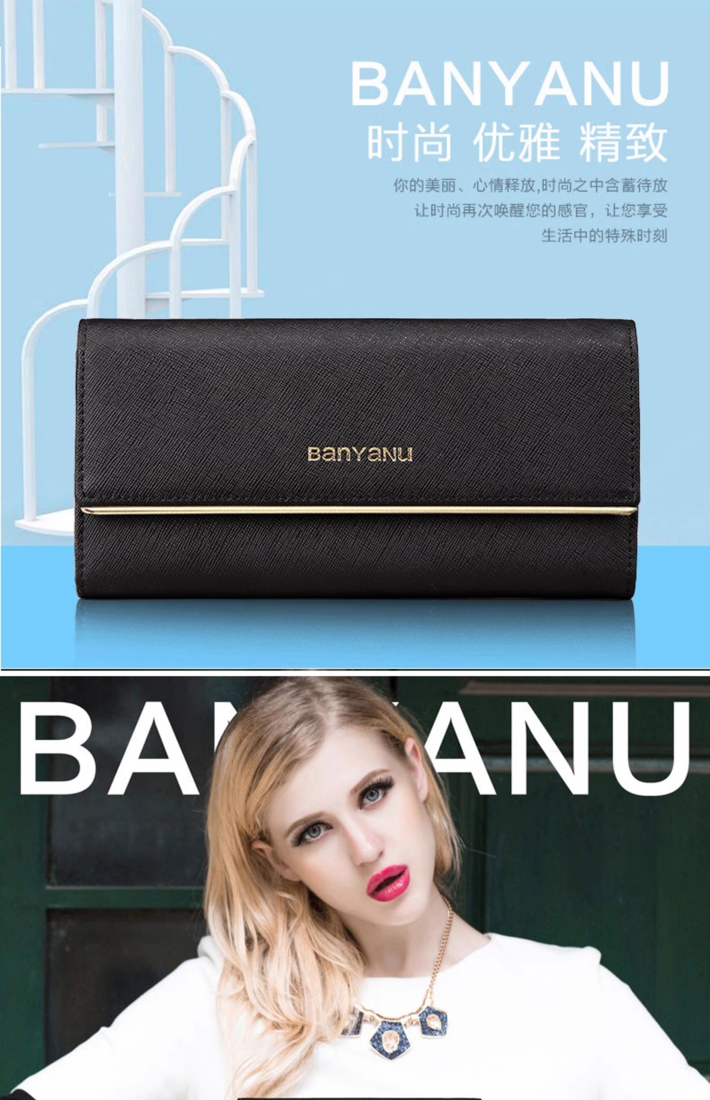 Scarecrow (MEXICAN) 2024 New Fashion Wallet Women's Long Three-fold Large Capacity Genuine Leather Wallet Women's Wallet Thin Black Store Manager Anti-Theft Brush