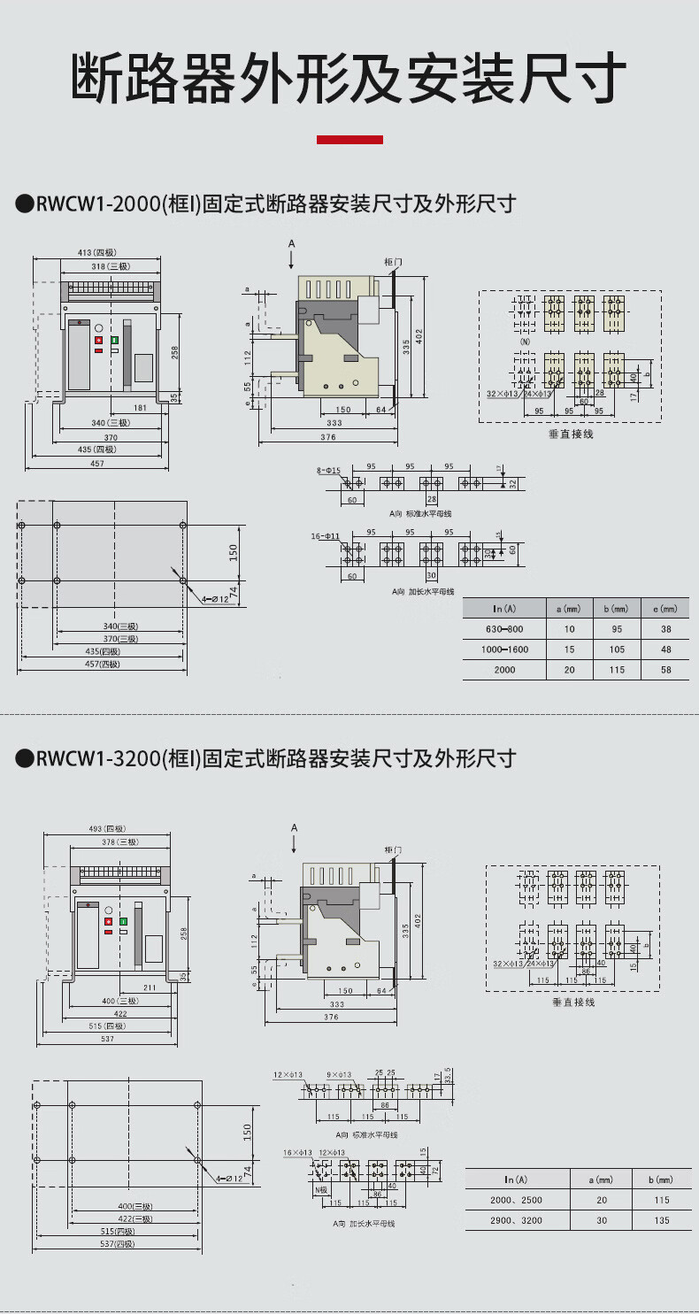 Shanghai People's RMCW1-2000 frame circuit breaker 1600a 3200A switch 1000A 630A 2000A fixed x 4P