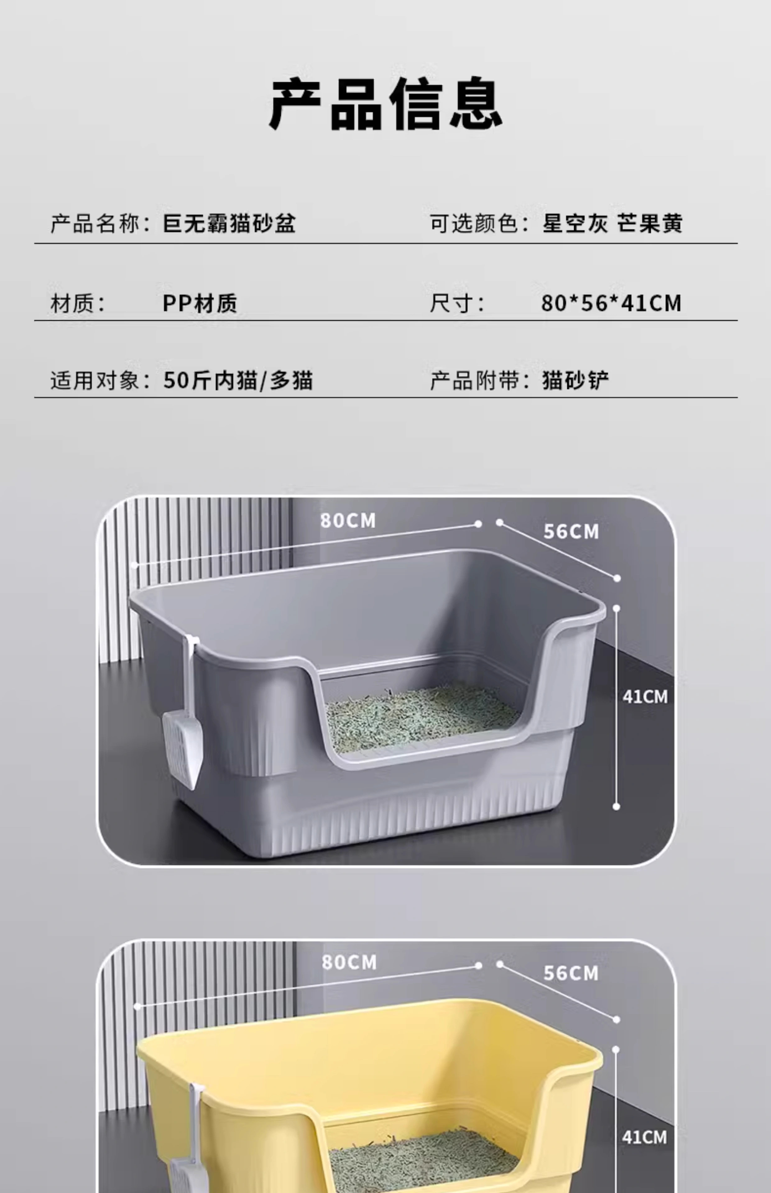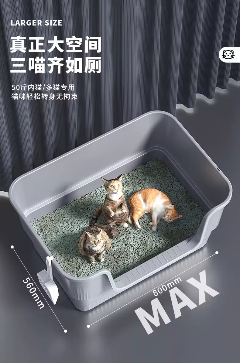 Tiger Pet Big Mac 80cm cat litter box extra-large multi-cat toilet extra-large cat litter box anti-splash multi-cat special for big cats Starry sky gray + sand leakage pedal anti-bringing out Extra large cat litter shovel included Big Mac lengthened and enlarged Suitable for cats under 50 pounds/multiple cats