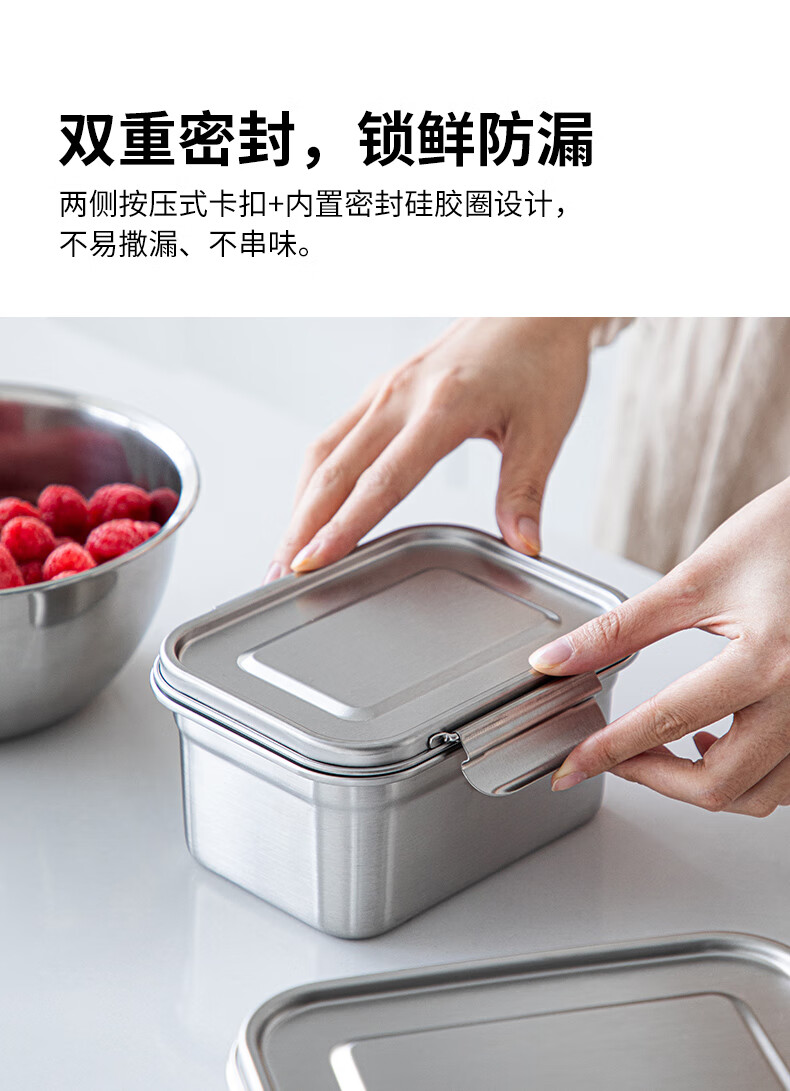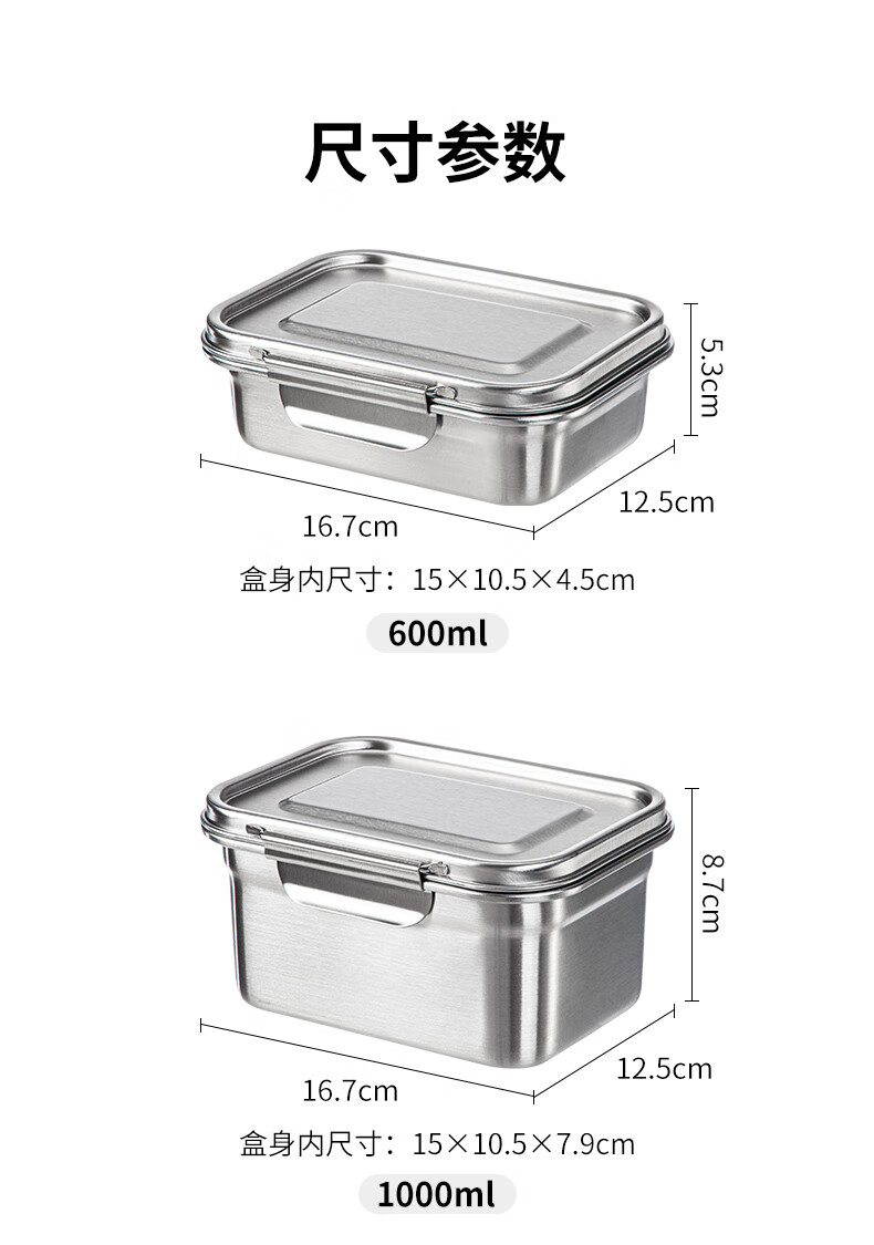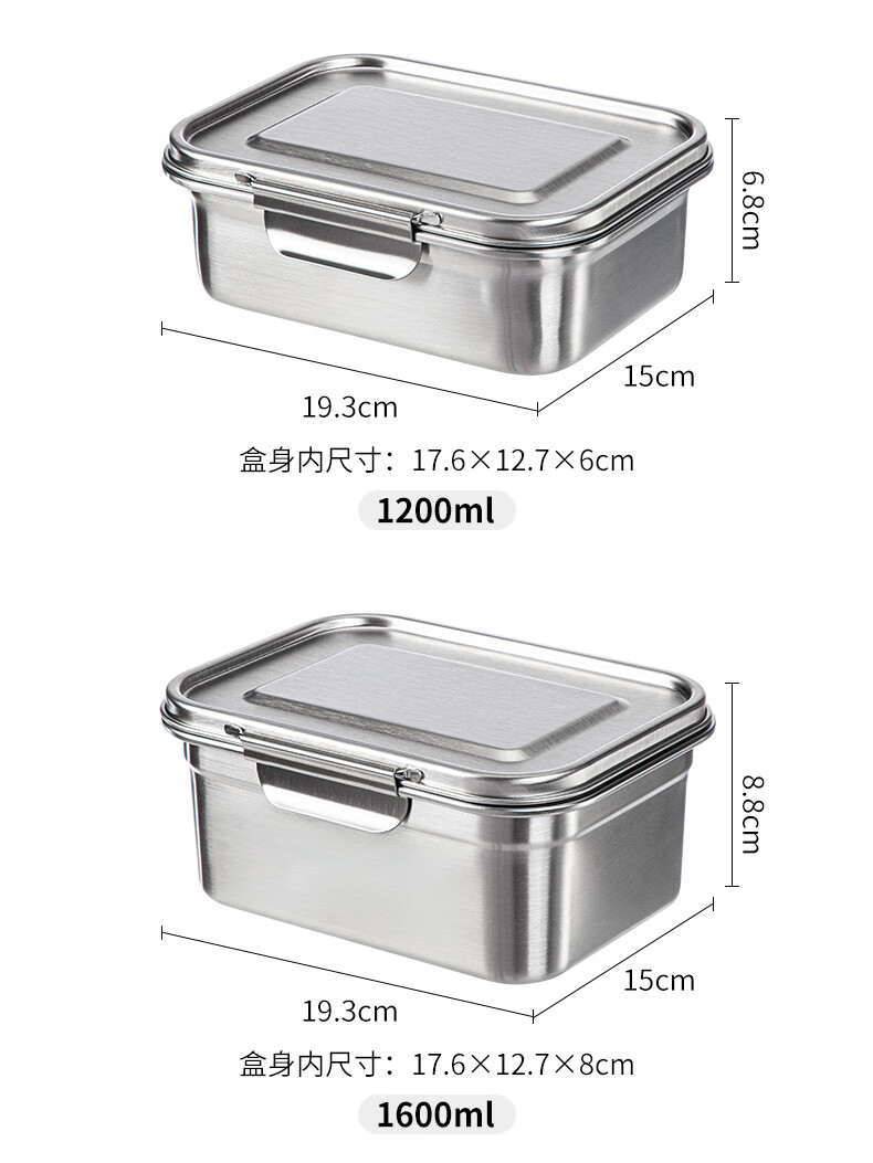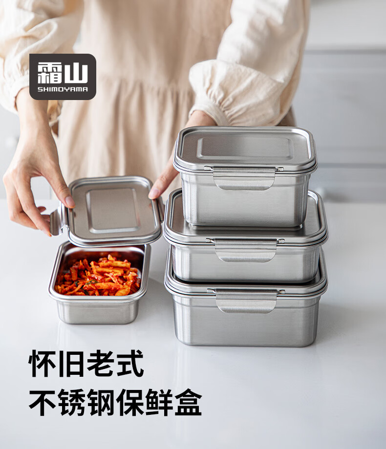 Shuangshan 304 stainless steel crisper household food storage box old-fashioned lunch box lunch box sealed box for refrigerator 1600ml (length 19.3 width 15 height 8.8cm) single package