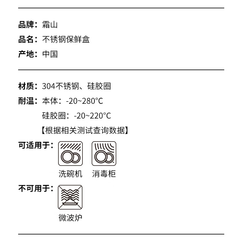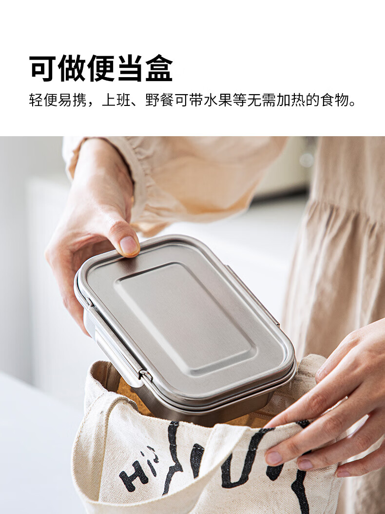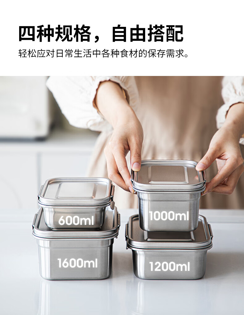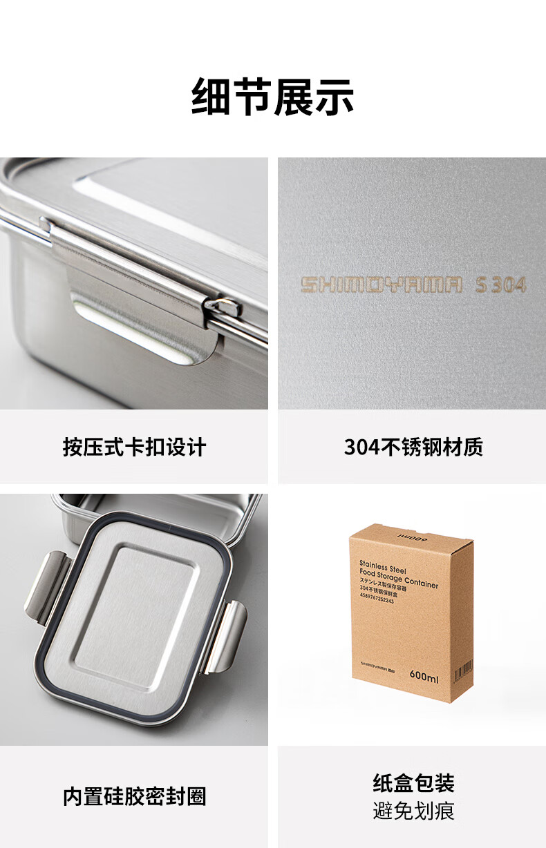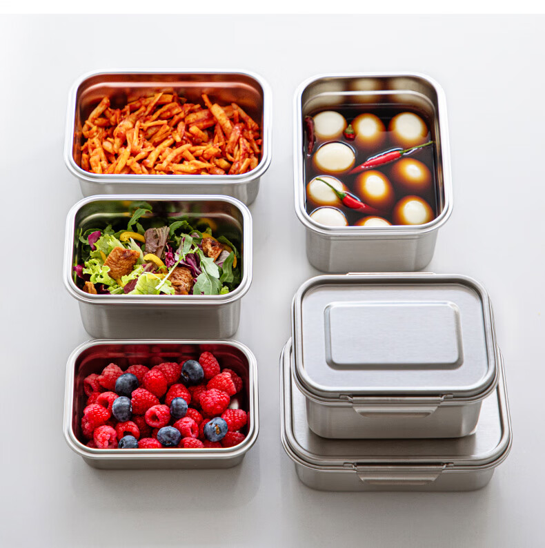 Shuangshan 304 stainless steel crisper household food storage box old-fashioned lunch box lunch box sealed box for refrigerator 1600ml (length 19.3 width 15 height 8.8cm) single package