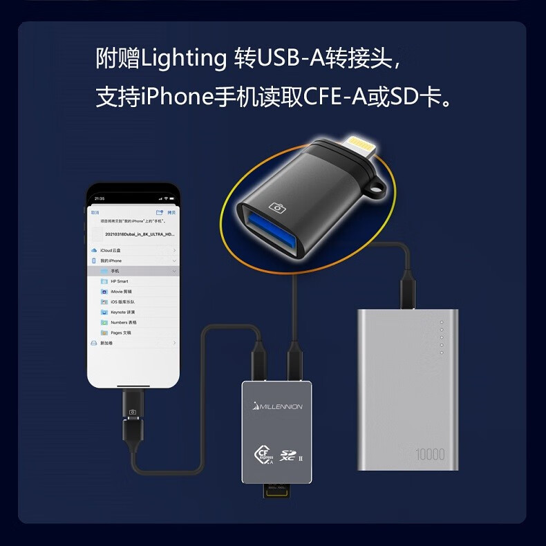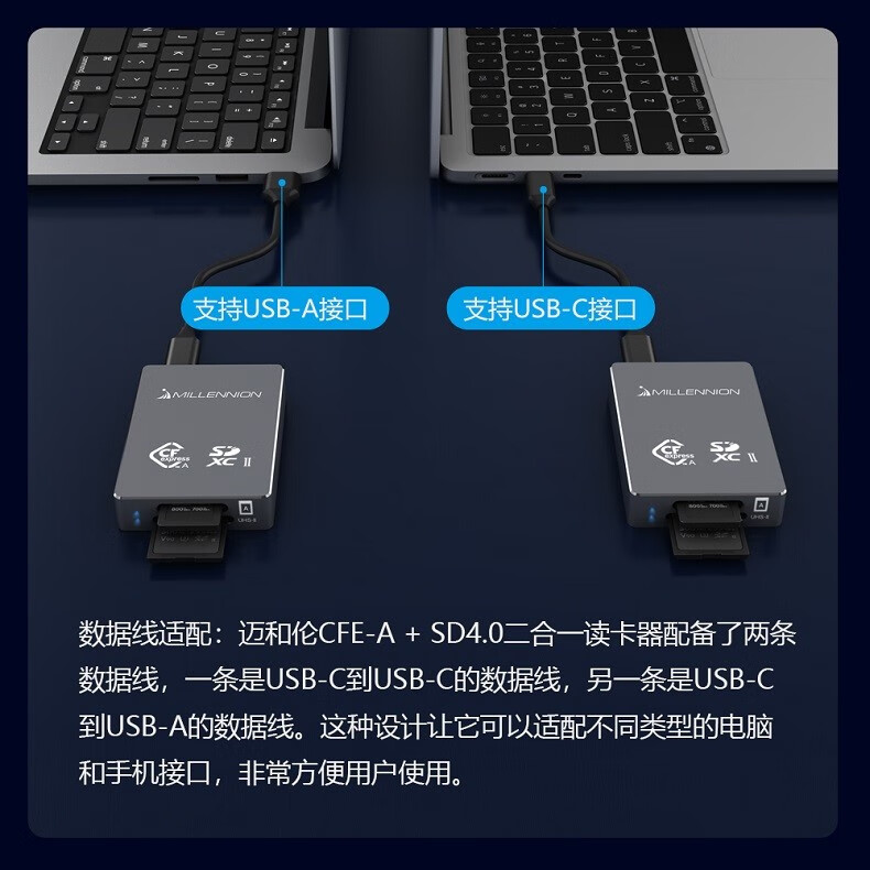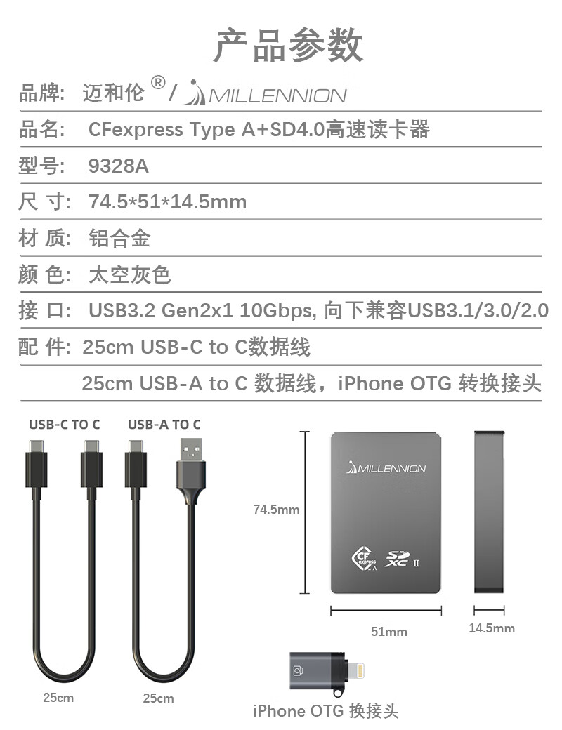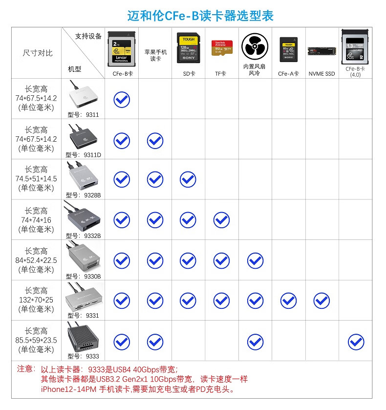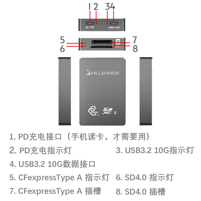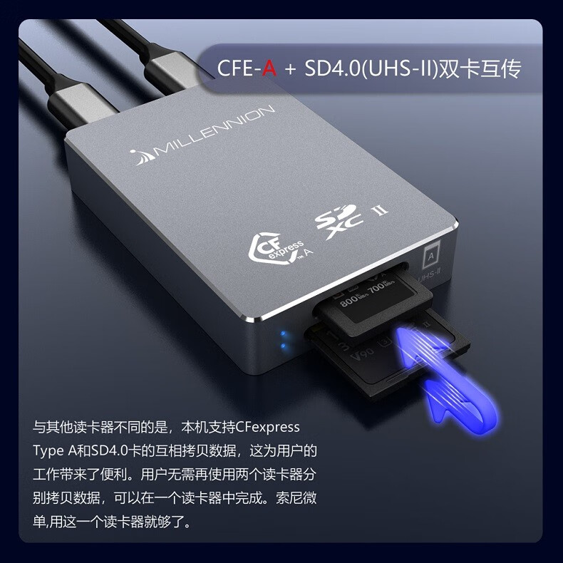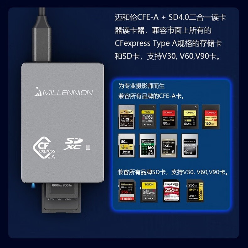 Maiheran high-speed USB3.2 camera cfexpressA/B+SD4.0+TF drone card reader auxiliary power supply Apple mobile phone tablet TYPE-C with fan 9336A read CFE-A+SD+TF card+fan