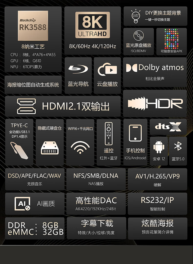 HDSIR Mr. HD M9 Blu-ray player 8K hard disk player Smart multimedia Blu-ray player Home hard disk player Lossless music network set-top box M9 standard