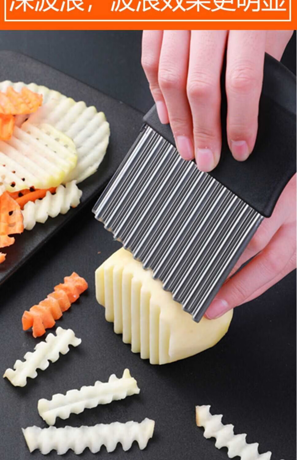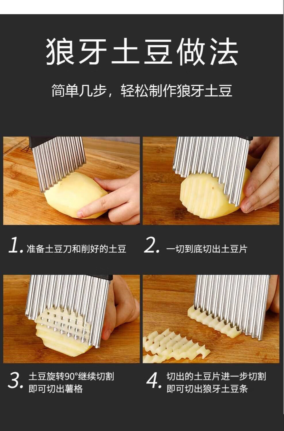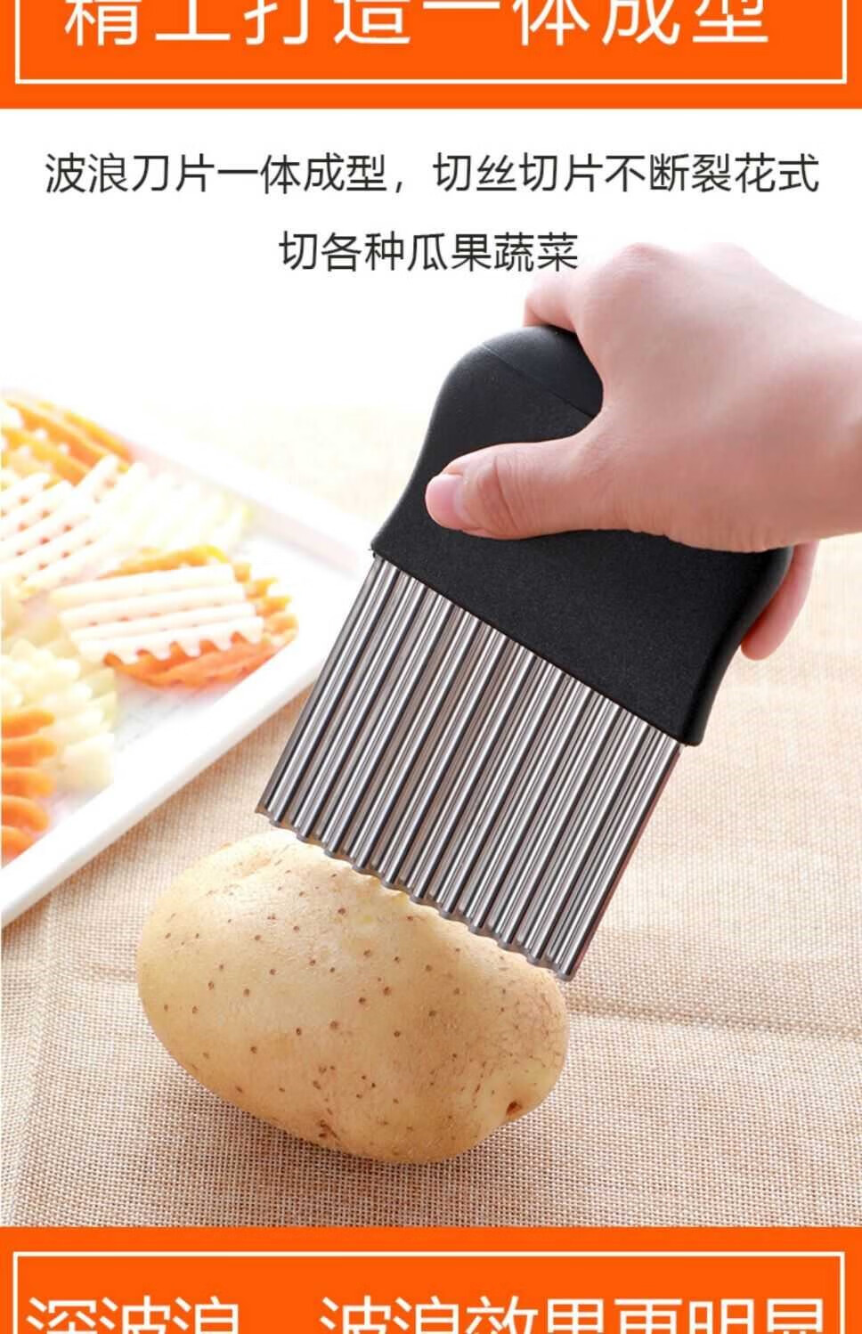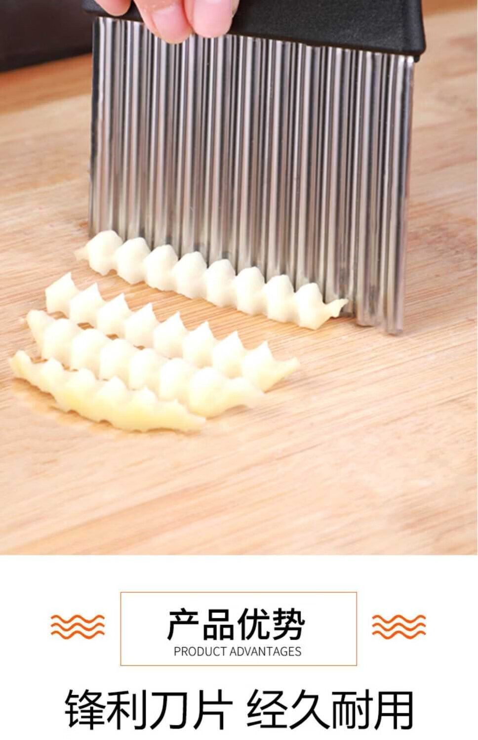 Le Yingfan corrugated knife cutting artifact wolf tooth potato knife wavy knife stainless steel slicing potato flower knife multifunctional kitchen upgraded multifunctional wolf tooth potato cutter 3 large